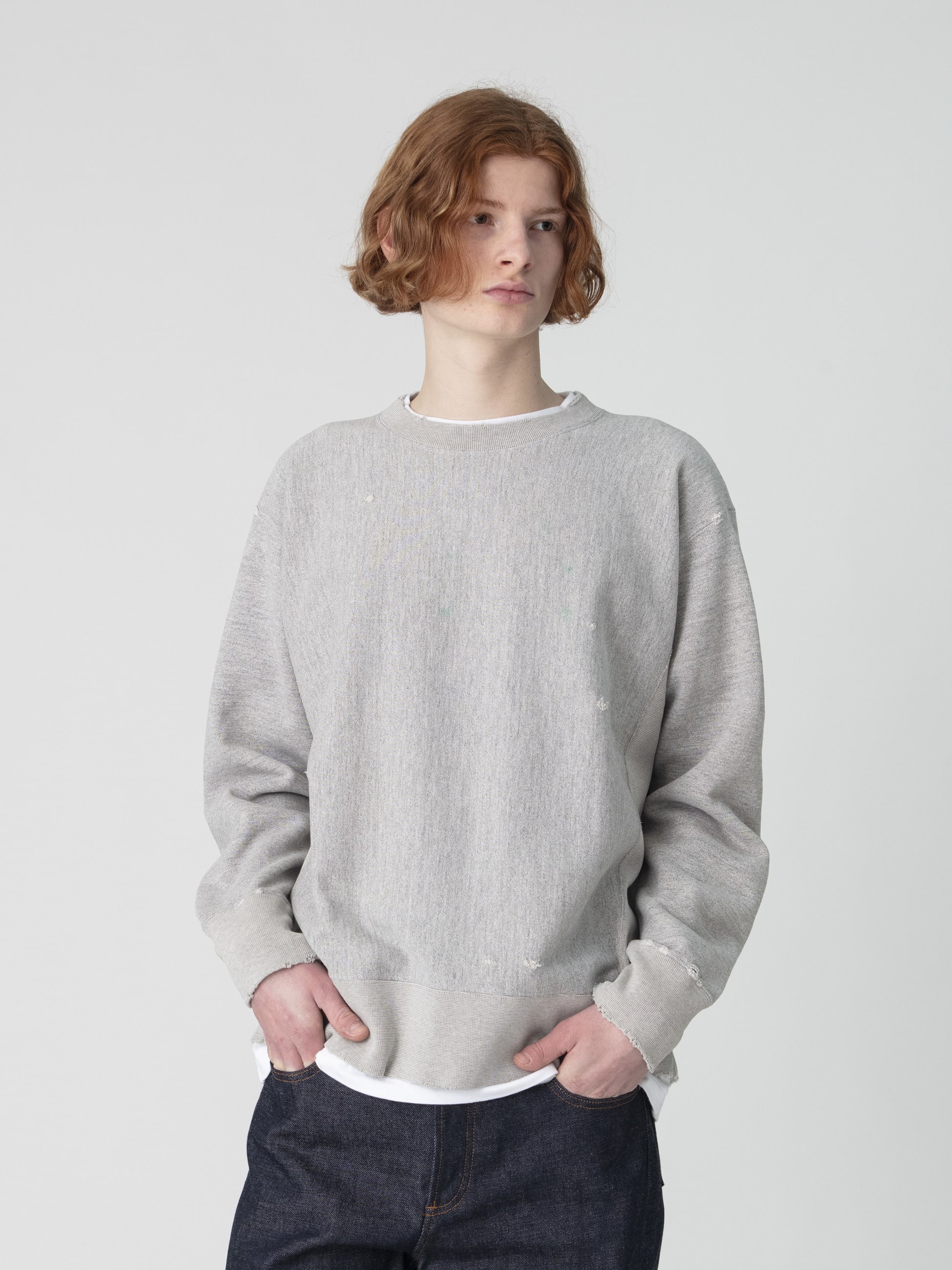 - 90年代のヴィンテージスウェットをベースに、リプロダクションした素材を使用したスウェットプルオーバー。コットンとポリエステルによる混紡生地は、くたっとした非常に柔らかな肌触りが特徴です。また、ロングストーンウォッシュ加工とバイオウォッシュ加工やダメージ加工などを施した、ヴィンテージのような表情も魅力のひとつ。さらに、リバースウィーブ仕様を採用し、アクティブなシーンでも快適な着心地を実現しています。身幅にゆとりを持たせ、着丈を短めに設定した程よくゆったりとしたフィットは、デイリーユースしやすい一着です。