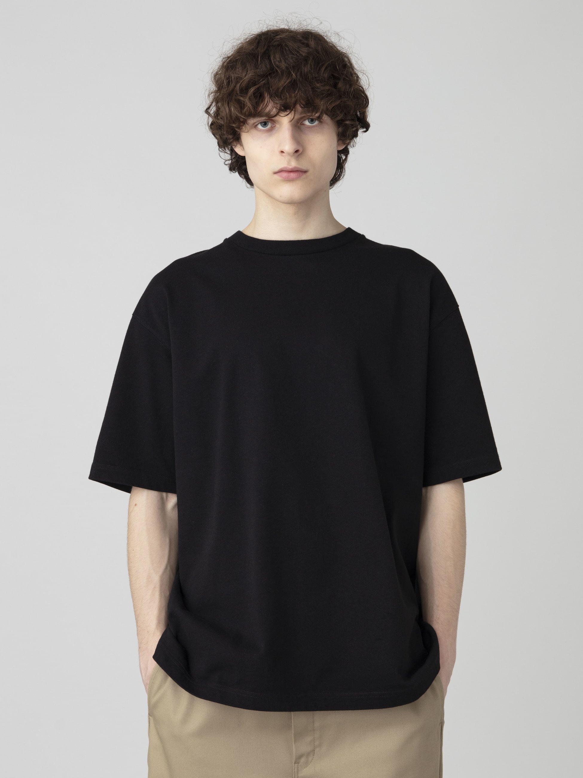- 天竺素材のTシャツは、裏地の裏毛ループを無くし、程よく厚みのある生地感とコシがありながらも柔らかな肌触りを兼ね備えた特殊な生地構造が特徴です。また、ベーシックなカラーリングとゆったりとしたルーズフィットは、デイリーユースしやすい一着です。