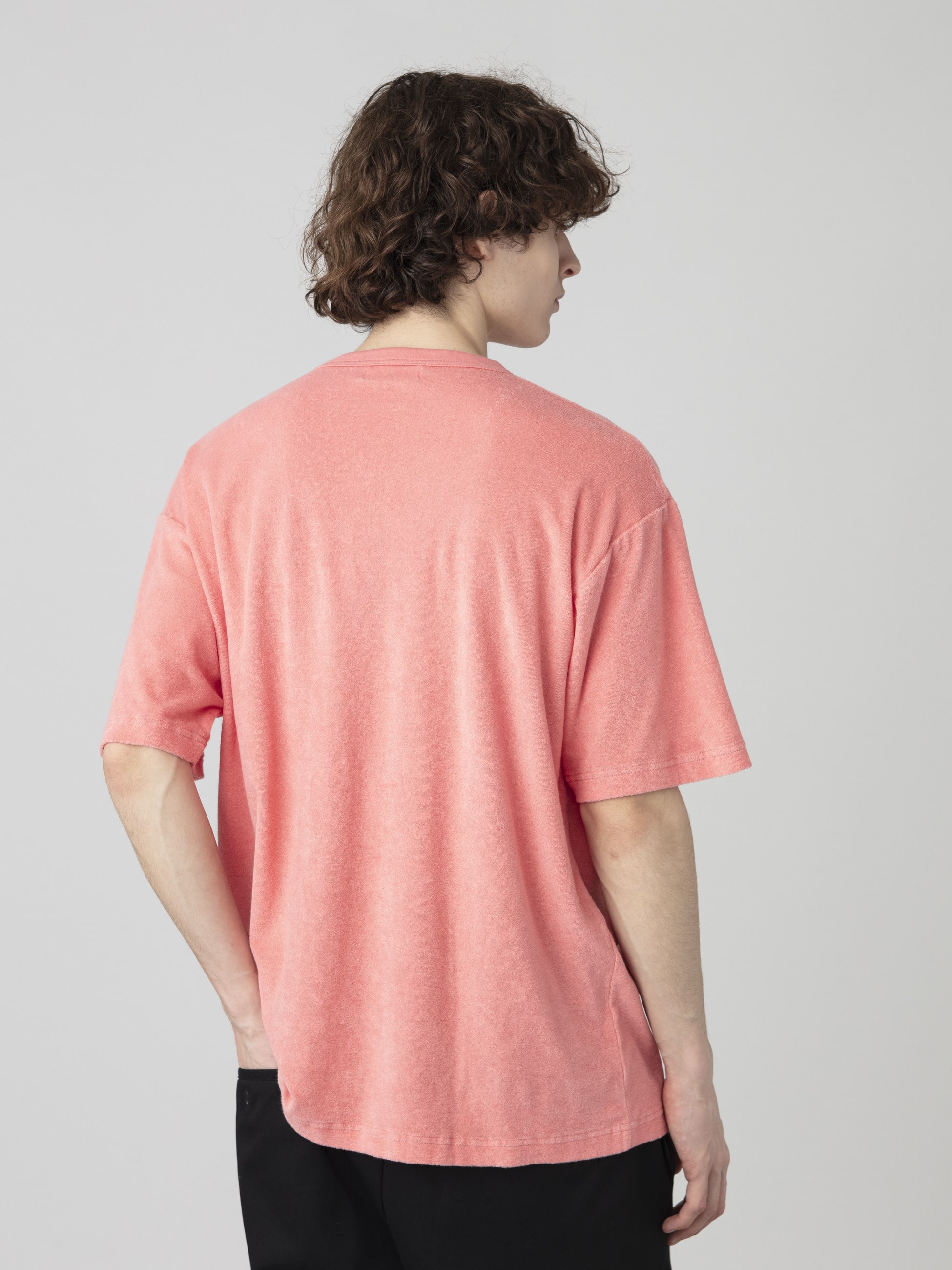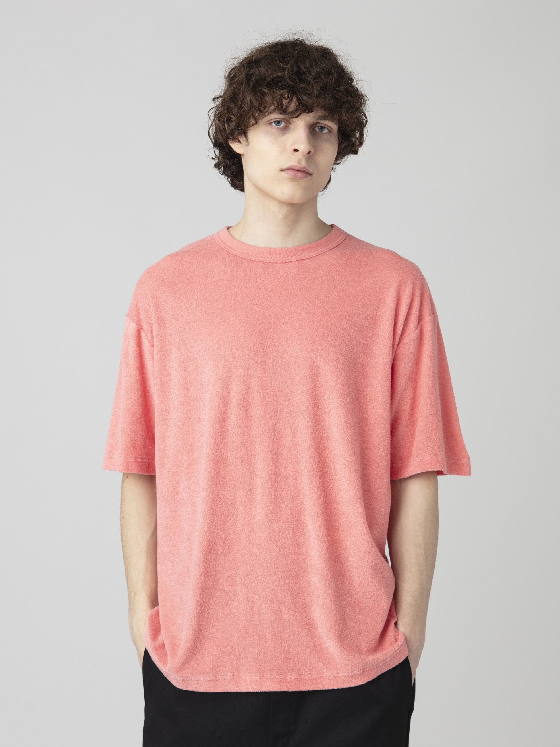 - オーガニックコットン100%のパイル素材を使用したTシャツ。40番手をベースに60番手の極細糸でパイルを編みつけることで軽やかで繊細な肌触りと上品な微光沢を実現しています。ゆったりとしたフィットは、デイリーユースしやすい一着です。