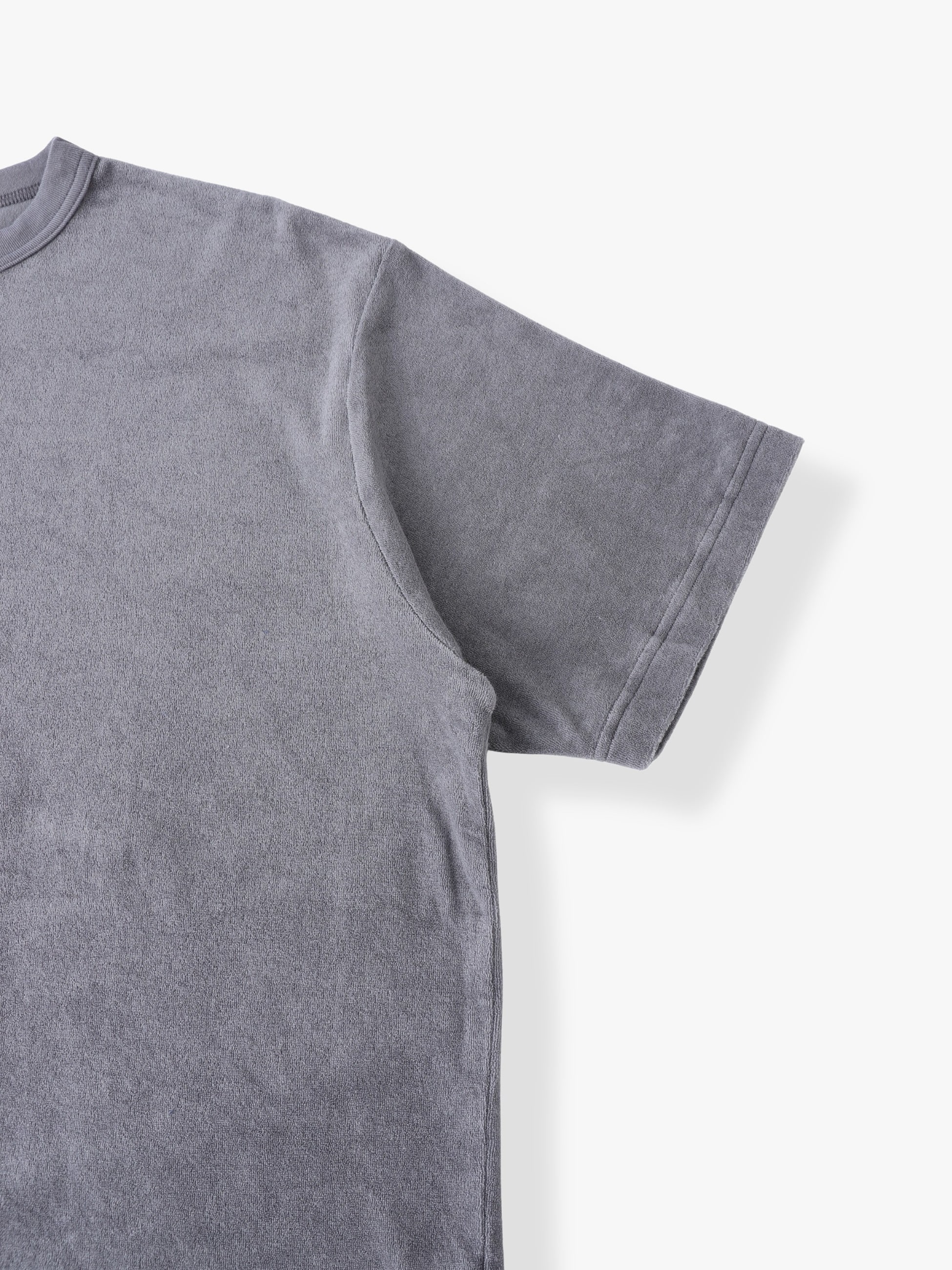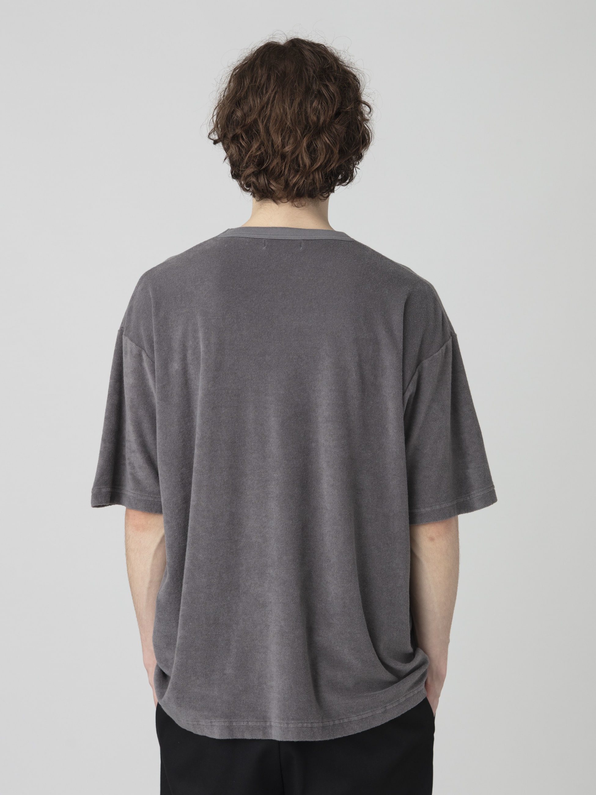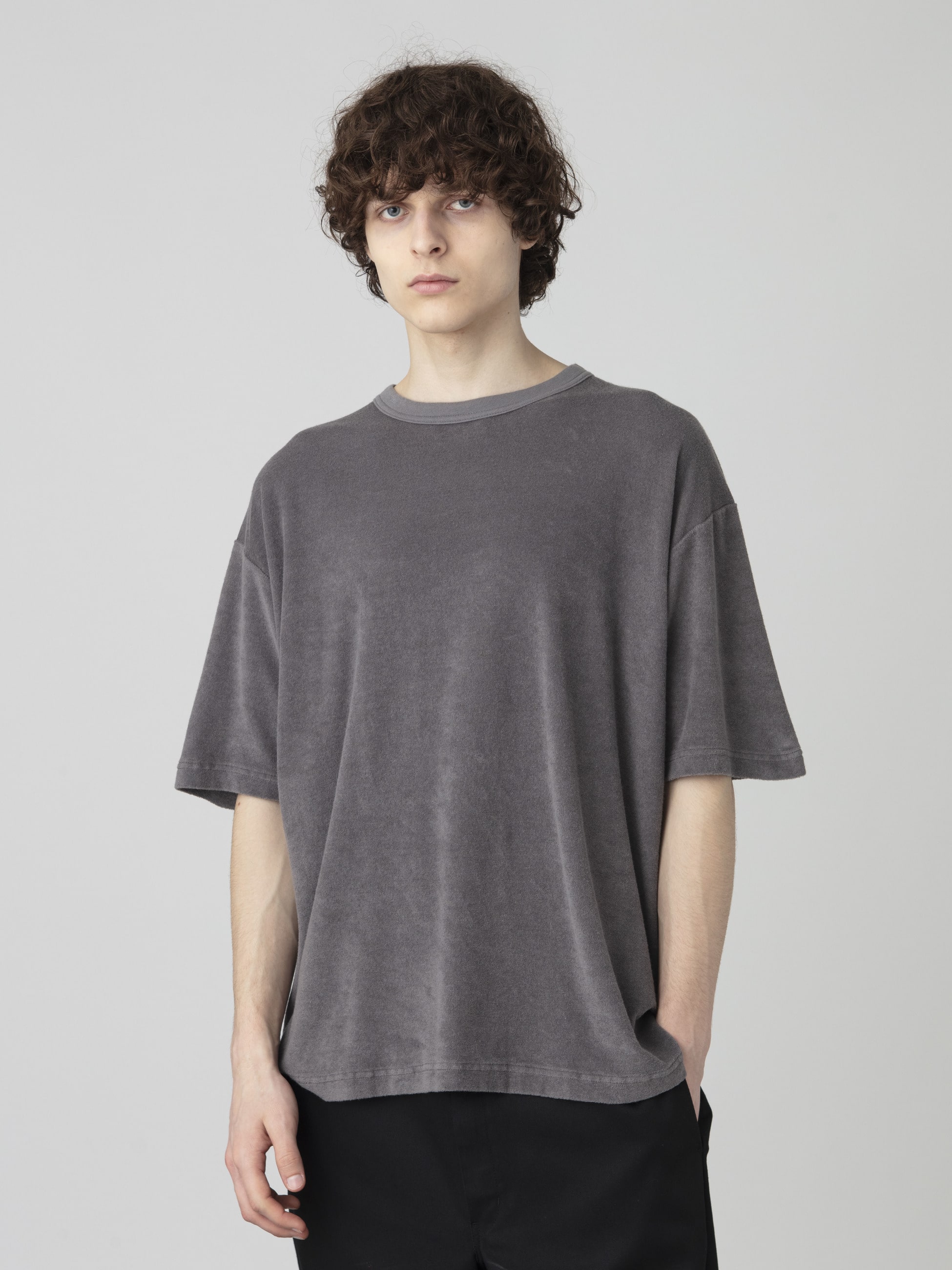 - オーガニックコットン100%のパイル素材を使用したTシャツ。40番手をベースに60番手の極細糸でパイルを編みつけることで軽やかで繊細な肌触りと上品な微光沢を実現しています。ゆったりとしたフィットは、デイリーユースしやすい一着です。