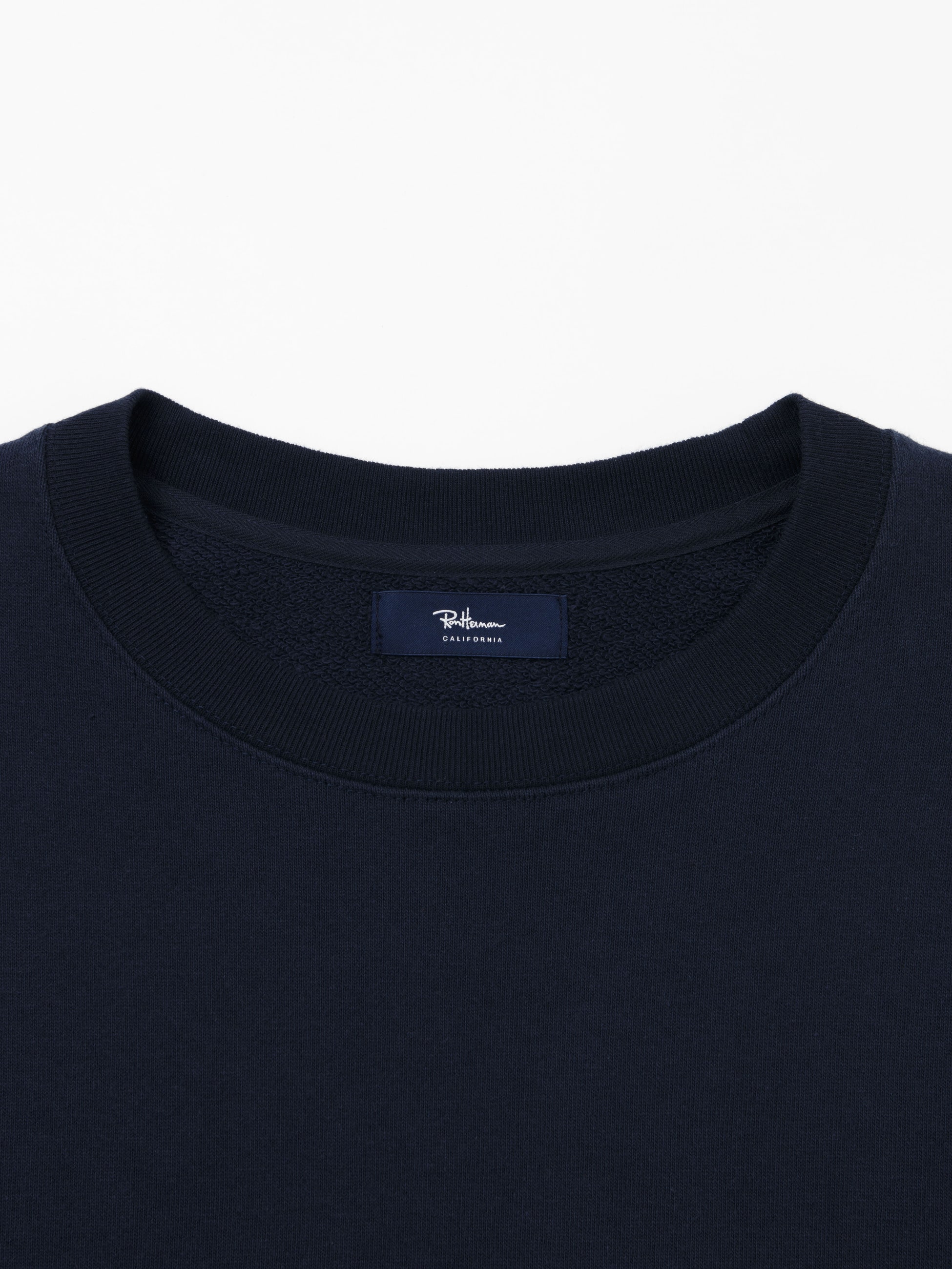 ロンハーマンがもっとも大切にしているベーシックアイテムの定番スウェットシリーズから、オンラインストア限定となるNAVYカラーのスウェットプルオーバーの登場です。吊り編み機によって丁寧に織られたオリジナルボディーは、中糸と裏地のループを一段階細くしたライトな着心地へ仕上げた3層構造の生地が特徴です。また、ヴィンテージに見られるディテールを一掃し、現代的解釈で、よりシンプルで長く着用いただける定番アイテムへと進化させました。さらに、襟裏に配される織ネームを特別に製作されたNAVYカラーのネームへ変更した仕様やサイズを見直し、様々な時季で活躍する程よくゆったりとしたフィットへアップデートしています。ミニマルなデザインと、こだわりのオーガニックコットン素材やフィットは、ロンハーマンの定番として長く愛用していただける一着です。