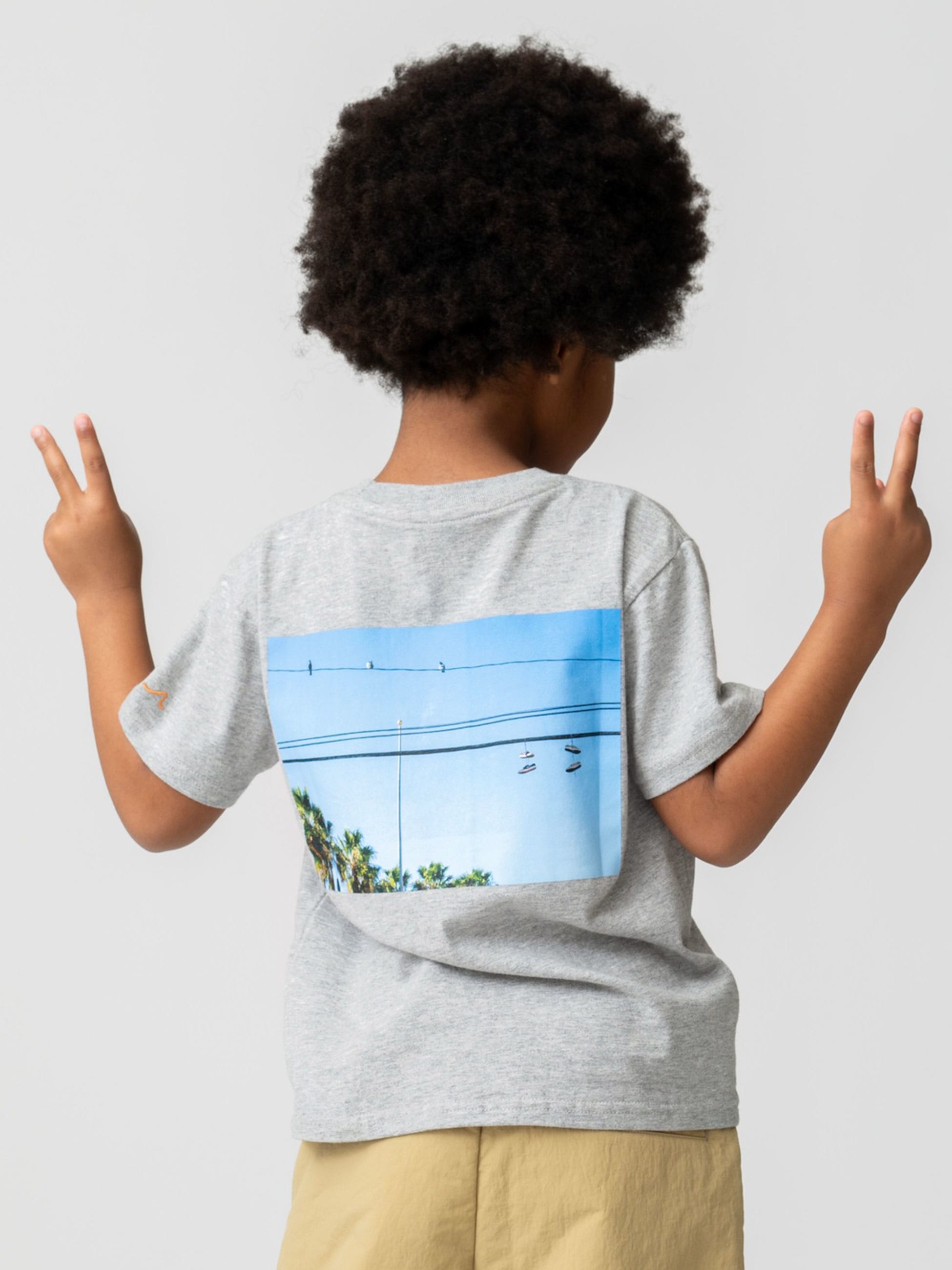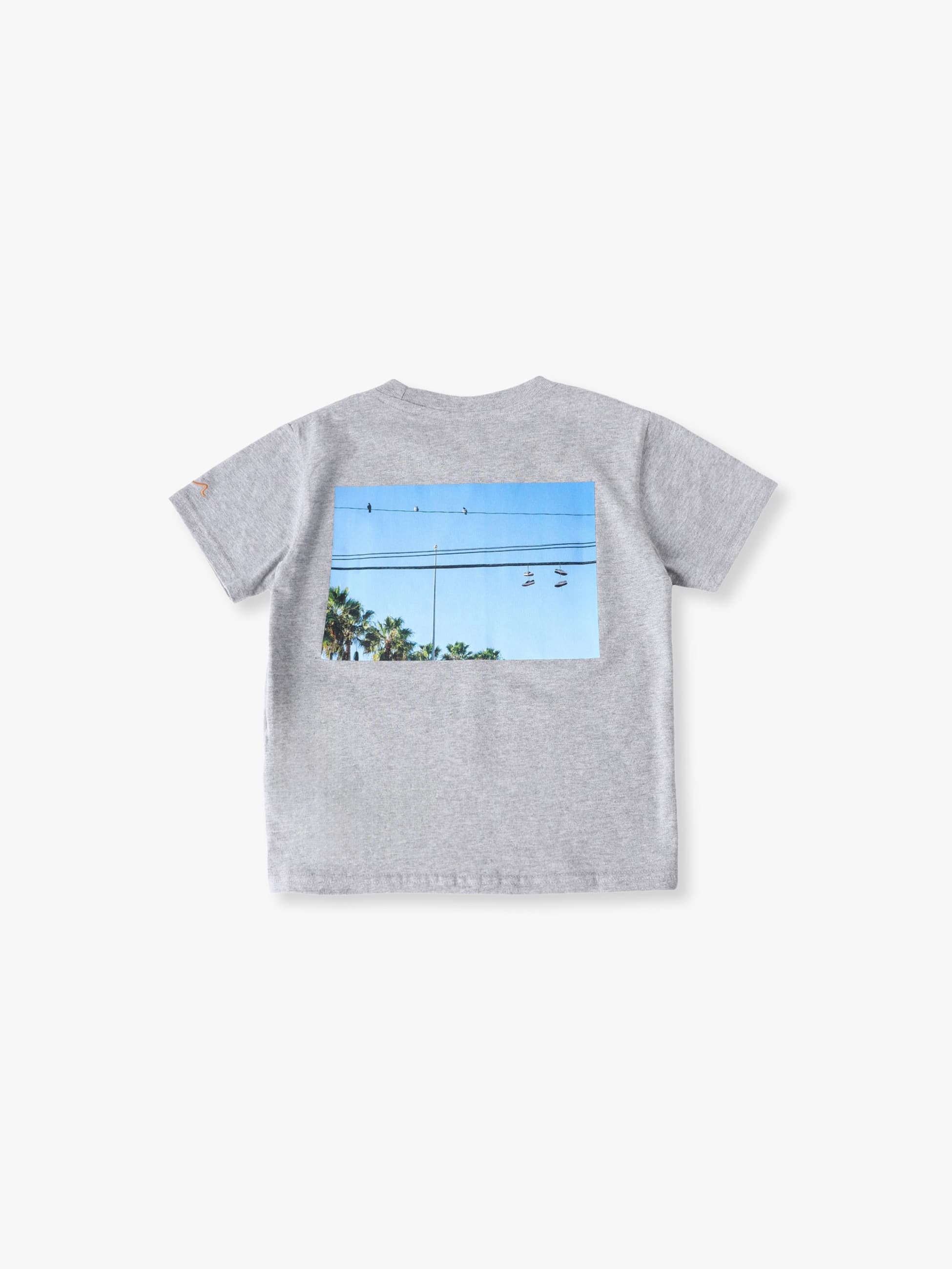バックに、電線に無造作に引っかかったスニーカーのフォトプリントが施されたTシャツです。カリフォルニアのふとした日常の一瞬を切り取った、飾らない日々の中に漂う自由さと余白が表現されています。コットン100%のため、通気性がよく快適な着心地です。