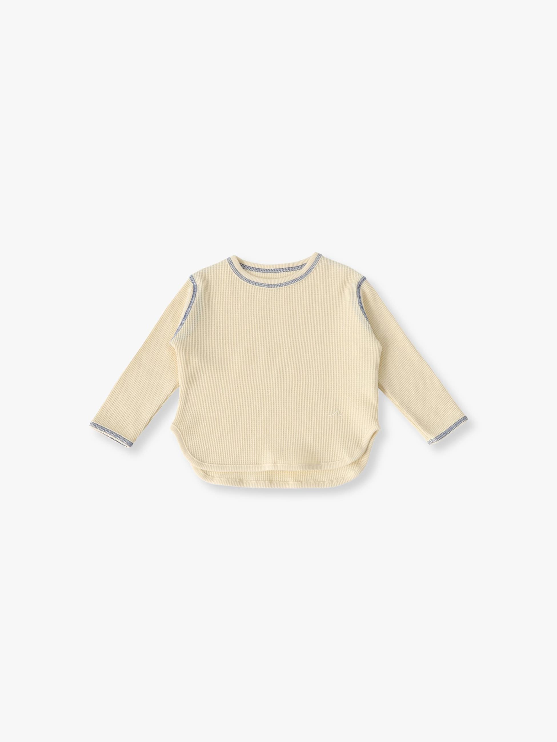 オーガニック コットン ワッフルロングスリーブ ティー(ライトイエロー/ライトブルー/ネイビー/70-110cm)