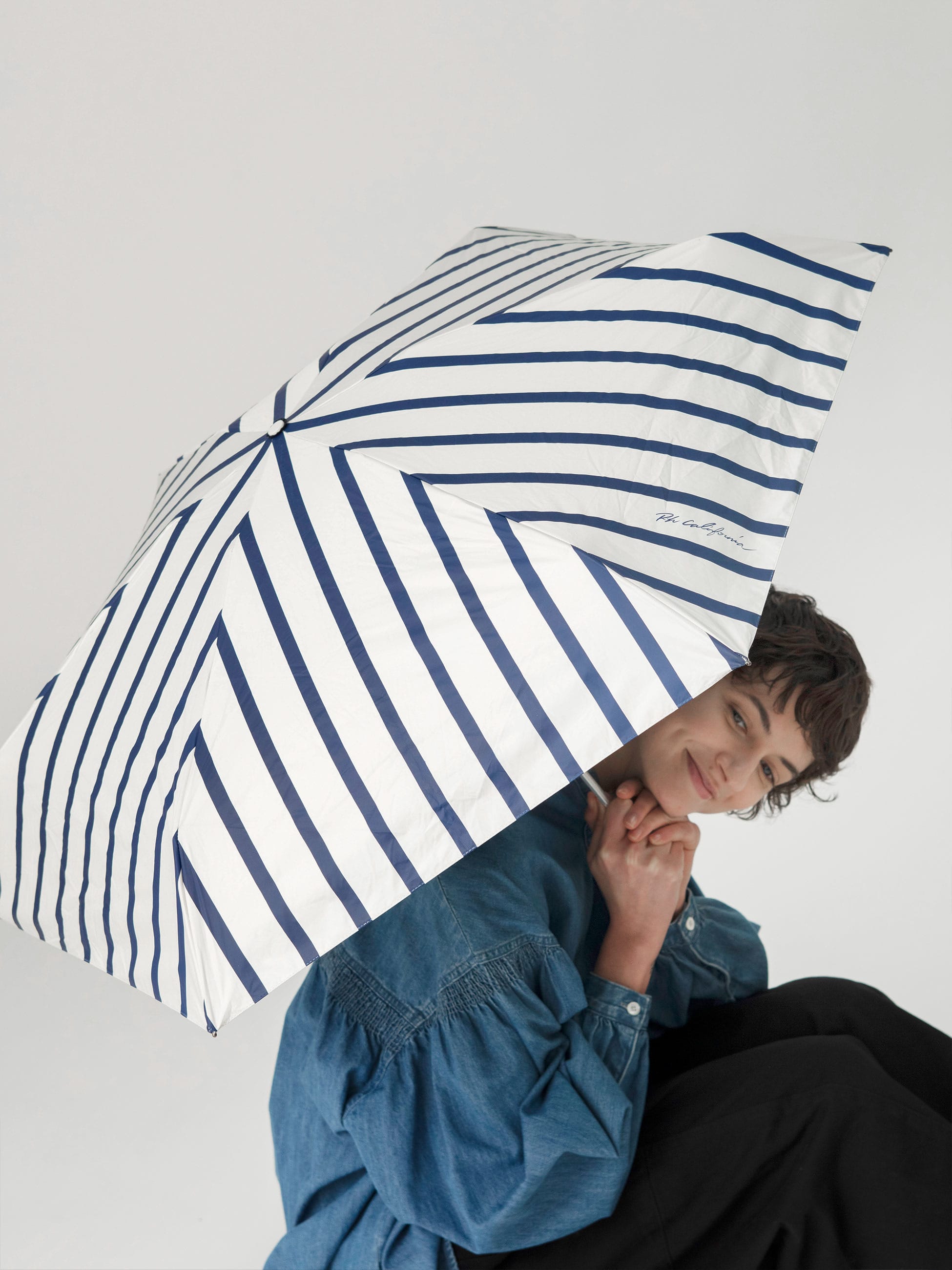 日差しの強い日にも雨の日にも活躍する、晴雨兼用の折りたたみ傘です。生地裏面のコーティングにより、遮光率・UVカット率は99.9%以上。裏地には、表地との配色バランスにこだわり、特注でNAVYカラーを採用しました。機能性とデザイン性を兼ね備え、毎日持ち歩きたくなる一本です。