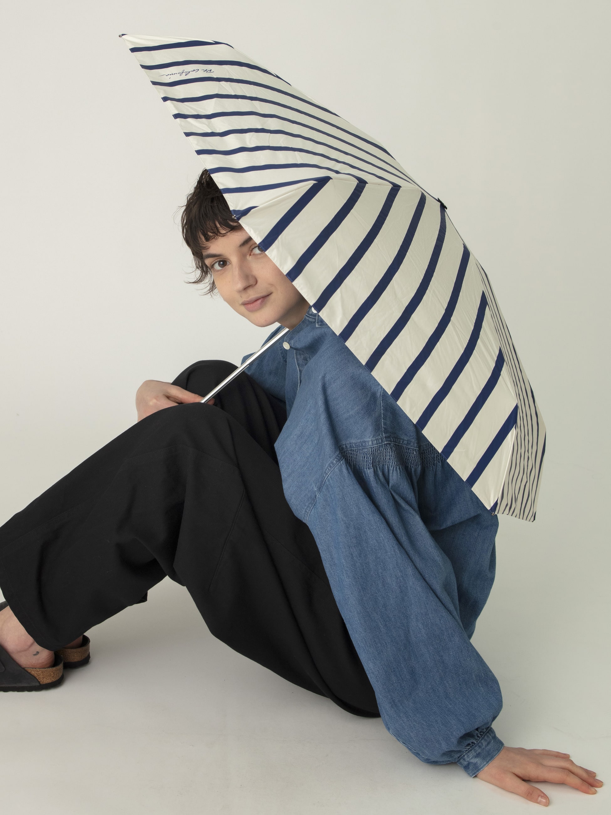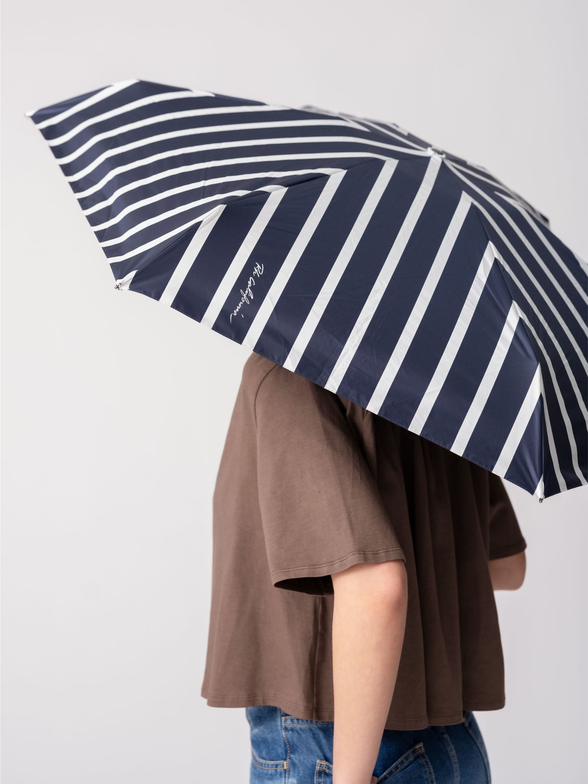 日差しの強い日にも雨の日にも活躍する、晴雨兼用の折りたたみ傘です。生地裏面のコーティングにより、遮光率・UVカット率は99.9%以上。裏地には、表地との配色バランスにこだわり、特注でNAVYカラーを採用しました。機能性とデザイン性を兼ね備え、毎日持ち歩きたくなる一本です。