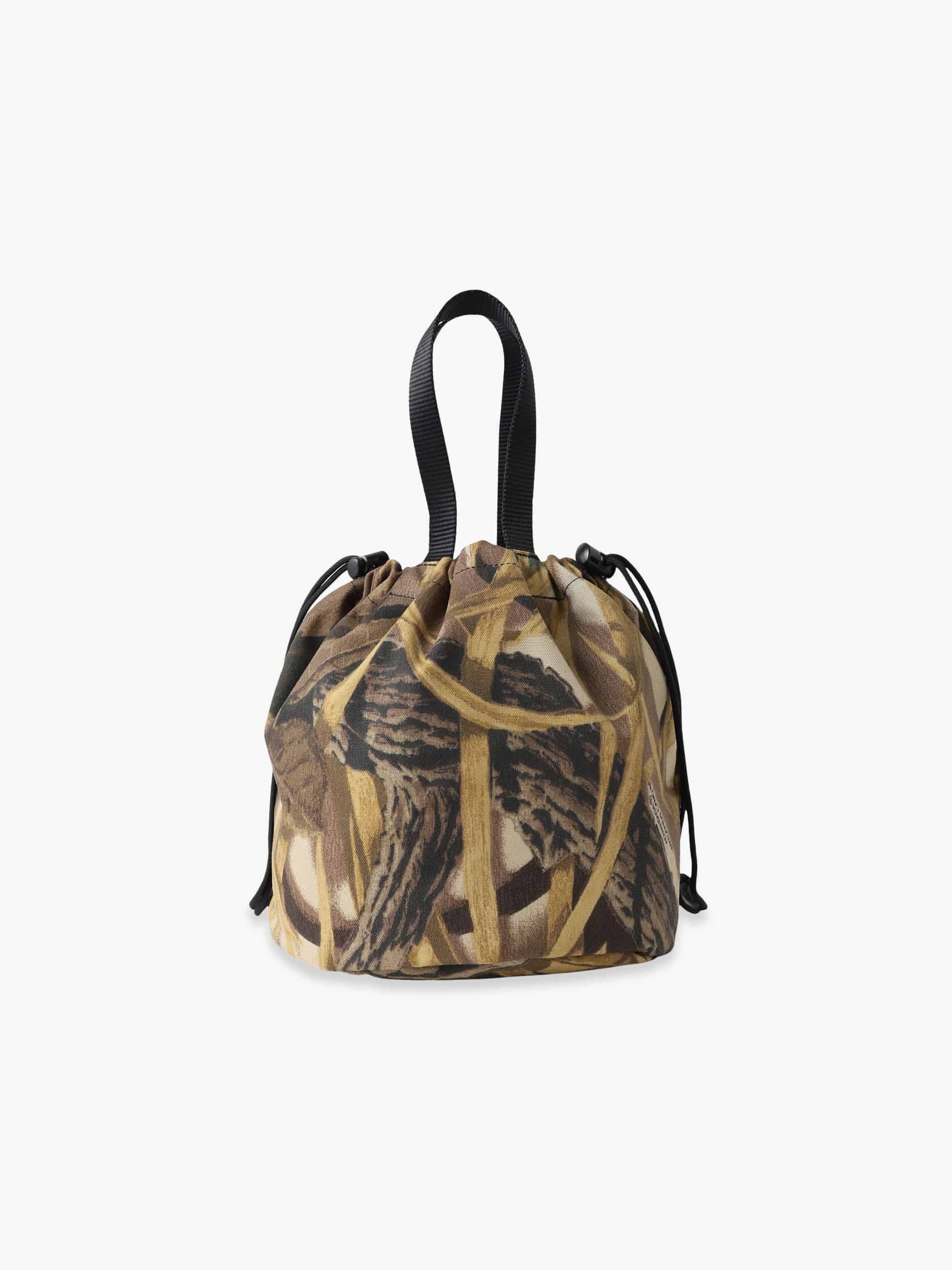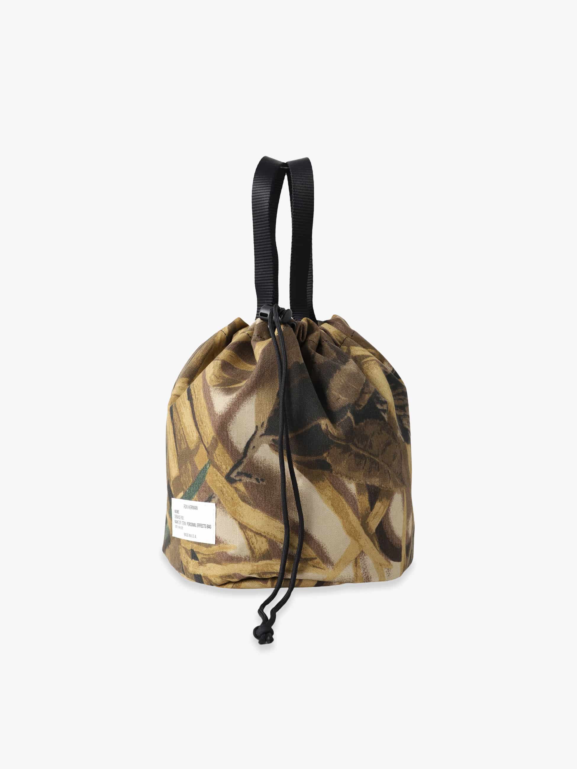 RH California Made in Los Angeles Collectionから登場した、米軍のPersonal Effects Bagをベースにした巾着型バッグ。米RealTree社の写実的な迷彩を用いたデッドストック生地を使用し、木や葉をリアルに再現。自然に溶け込む柄が、タウンユースにもアウトドアにも映える一品です。