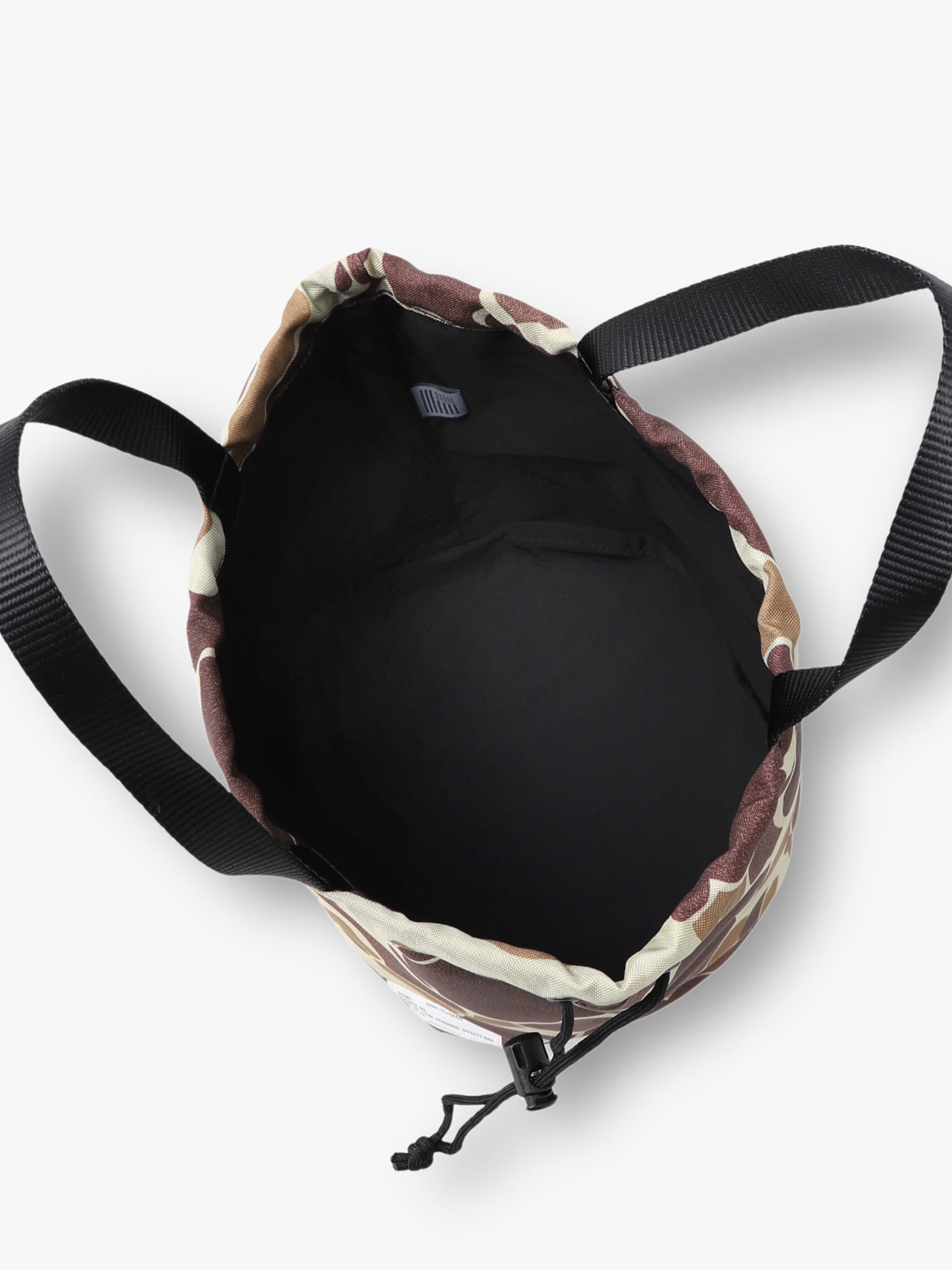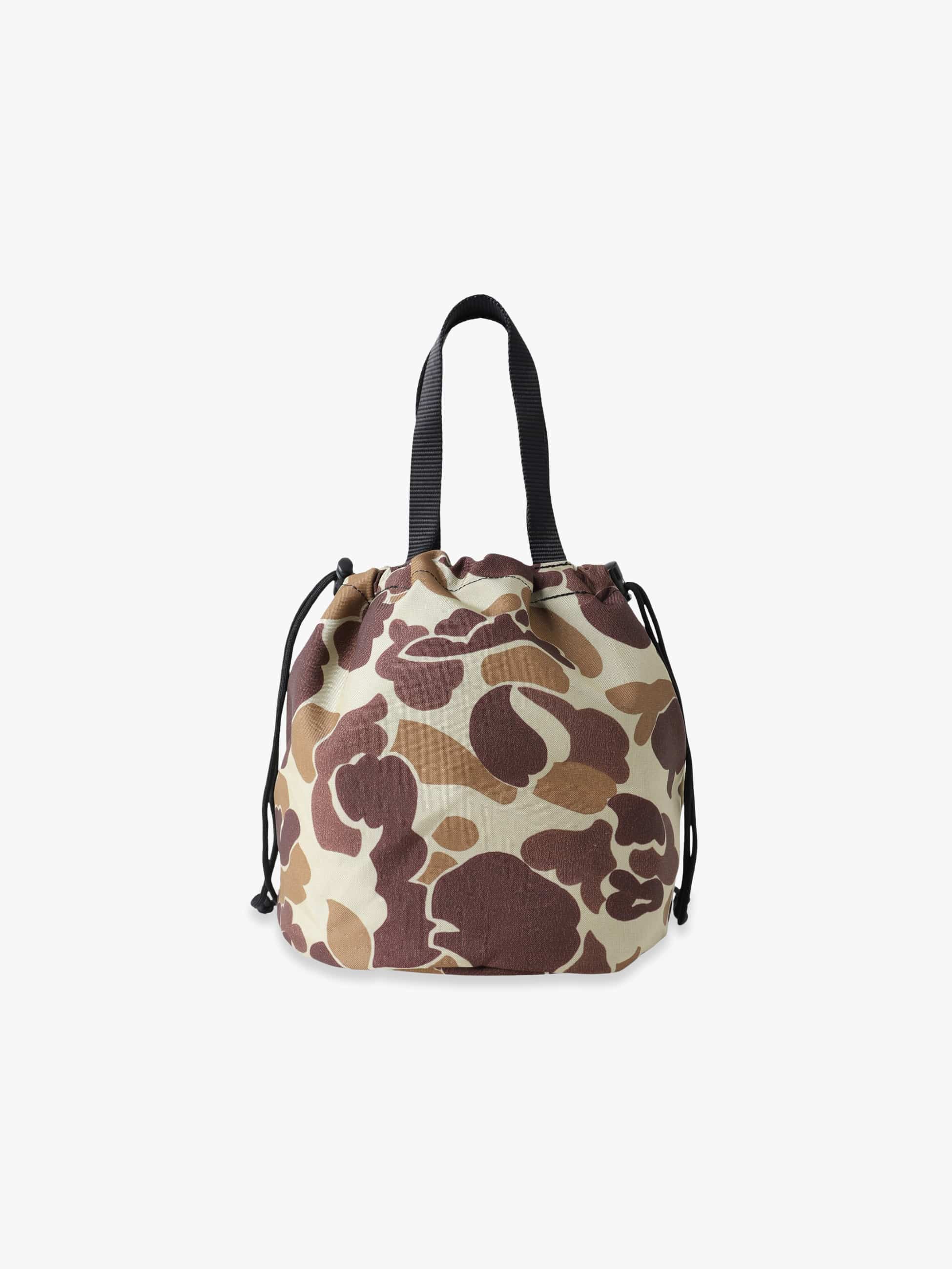 RH California Made in Los Angeles Collectionの特別な巾着型バッグ。1940年代に米軍が開発したフロッグスキンカモのデッドストック生地を使用し、グリーン系とブラウン系を組み合わせた独特の配色が特徴。ハンティング由来の無骨さとヴィンテージ感を楽しめる一品です。
