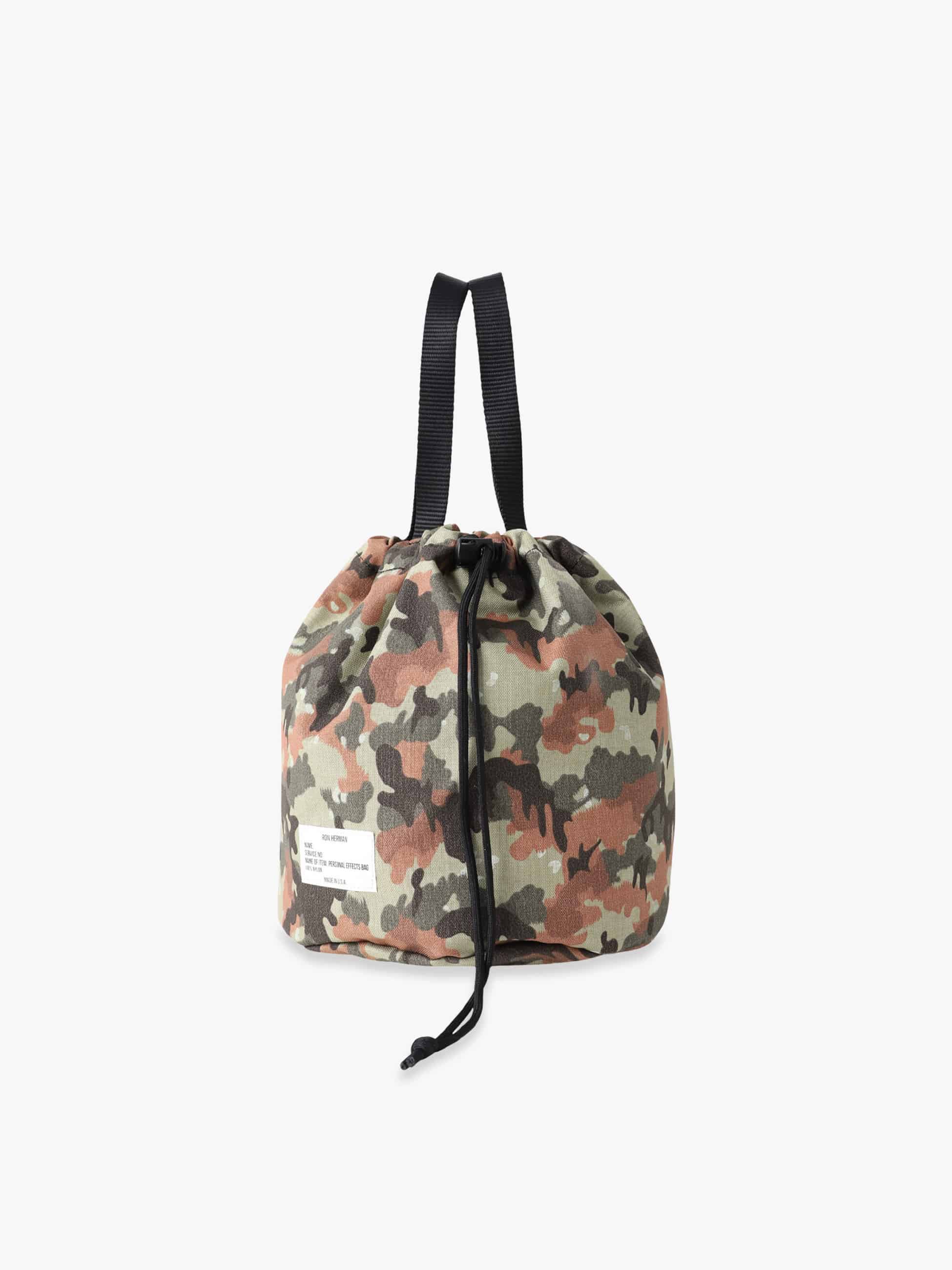 RH California Made in Los Angeles Collectionより登場した巾着型バッグ。1950~90年代にスイス軍で使用された山岳迷彩のデッドストック生地を採用し、赤茶・緑・白が混ざる独特の色合いが特徴。ピザ迷彩やアルペンカモとも呼ばれる希少柄です。