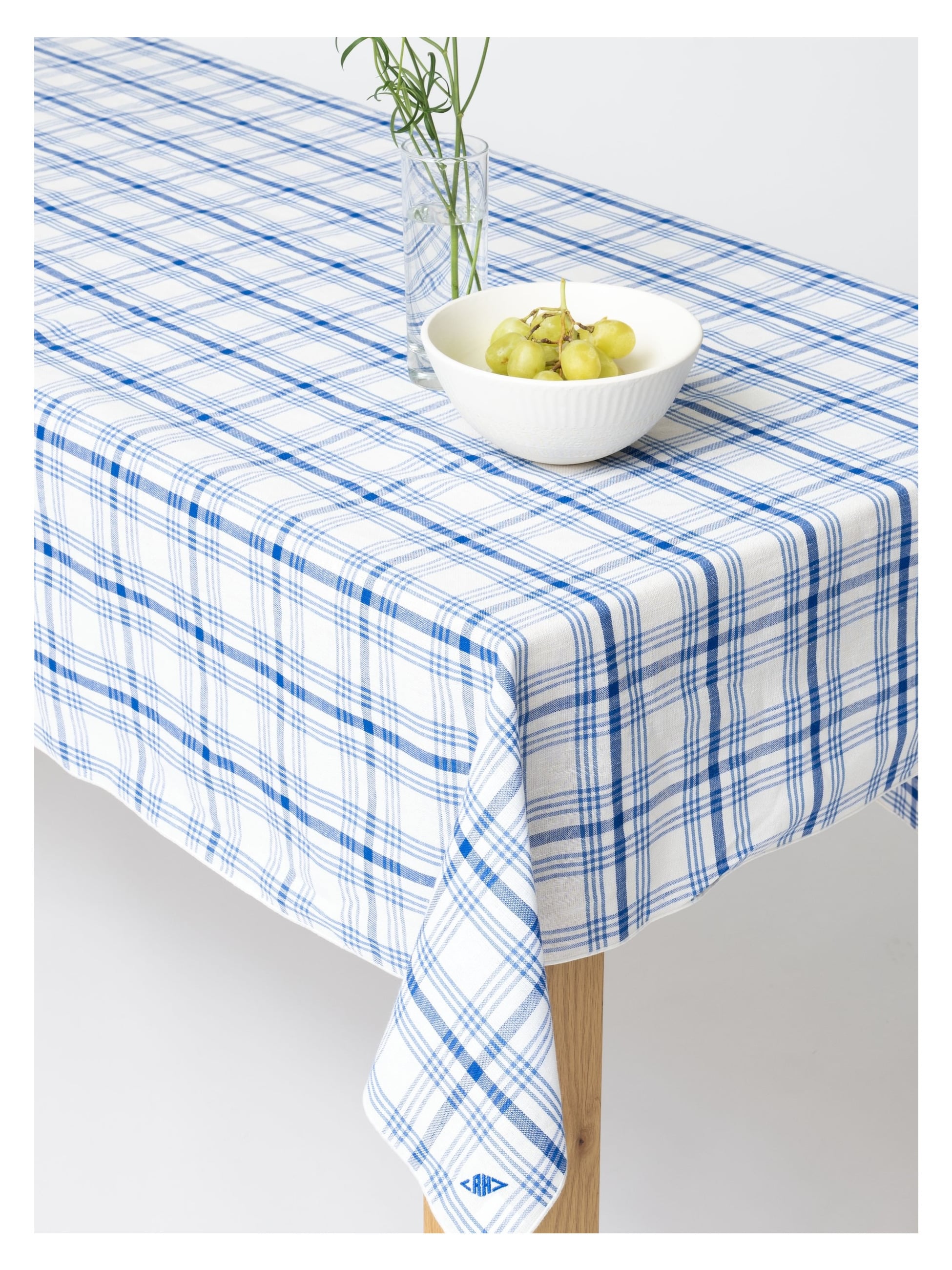 リトアニア産リネンを使用し、現地の老舗ファクトリーで製作したテーブルクロスです。通気性や耐久性に優れ、自然なシワ感とやわらかな表情が食卓にあたたかみをもたらします。blue×whiteの爽やかなカラーリングが空間に軽やかさを添え、日常のひとときをより豊かに演出してくれます。
