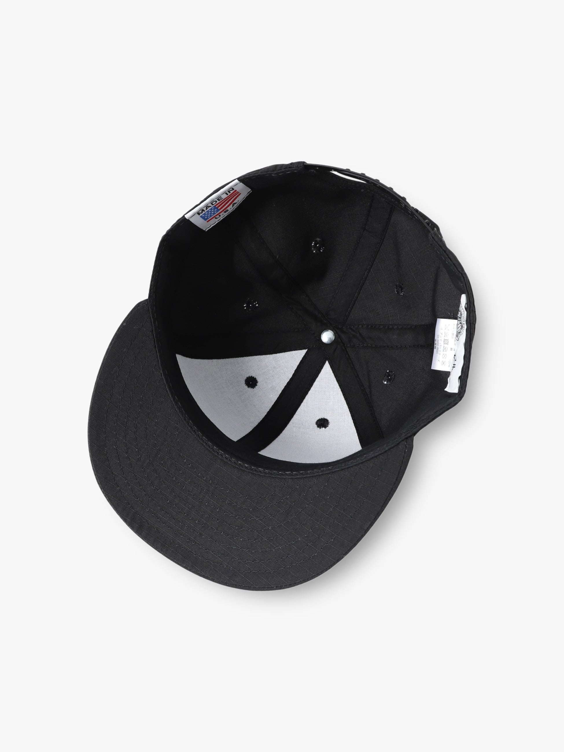 ロンハーマンのためだけに作られた、ナイロンとコットンの混紡素材であるNYCO RIP STOP CORDURAを使用したキャップの登場です。高さのあるハイクラウンモデルを採用し、6パネルで仕上げることで生まれる立体感と優れた被り心地が魅力です。また、バックスタイルはスナップバックにすることで、サイズ調節が可能となっています。さらに、トップパネル裏には芯地を入れて補強することで、特徴的な形状を保つように作られています。統一されたソリッドなカラーリングや、MADE IN USAの確かな作りは、様々なコーディネートに合わせやすいアイテムです。