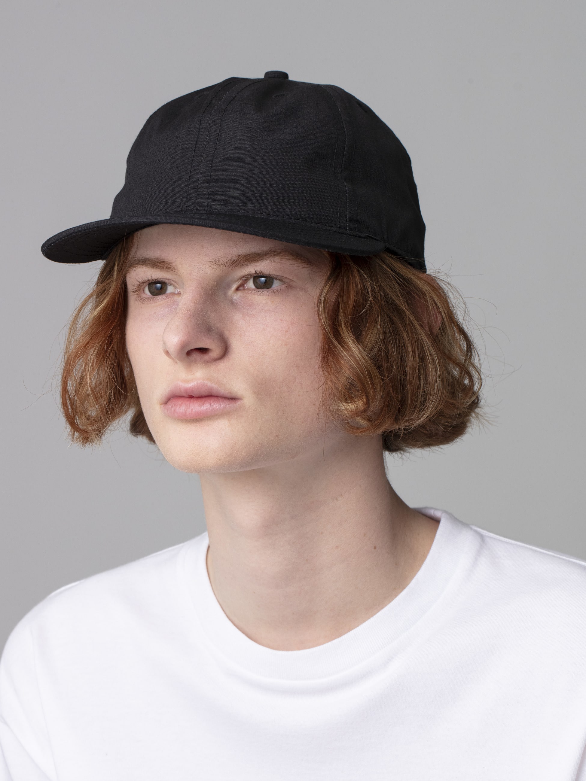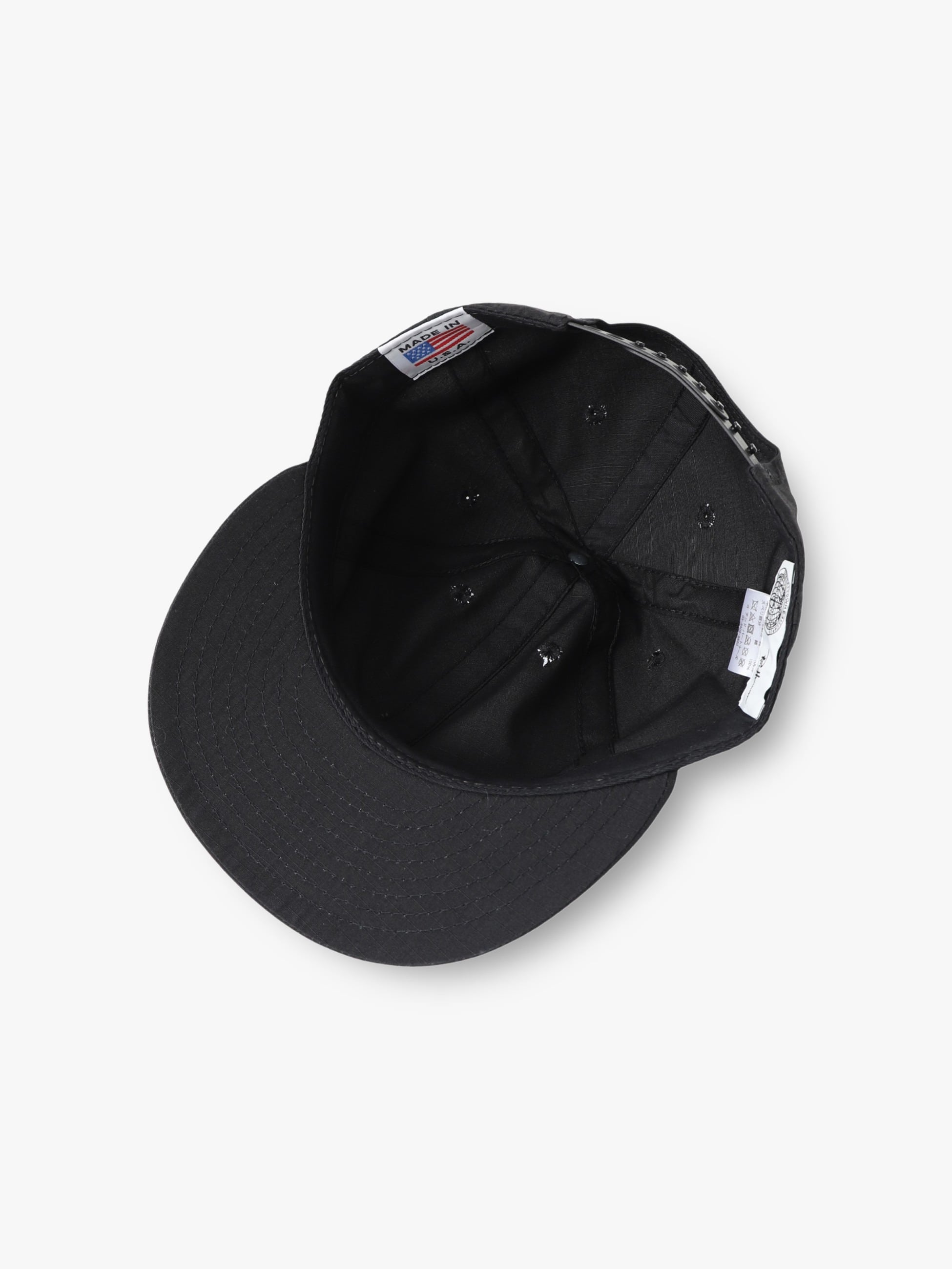 ロンハーマンのためだけに作られた、ナイロンとコットンの混紡素材であるNYCO RIP STOP CORDURAを使用したキャップの登場です。定番のクラウンモデルよりやや低いロウクラウンモデルを採用し、6パネルで仕上げることで生まれる立体感と優れた被り心地が魅力です。また、バックスタイルはスナップバックにすることで、サイズ調節が可能となっています。トップパネル裏の芯地を廃した柔らかな被り心地や、カラーリングを統一したソリッドな表情とMADE IN USAの確かな作りは、様々なコーディネートに合わせやすいアイテムです。