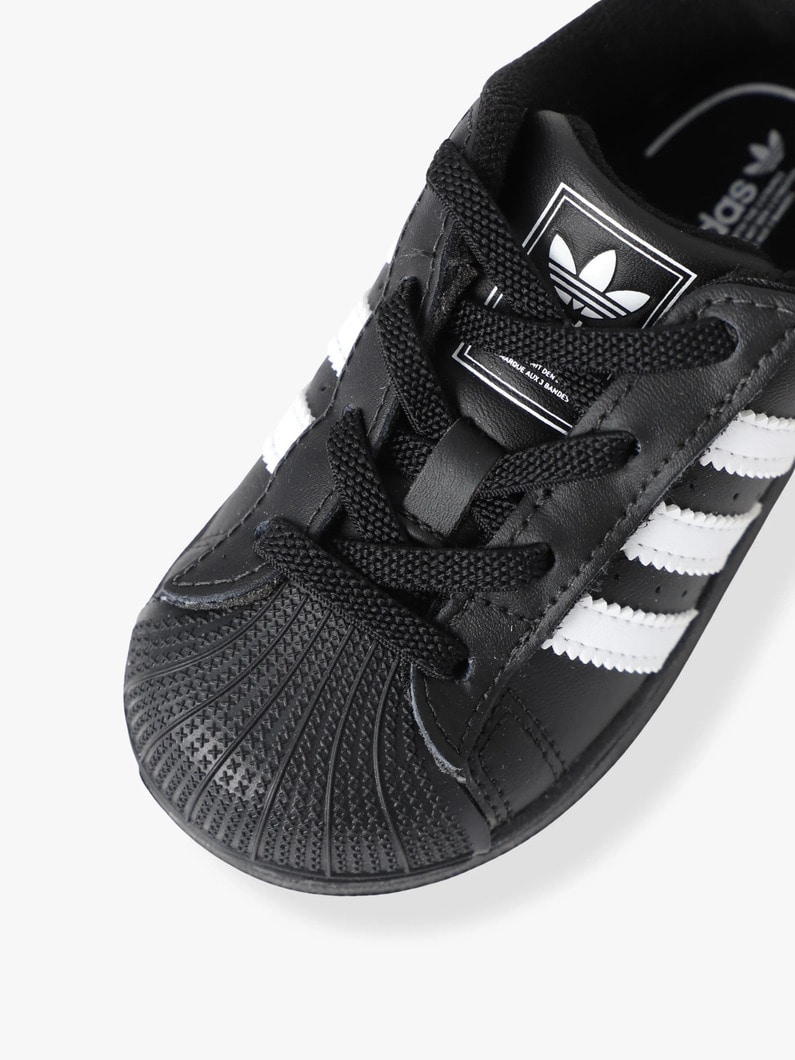 adidasのクラシックなアイテム、スーパースターのキッズシューズは、伸縮性のあるシューレースに面ファスナー式のストラップを合わせ、着脱しやすい仕様です。ラバーのシェルトゥやサイドのストライプデザインなど細かなディテールはそのままに、お子さまの足に優しくフィットします。ギフトにもおすすめです。同シリーズのサイズ違いはこちら。 -