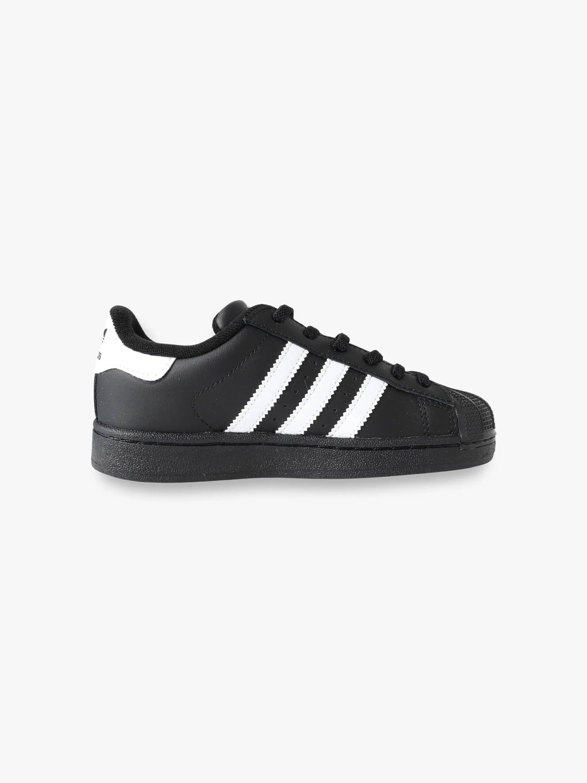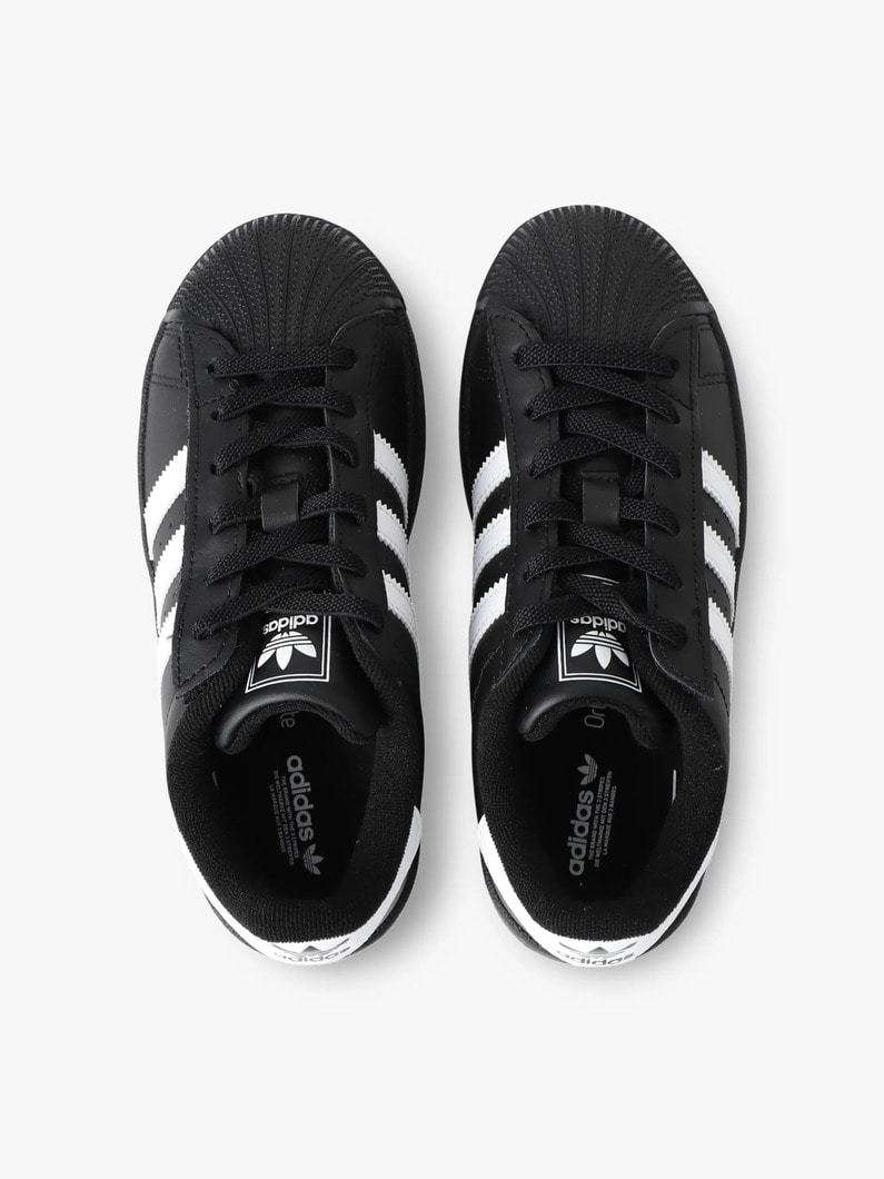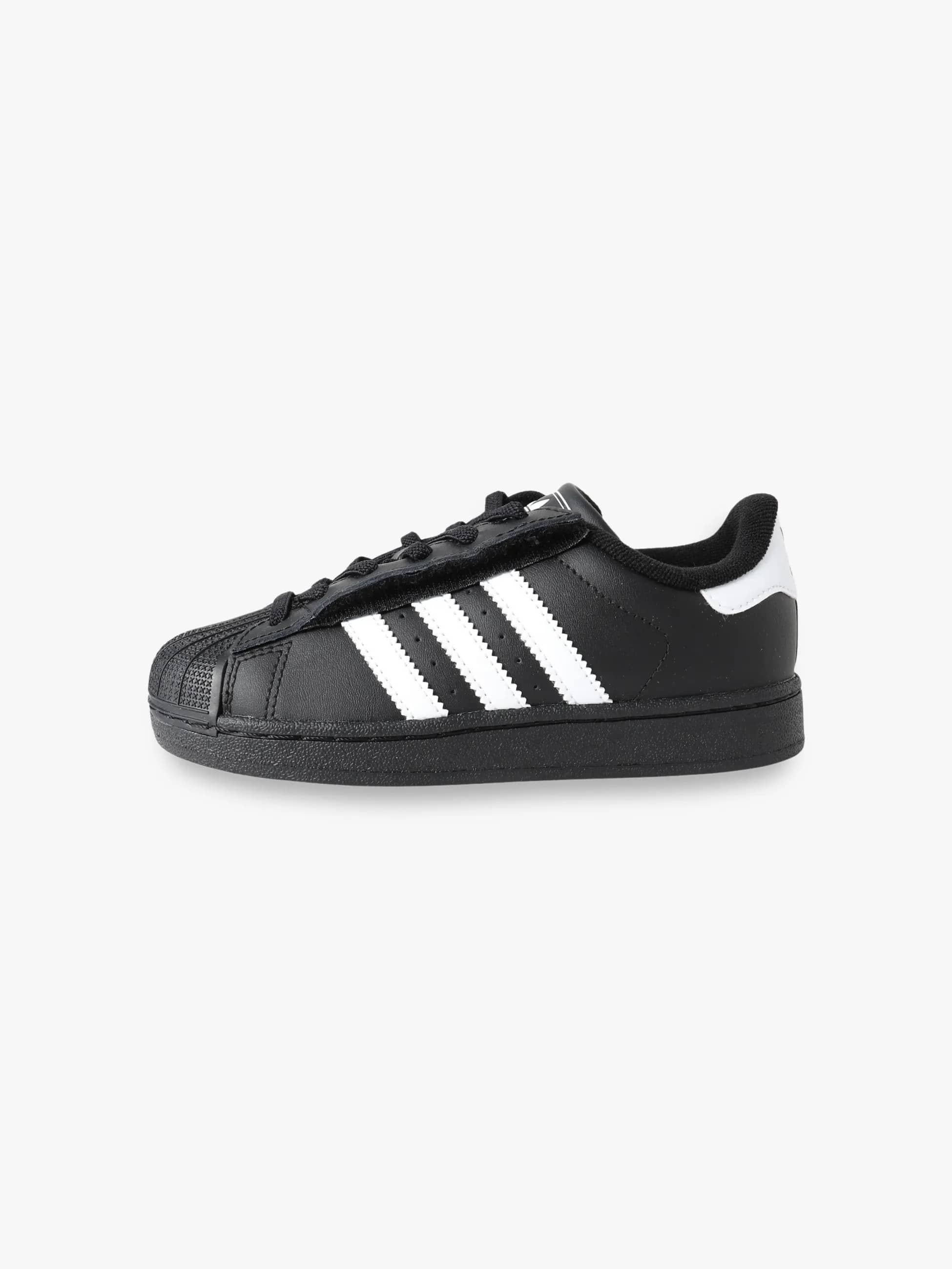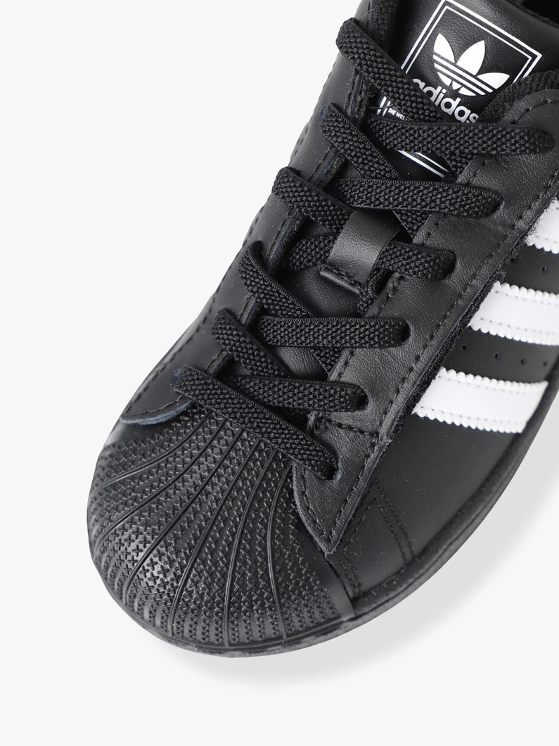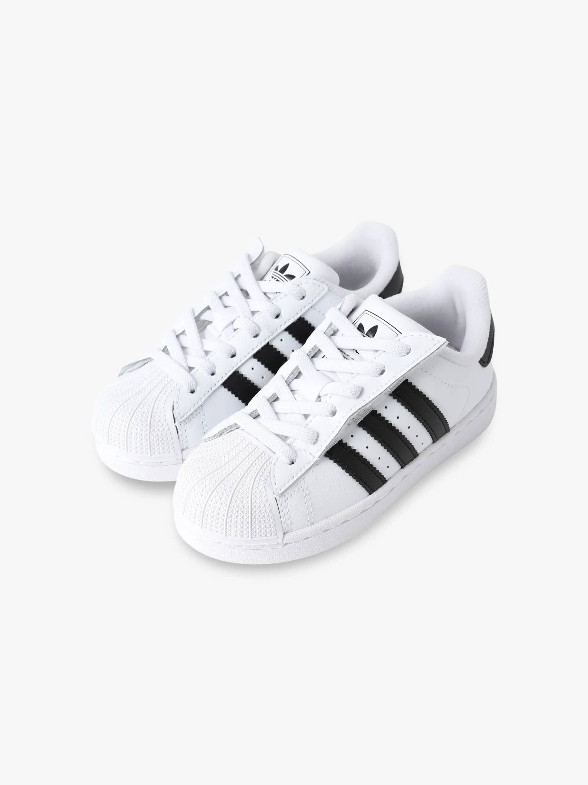 adidasのクラシックなアイテム、スーパースターのキッズシューズは、伸縮性のあるシューレースに面ファスナー式のストラップを合わせ、着脱しやすい仕様です。ラバーのシェルトゥやサイドのストライプデザインなど細かなディテールはそのままに、お子さまの足に優しくフィットします。ギフトにもおすすめです。