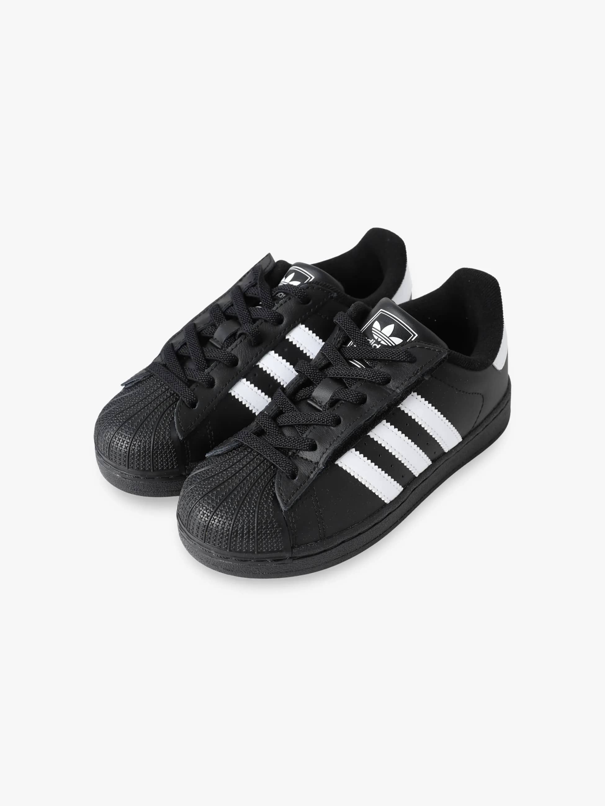 adidasのクラシックなアイテム、スーパースターのキッズシューズは、伸縮性のあるシューレースに面ファスナー式のストラップを合わせ、着脱しやすい仕様です。ラバーのシェルトゥやサイドのストライプデザインなど細かなディテールはそのままに、お子さまの足に優しくフィットします。ギフトにもおすすめです。
