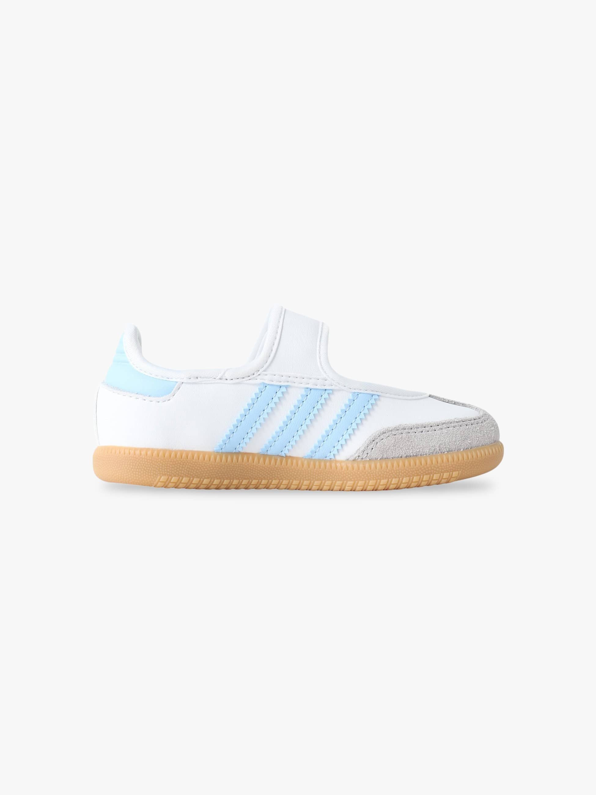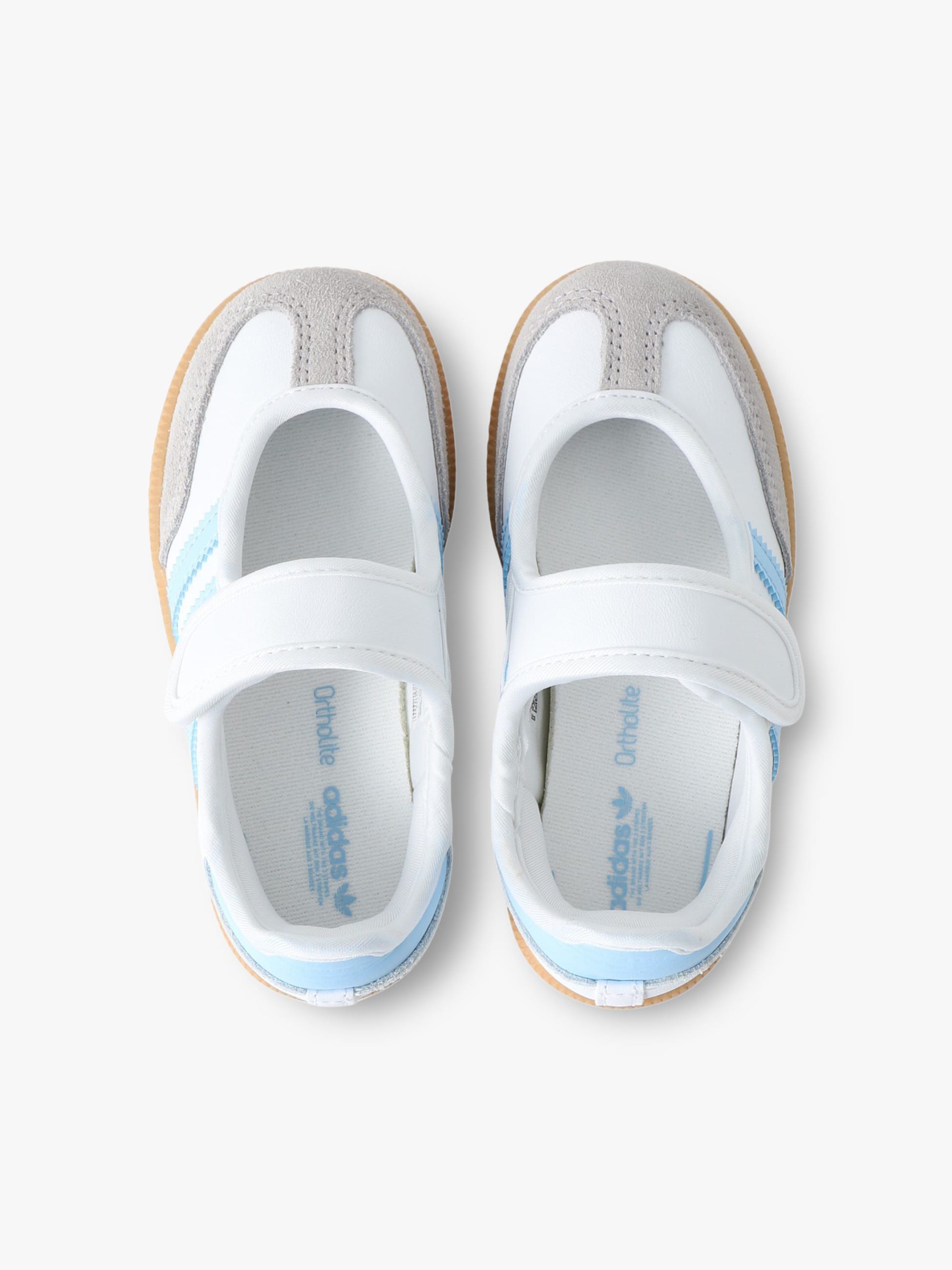 メリージェーンとバレエフラットのトレンドを楽しく取り入れたシューズは、アイコニックなサンバOGに新鮮さを加えたモデルです。足の甲が大きく開き、面ファスナー式のクロージャーで留められるため簡単に着脱できます。ギフトにもおすすめのアイテムです。