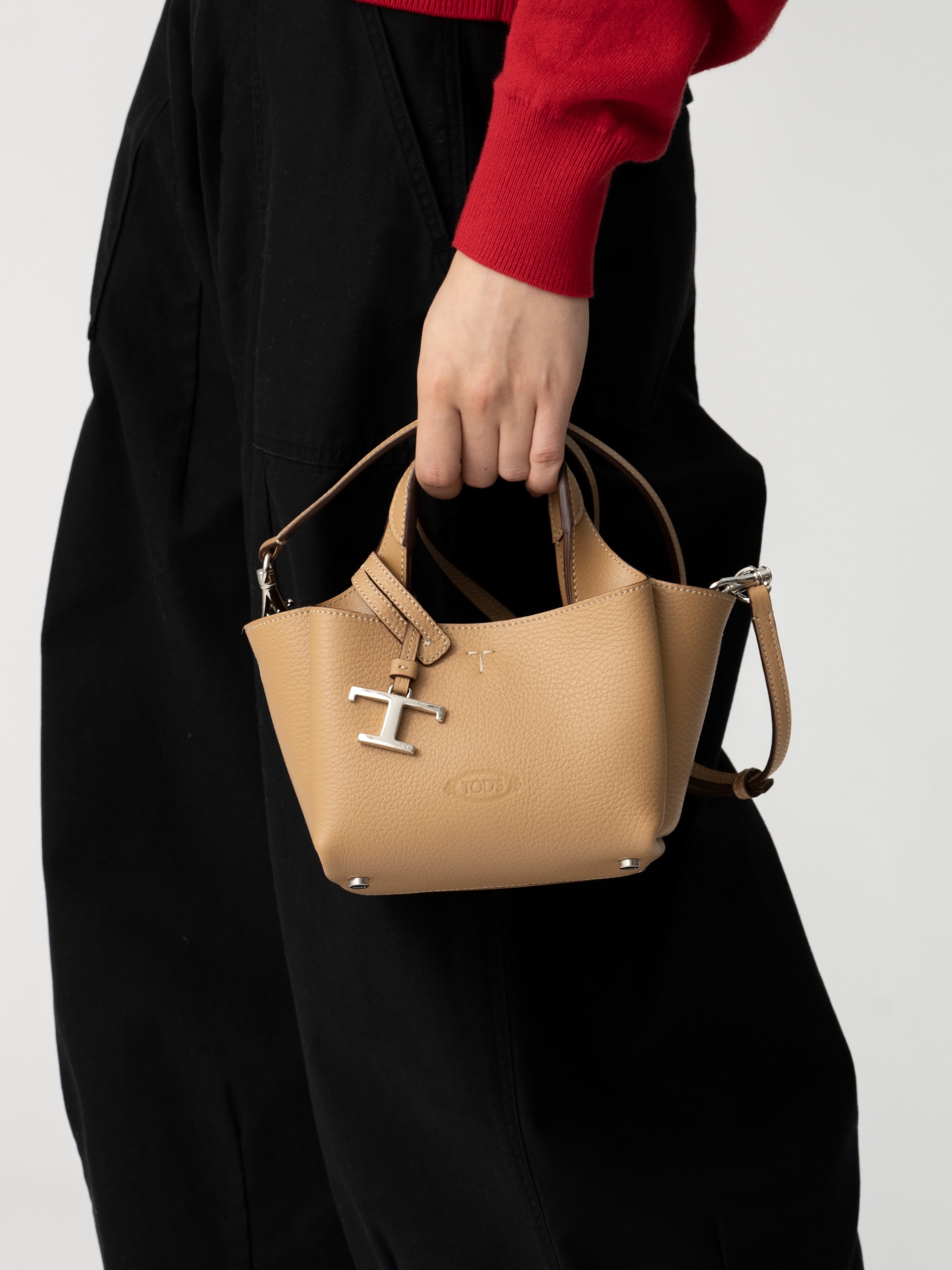 コレクション展開のあるマイクロサイズのカーフレザーバッグから、モノトーンにもカラフルな装いにもマッチする定番のキャメルとホリデーシーズンのムード漂うバーガンディーの2色をセレクトし、RHC ロンハーマンで別注しました。ハンドとクロスボディの2way仕様で汎用性が高く、内側は大小のコンパートメントで荷物を整理しやすい仕上がりに。見た目にも分かる上質なクオリティと美しいフォルム、高い機能性を兼ね備えています。フロントにホットスタンプのブランドロゴがあしらわれ、トッズならではのアイコニックなディテールが光るアイテムをぜひお楽しみください。