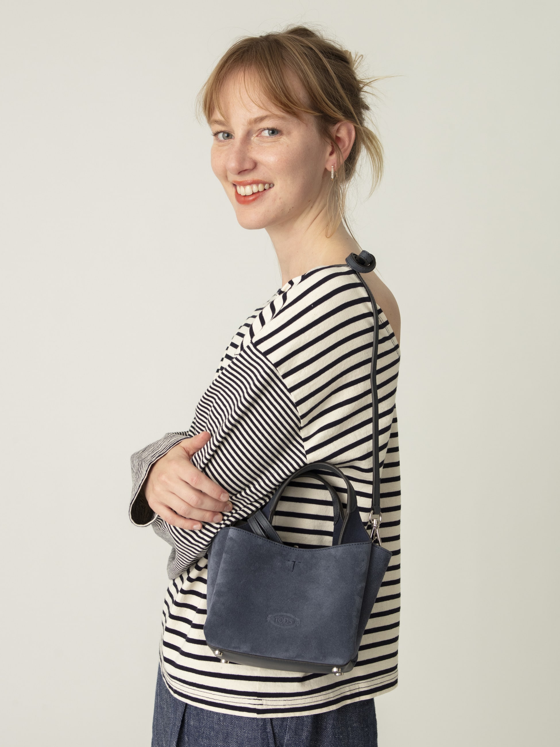 コレクション展開のあるマイクロサイズのカーフスエードレザーバッグから、柔らかなブラウンとネイビーの2色をセレクトし、RHC ロンハーマンで別注しました。柔らかなサマースエードがカジュアルなスタイリングをアップグレードし、上品さをプラスしてくれます。ハンドとクロスボディの2way仕様で汎用性が高く、内側は大小のコンパートメントで荷物を整理しやすい仕上がりに。見た目にも分かる上質なクオリティと美しいフォルム、高い機能性を兼ね備えています。フロントにホットスタンプのブランドロゴがあしらわれ、トッズならではのアイコニックなディテールが光るアイテムをぜひお楽しみください。