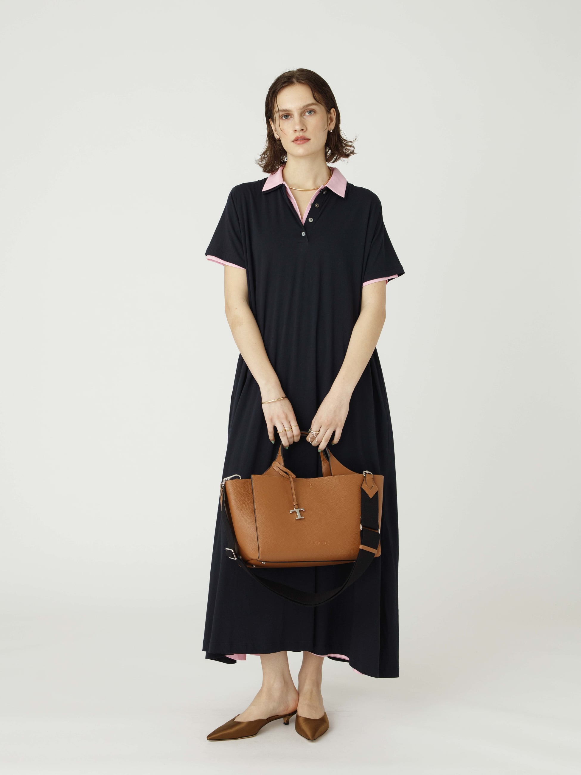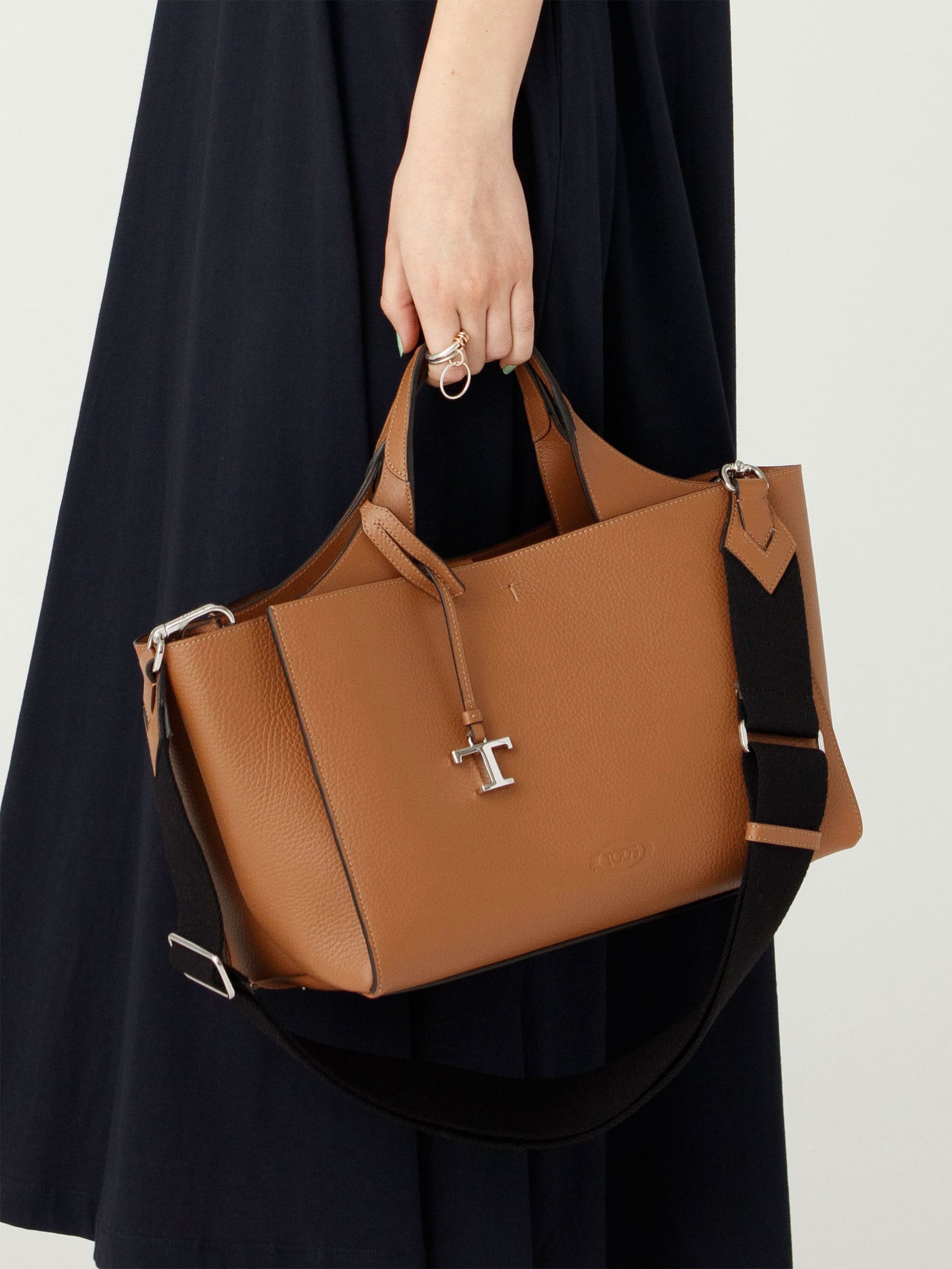 フロントに"T"の刺繍ステッチとブランドロゴがあしらわれたTOD’Sのショルダーバッグを、温かみのあるナチュラルなブラウンのボディと、ブラックのキャンバス素材のストラップで別注しました。ボディのステッチカラーはボディと馴染む同色に変更し、飽きのこないシンプルなデザインです。大きめな開閉口は荷物の出し入れもしやすく、広めのマチにより、収納力も抜群です。クロスボディとしても使用でき、普段使いはもちろん、ビジネスシーンなど幅広い場面で愛用いただける上質なアイテムです。