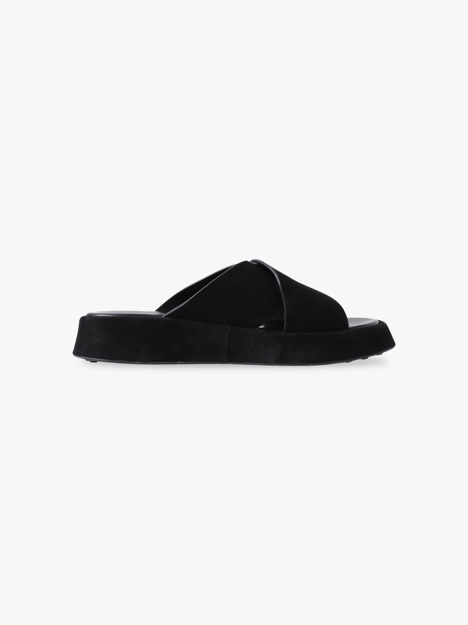 クロスベルトがアイコニックな新型のサンダルに、ロンハーマン限定のスウェード素材を採用した特別な一足が登場です。コレクションラインでは表革だった素材をスウェードに変更し、ほどよいカジュアルさをプラスしました。厚みのあるソールは履き心地が良く、さりげなくスタイルアップも叶えてくれるのも嬉しいポイント。どんなスタイリングにもマッチする、シンプルなブラックとブラウンの2色展開です。