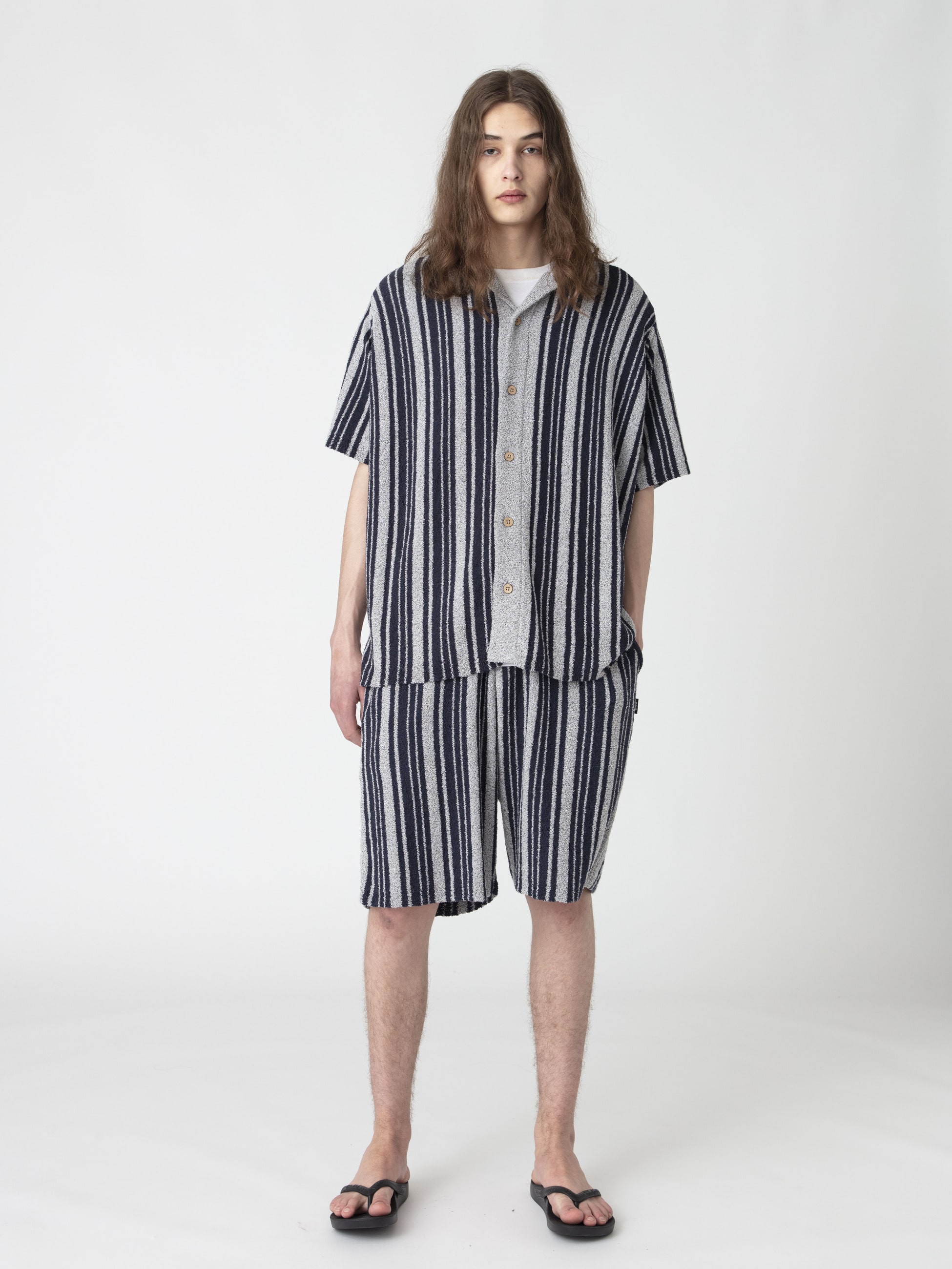毎シーズン人気を博しているBILLABONGとのコラボレーションより、パイル素材を採用したショートパンツの登場です。パイル素材による柔らかな肌触りと優れた吸水性は、気温の高い時季でも快適な着心地を実現しています。また、着回ししやすいソリッドカラーとコーディネートのアクセントになる洗練されたストライプ柄や程よくゆったりとしたフィットは、大人の表情を纏った存在感のあるアイテムに仕上げています。高品質なファブリックを使用しながらも、ファッションとスポーツが凝縮されたアイテムは、タウンユースからアウトドアまで様々なシーンのスタイリングでお楽しみいただけます。