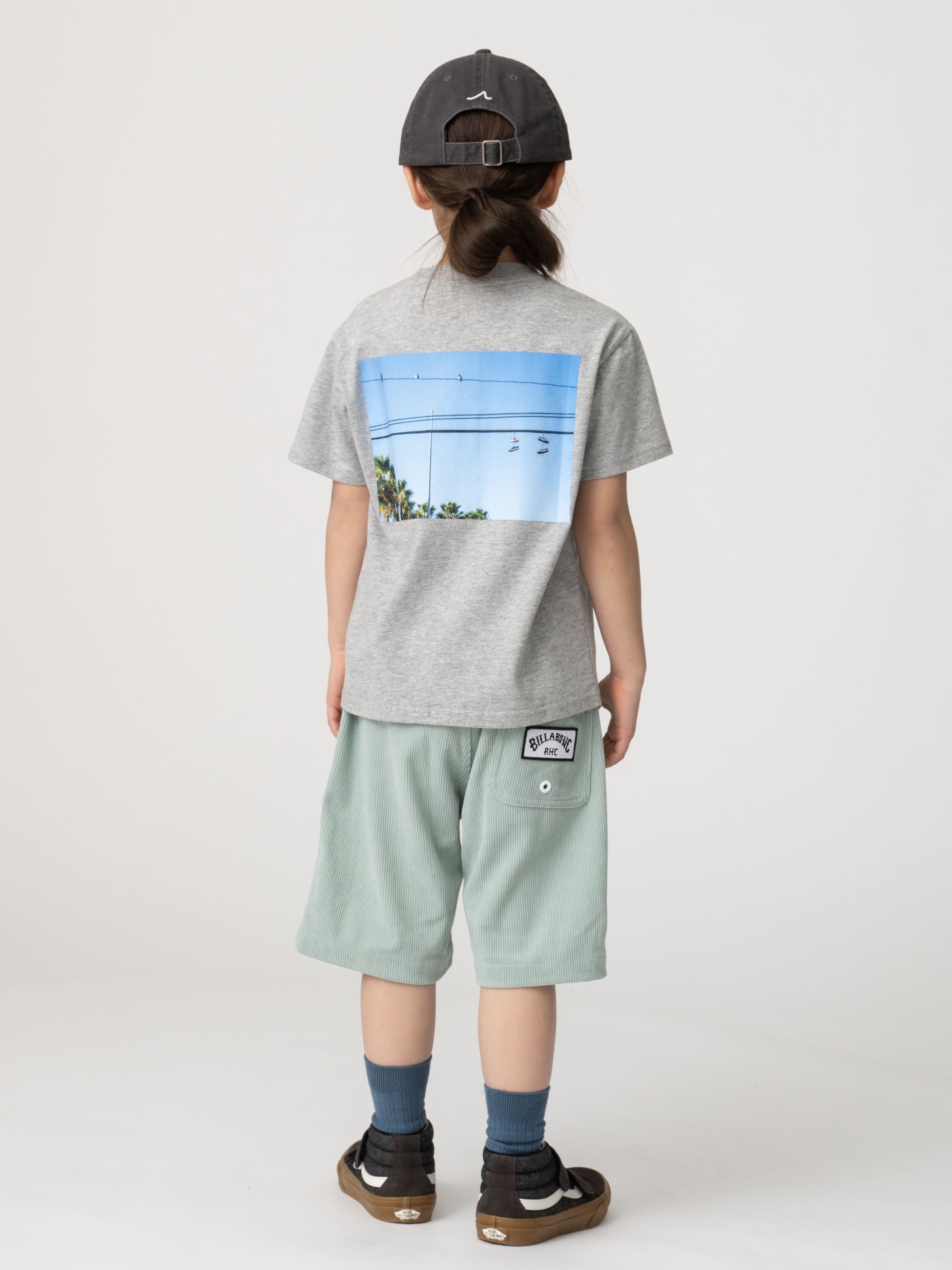 ロンハーマンキッズで別注した特別なアイテムが登場です。サーフスタイルに合わせやすい、ポリエステルのコーデュロイ生地を使用した水陸両用のショーツは、UVプロテクションを備えているため、紫外線からお子様の肌を守り、デイリー使いはもちろん水遊びなどでも活躍します。ウエストは伸縮性のあるゴムにドローコード仕様のため、フィット感を調整できます。