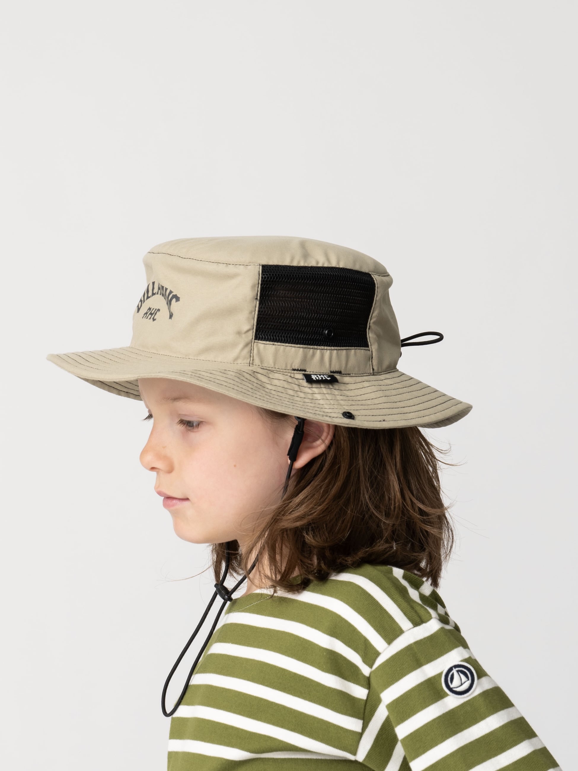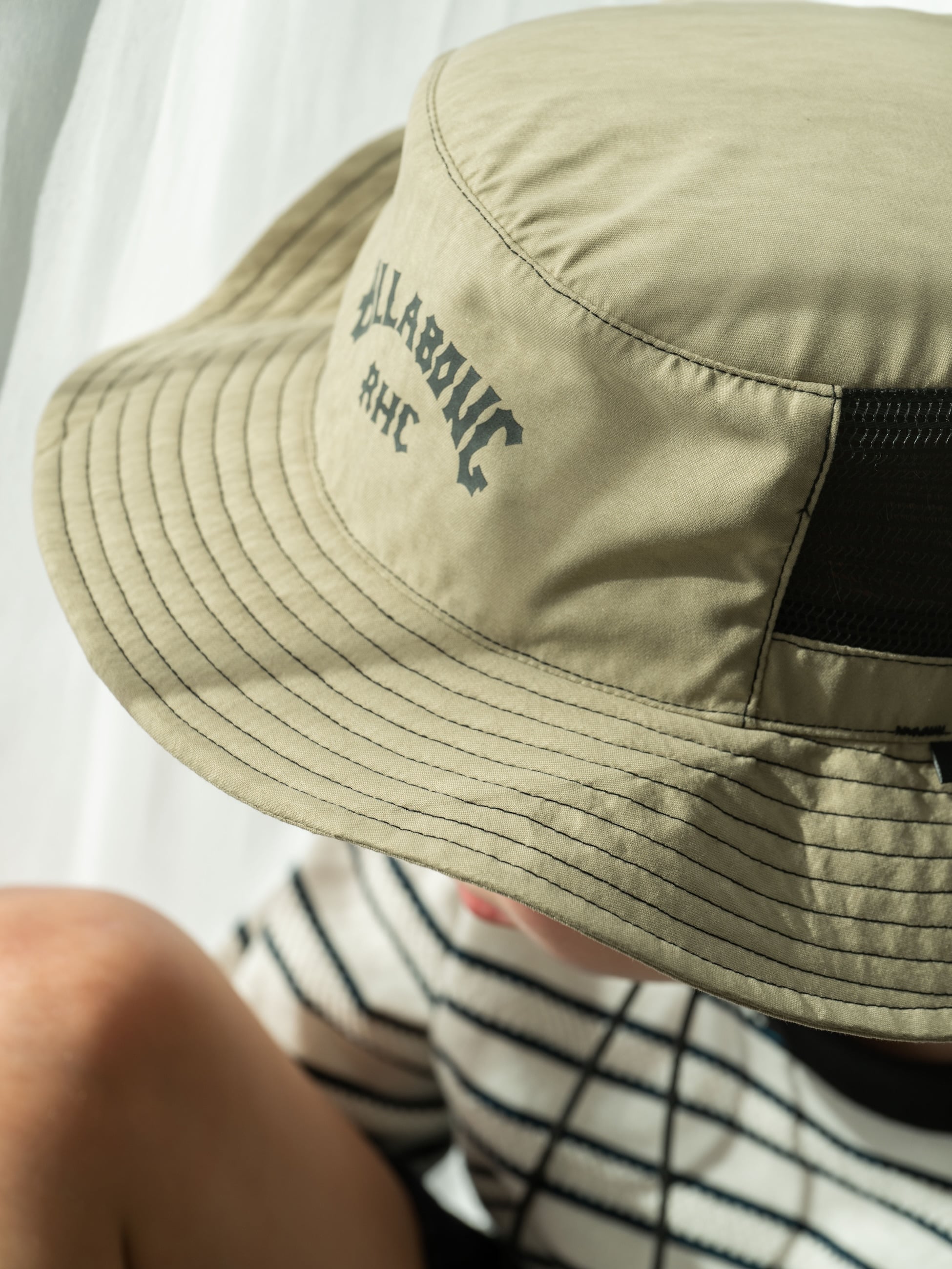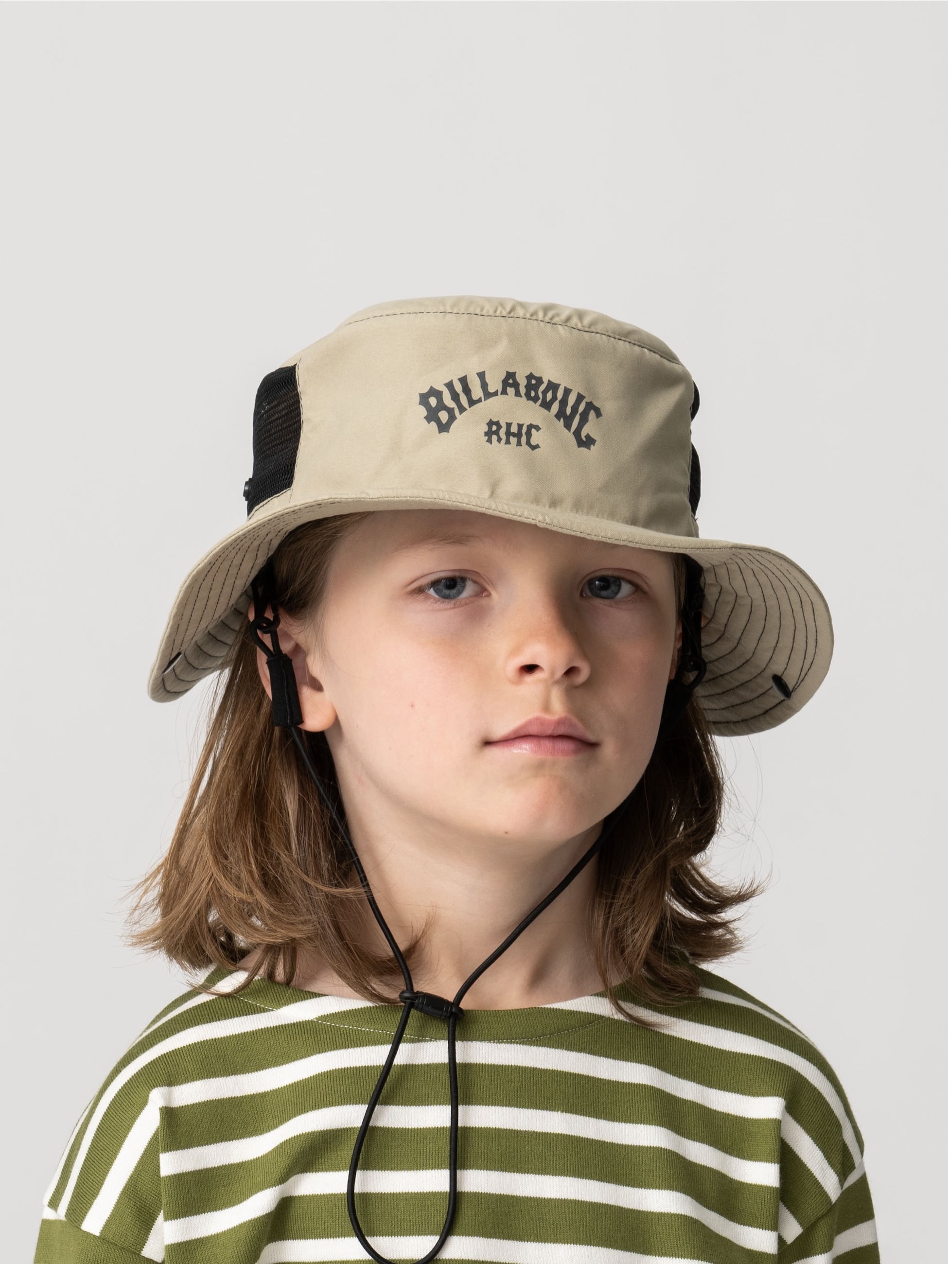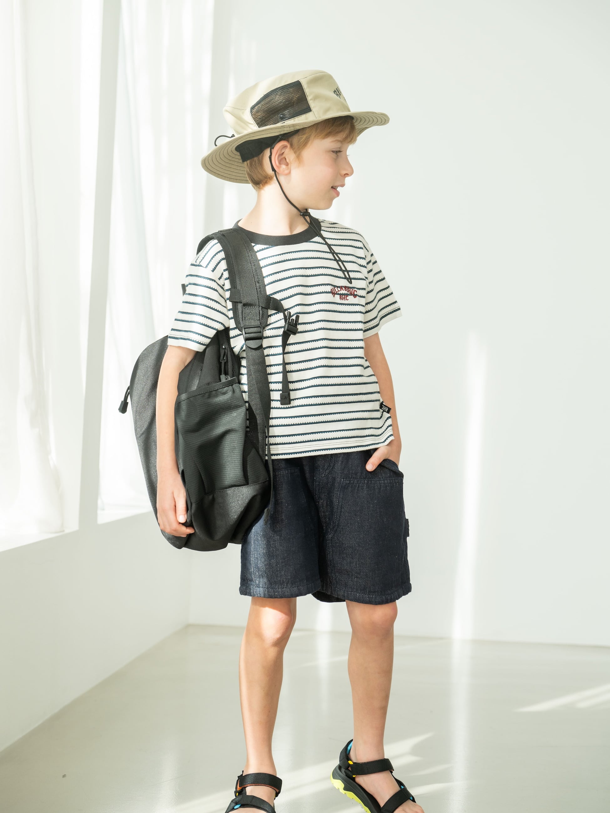 ロンハーマンキッズ別注の特別なサーフハットが登場です。リサイクルポリエステルを使用しているため軽量で、UVプロテクション(UPF50+) を備えており、屋外でのアクティビティでも安心して着用できます。サイドには通気性に優れたメッシュ切り替えを施し、蒸れにくく快適なかぶり心地に仕上げました。チンストラップは取り外し可能で、サイドのボタンにより異なるシルエットを楽しめます。背面のドローコードにより簡単にサイズ調整ができ、お子さまの成長に合わせて長くご利用いただけます。