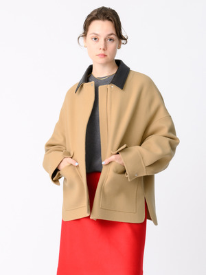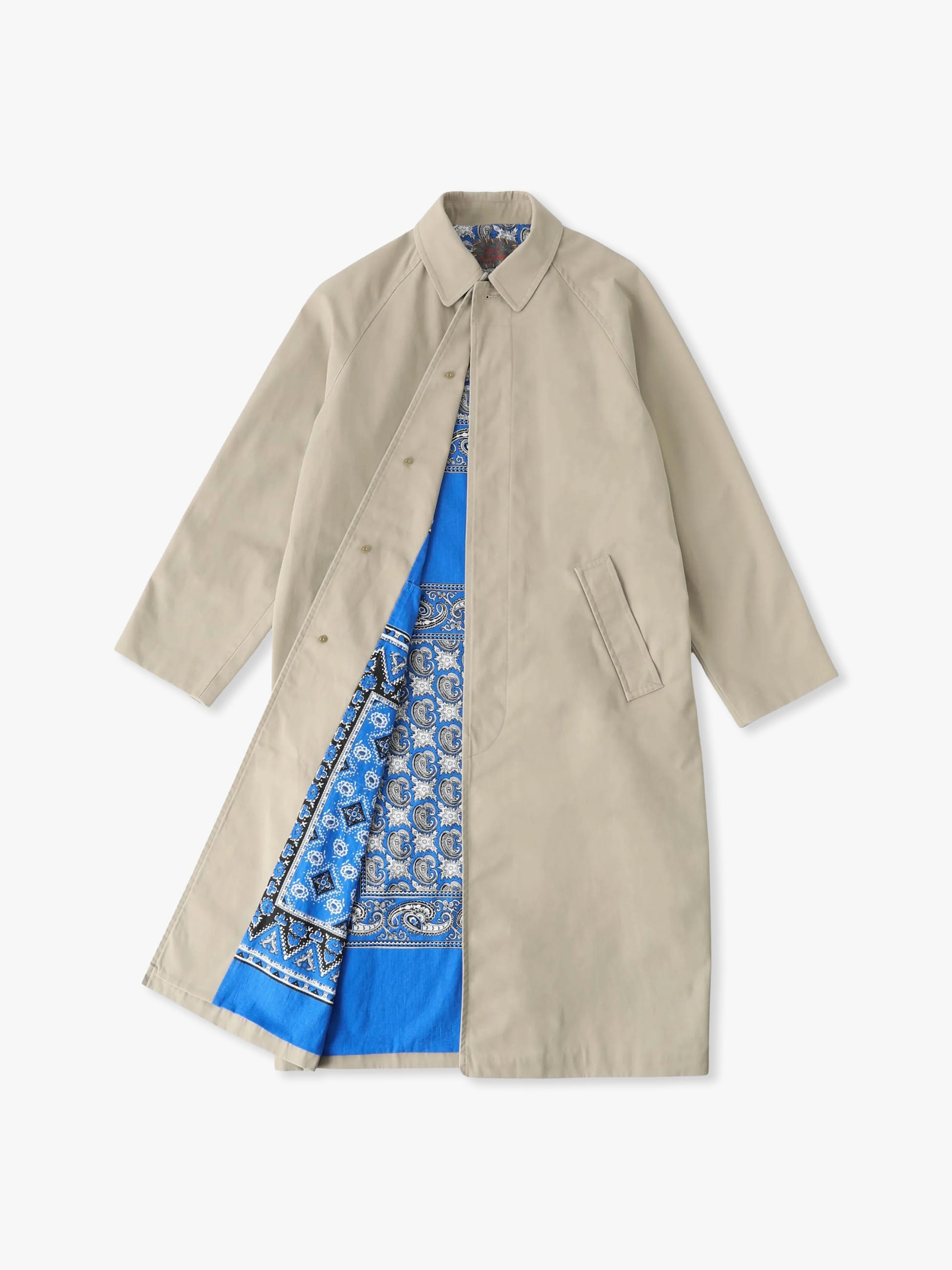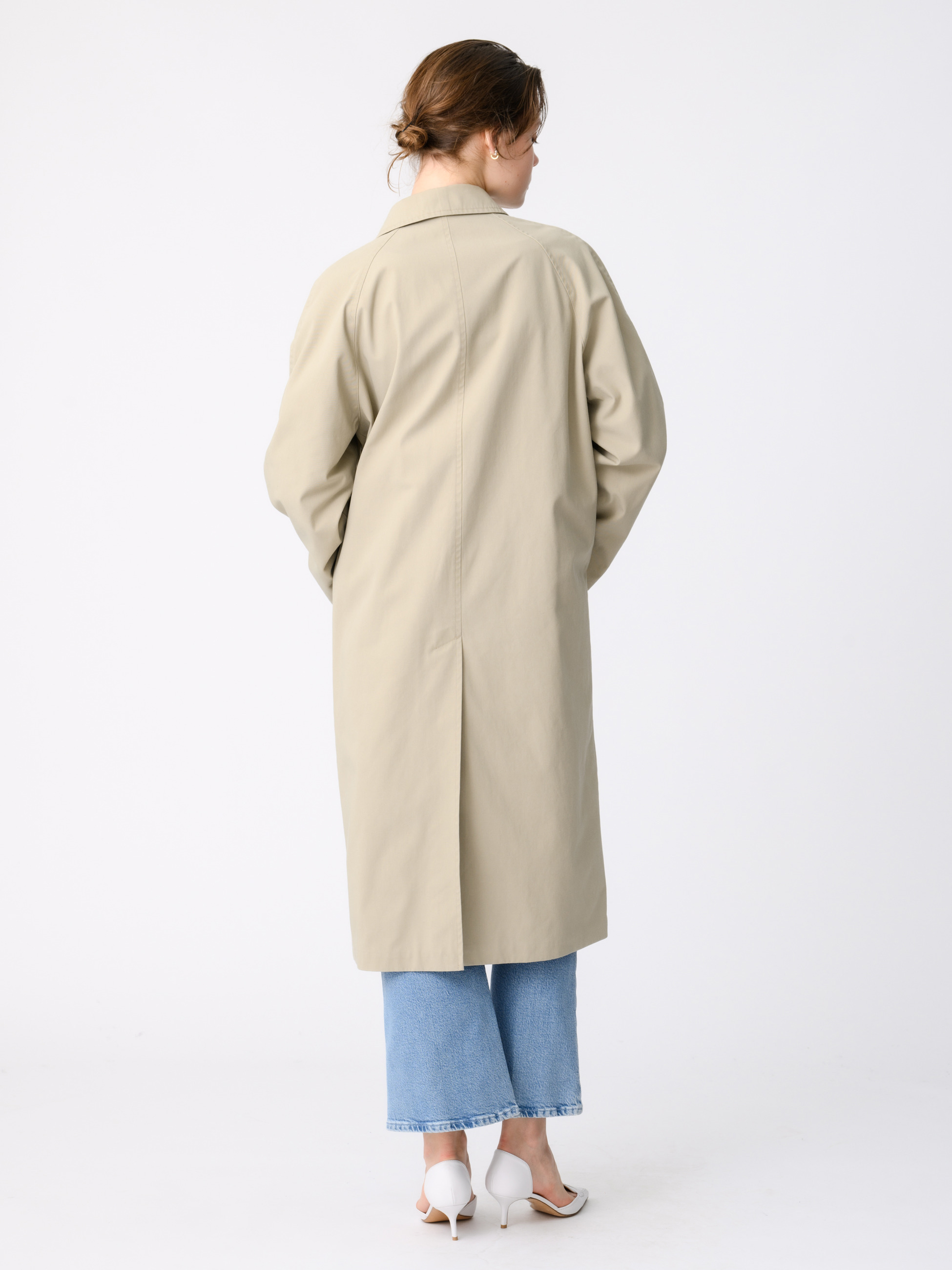 - スコットランドの地名から名を得た、クラシックなバルカラーコートは、しっかりとしたハリ感のある生地に、重みのあるマキシ丈のシルエットがシンプルながら、上品な印象を演出します。裏地には、メキシコのバンダナプリント生地を使用し、動くたびにちらっと見える華やかな色合いも、遊び心のある一枚です。同素材を使用したハイウエストタックパンツもございます。