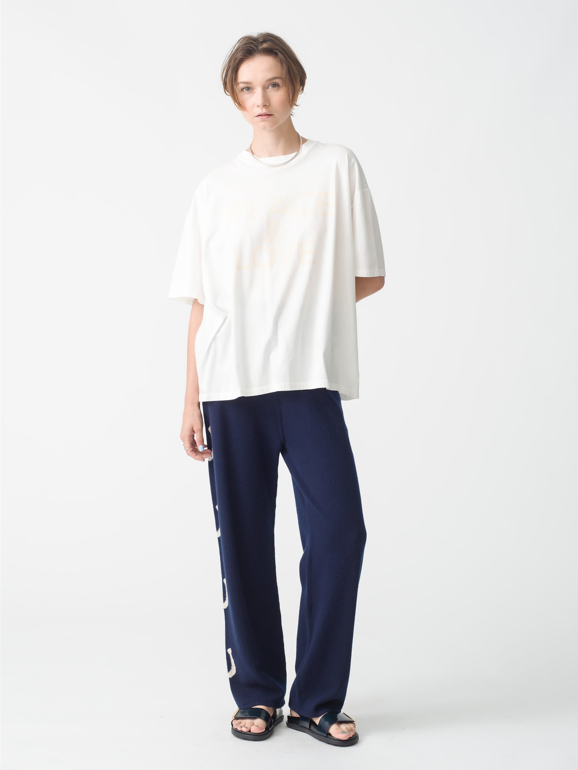- 古くから幸運のシンボルとして捉えられているホースシューを、両サイドにジャガードであしらった大胆かつユニークなニットパンツです。肌あたりのよい柔らかなニット素材で、リラックス感のある履き心地が特徴です。「縦に並んだ馬蹄が、幸運を余すことなく受け止めてくれますように」という温かいメッセージも込められた、アイコニックなアイテムをぜひお楽しみください。
