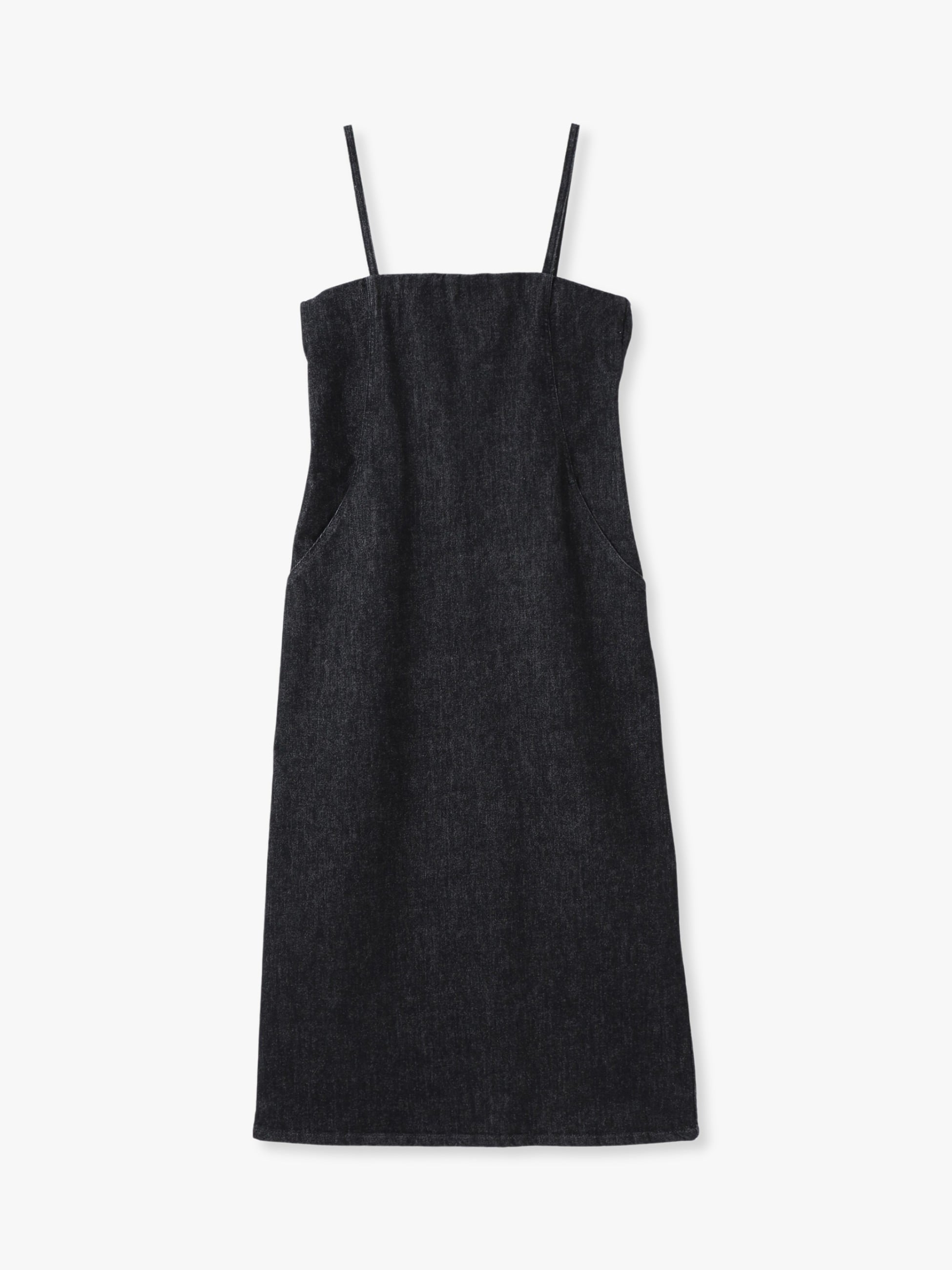 ストレッチ性のあるデニム素材のミニドレスは、1枚でヘルシーにも、インナーに薄手のカットソーを着用したり、パンツの上から重ねたりと様々なレイヤードスタイルをお楽しみいただけます。バスト部分はゴム仕様で、肩紐を身頃に収めればベアトップドレスとしても着用いただけます。