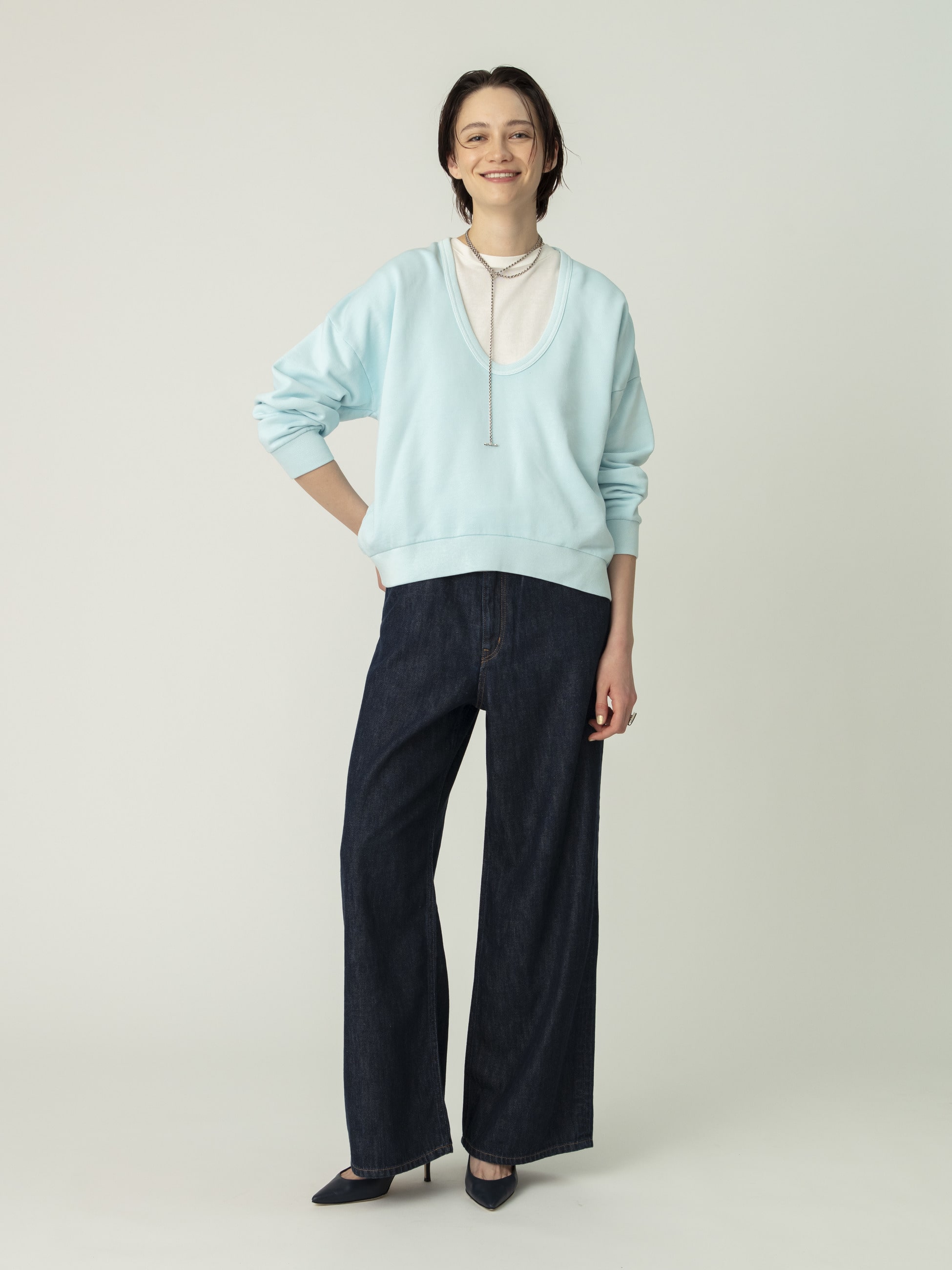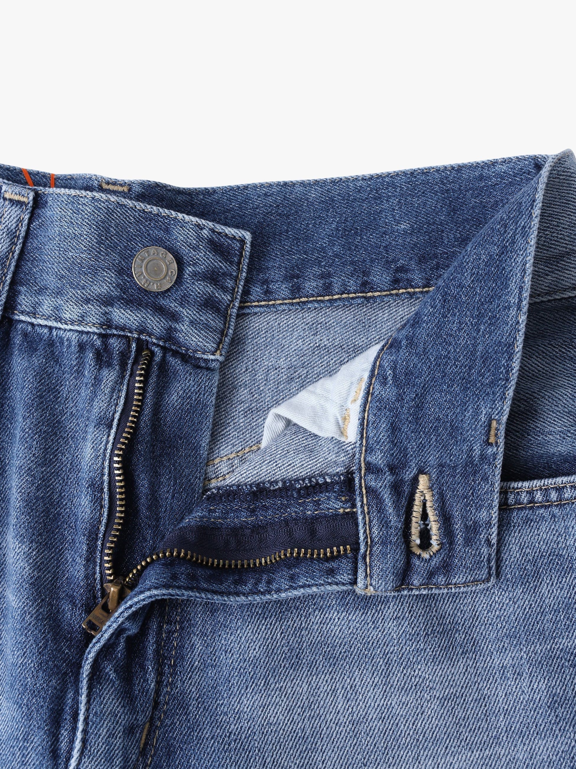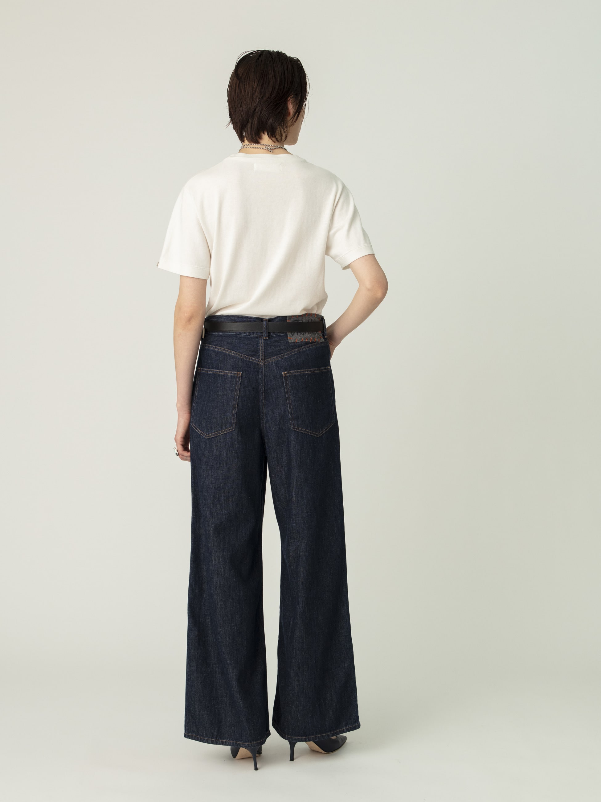 ウエストにゆとりを持たせたローライズデニムパンツは、肌馴染みの良い生地を使用し、軽やかで穿きやすく、ヴィンテージ感のある風合いが特徴です。ベルト合わせのスタイリングも映え、新たなベーシックアイテムとしても重宝します。