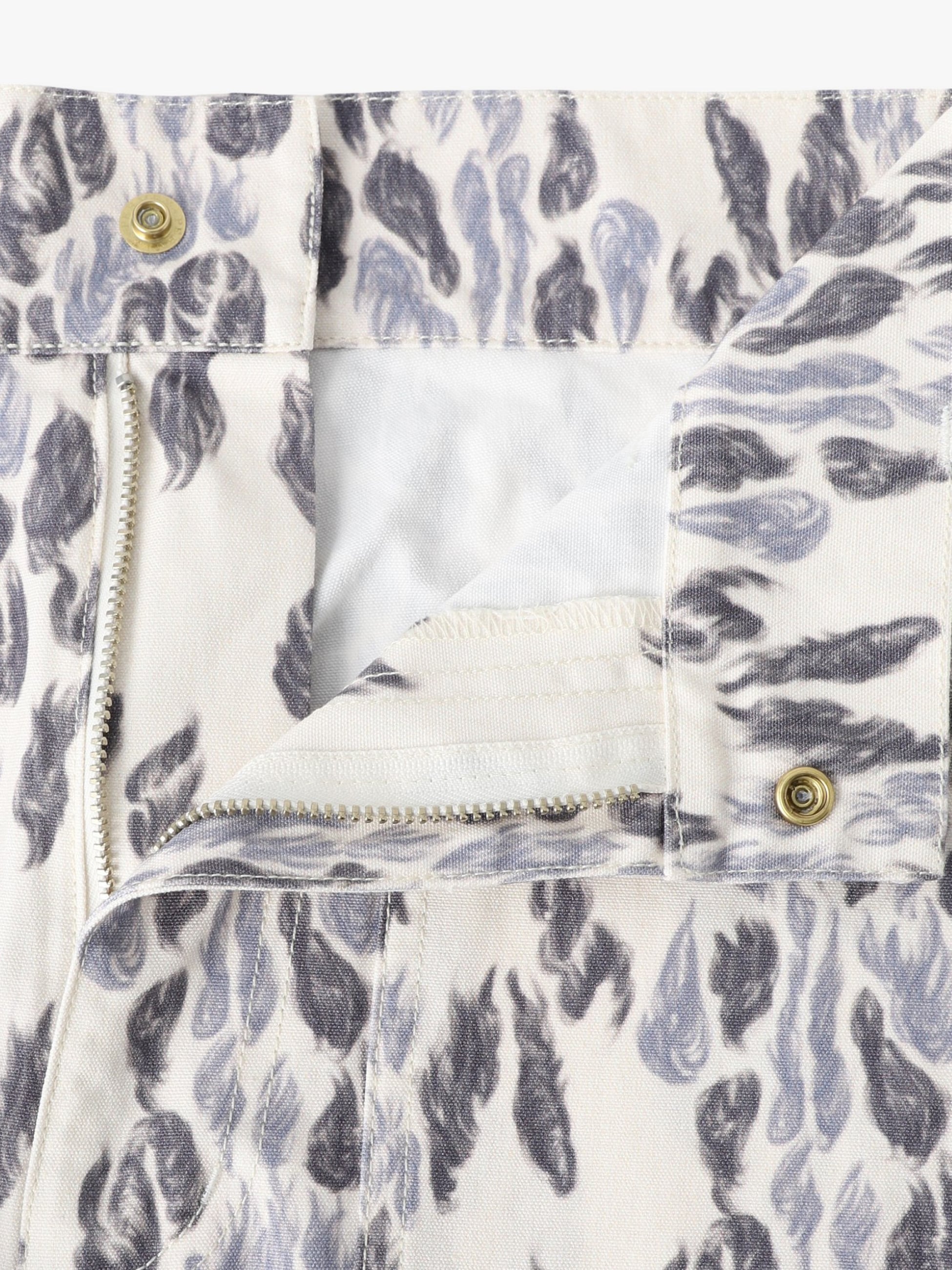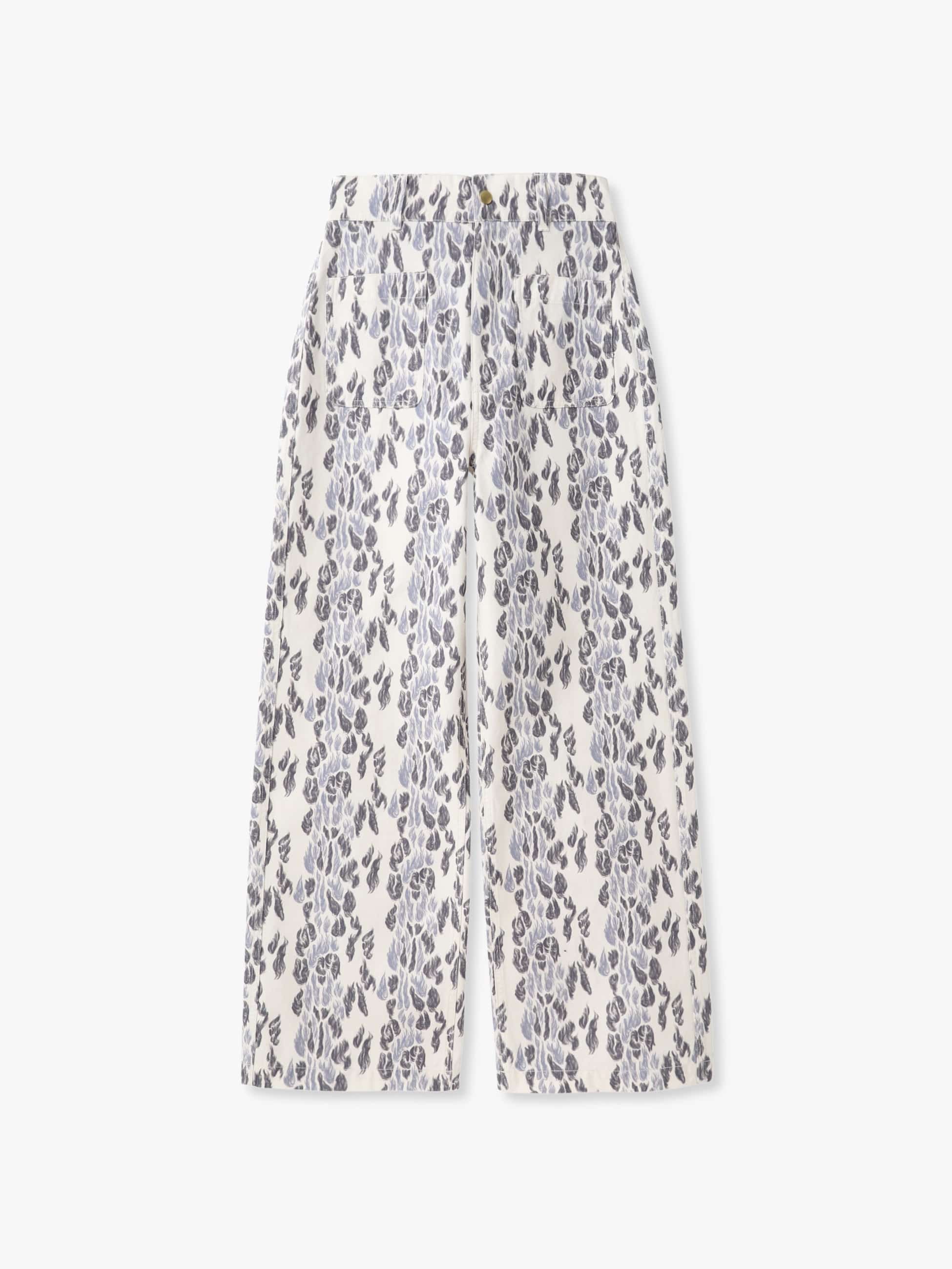 - しっかりとハリのあるダック生地に、オリジナルのレオパード柄をプリントしたストレートシルエットのワイドパンツです。存在感抜群ながら、手書きのレオパード柄は上品さも感じる一枚で、スタイリングのアクセントとしてシンプルなトップス合わせるのもおすすめです。同シリーズのカバーオールジャケットもございます。