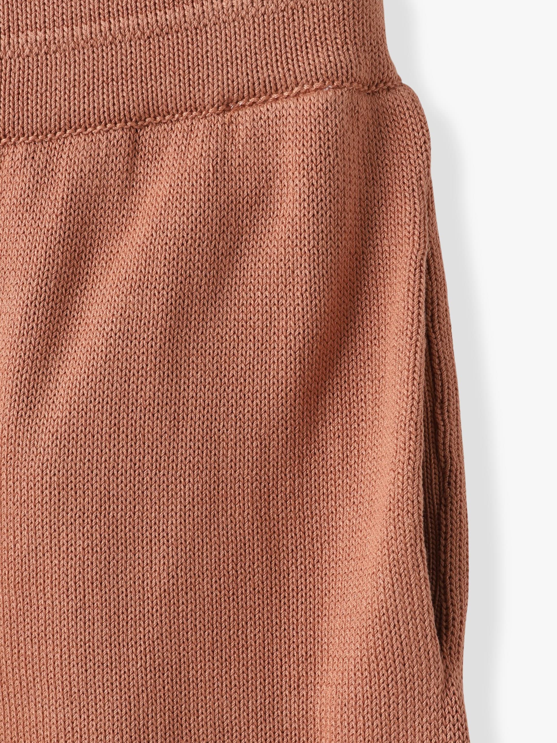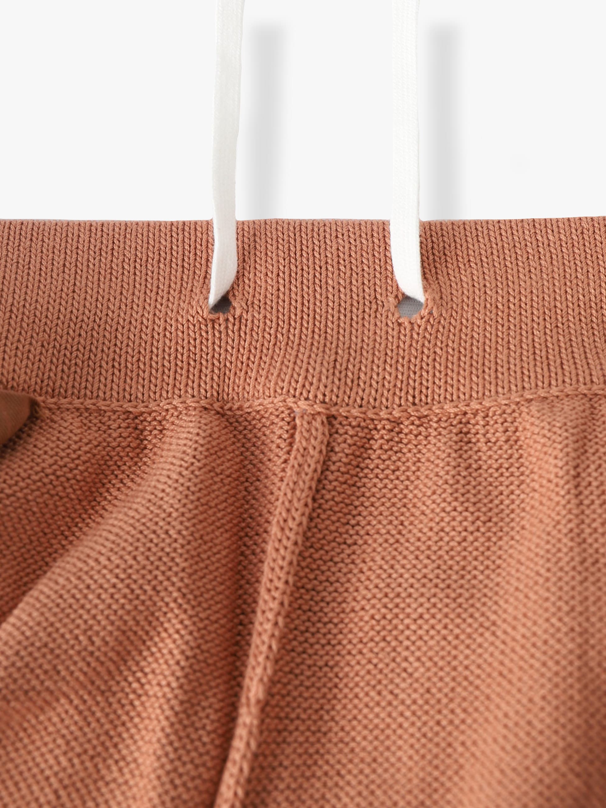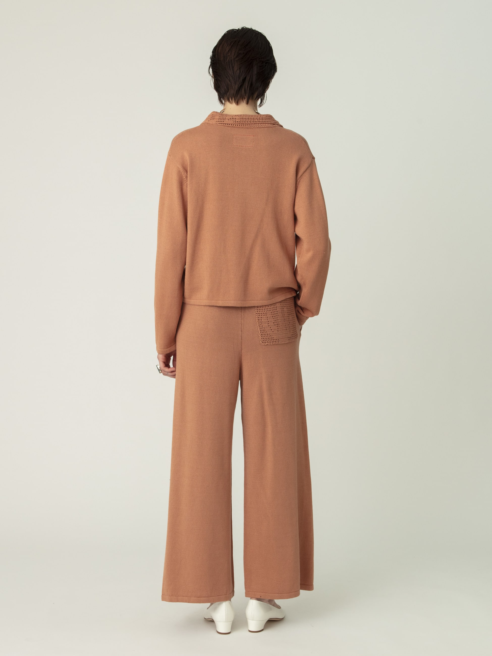 - 優しい肌触りのコットン糸を使用したニットパンツは、脚のラインを拾わないゆとりのあるシルエットで、ぺチパンツが付属しウエストはドローストリング仕様になっています。ポケットにはサボテンの一種であるカーネギア・ギガンテアの模様を配し、ハンドメイドの温かみと遊び心を楽しめる逸品です。同シリーズのニットポロトップとセットアップでも着用いただけます。