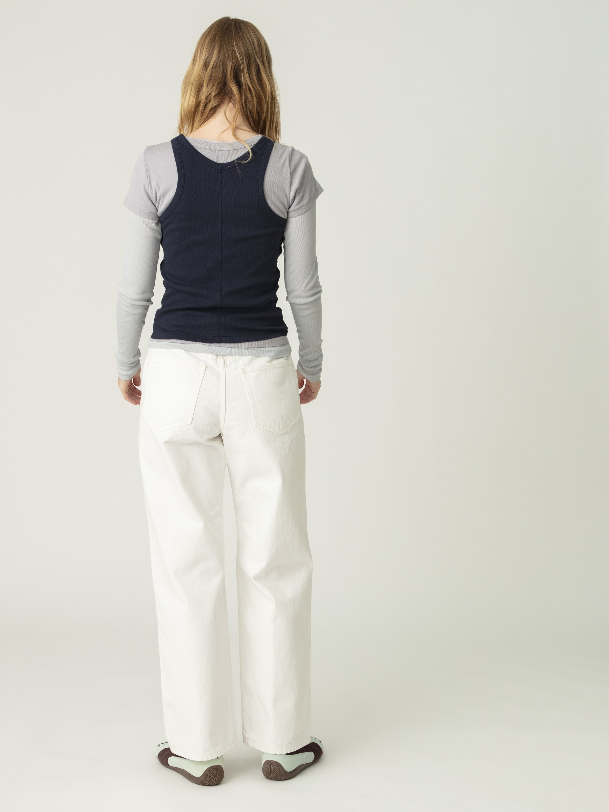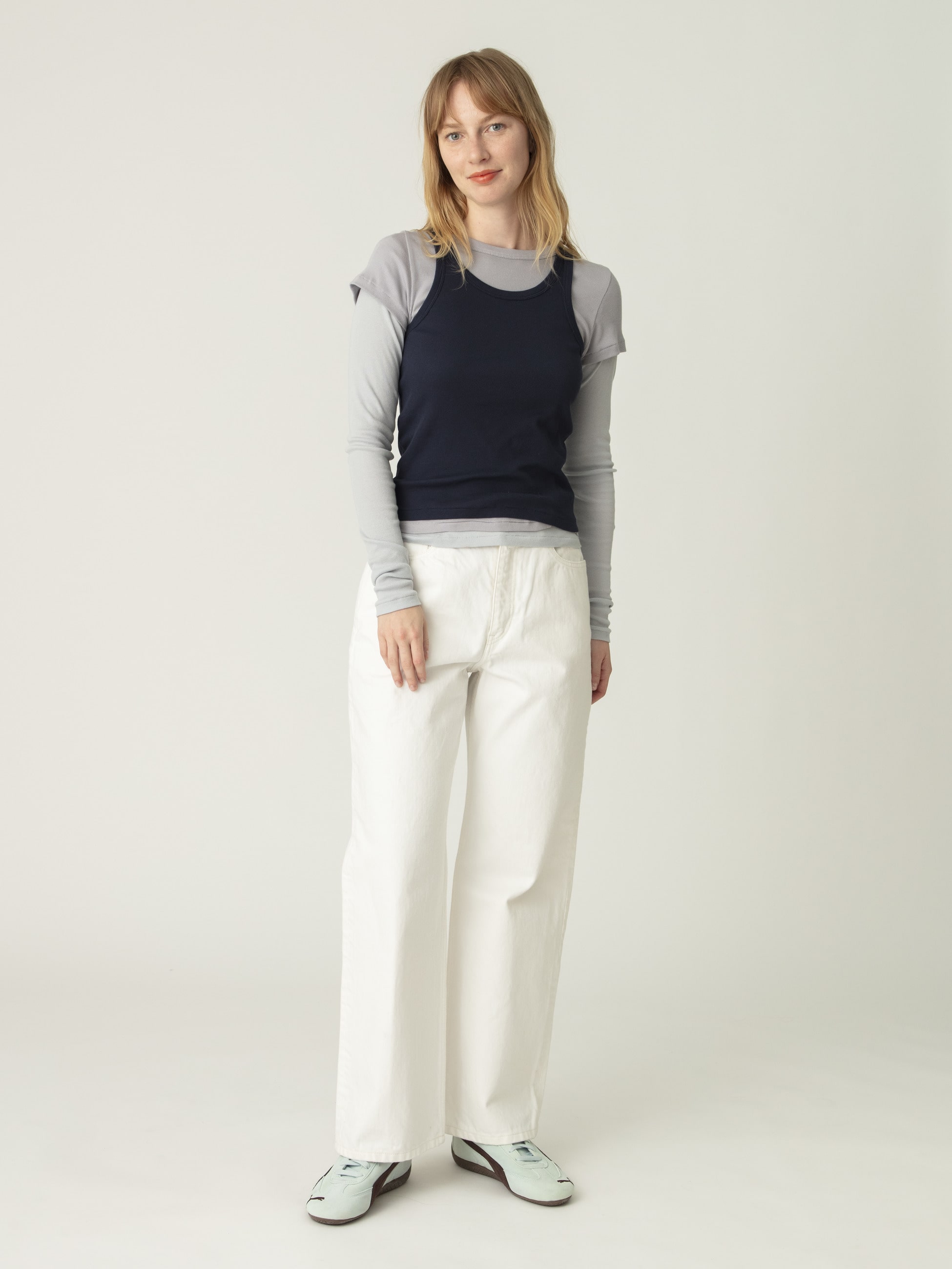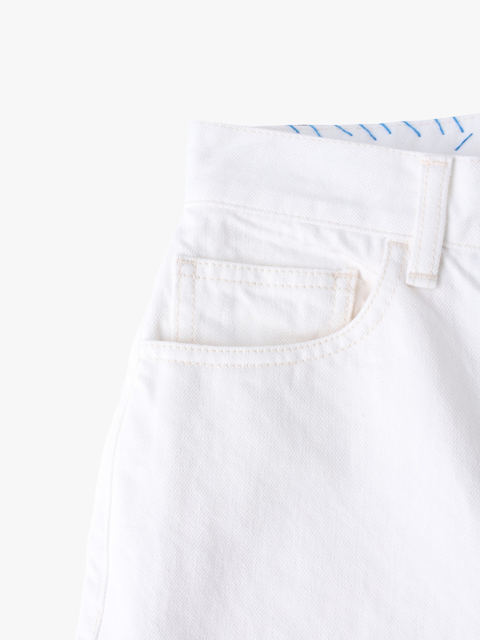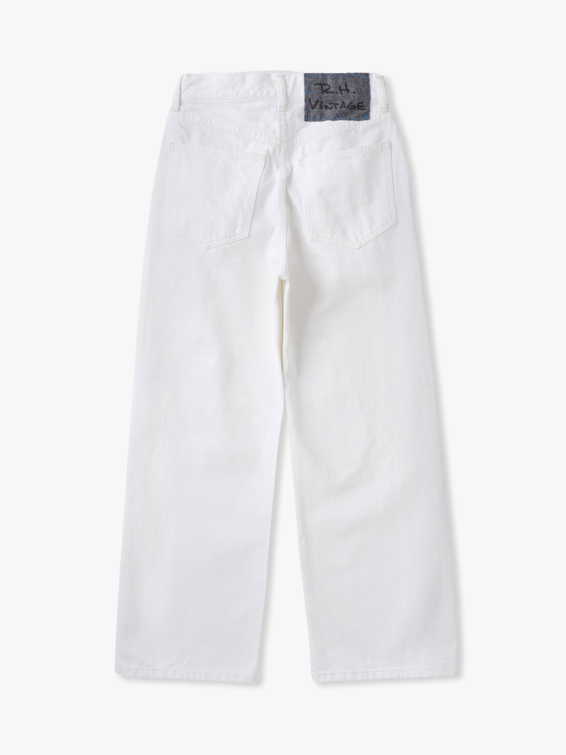 RH VintageからRHC ロンハーマン限定のデニムパンツが新登場。オーガニックコットンのカツラギを、製品染めと丁寧な柔軟仕上げで仕立てました。ハッピーでカラフルな色づかいは、装いそのものが気分を高めてくれます。シルエットは、生地のたまりを股上にほのかに残しつつ、現代的な美しさが出るよう細やかに補正。動きに合わせて立体的に表情が生まれる、こだわりのフィットです。脚のラインを綺麗に見せてくれるバランスに仕上げています。