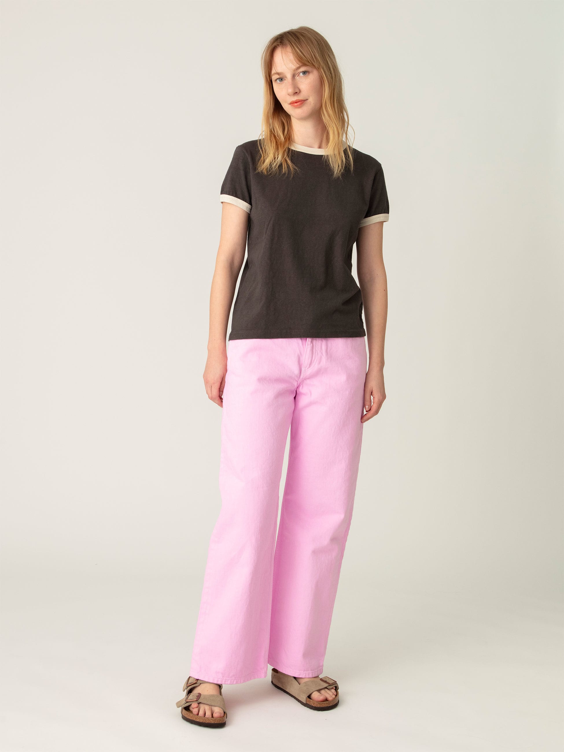 RH VintageからRHC ロンハーマン限定のデニムパンツが新登場。オーガニックコットンのカツラギを、製品染めと丁寧な柔軟仕上げで仕立てました。ハッピーでカラフルな色づかいは、装いそのものが気分を高めてくれます。シルエットは、生地のたまりを股上にほのかに残しつつ、現代的な美しさが出るよう細やかに補正。動きに合わせて立体的に表情が生まれる、こだわりのフィットです。脚のラインを綺麗に見せてくれるバランスに仕上げています。