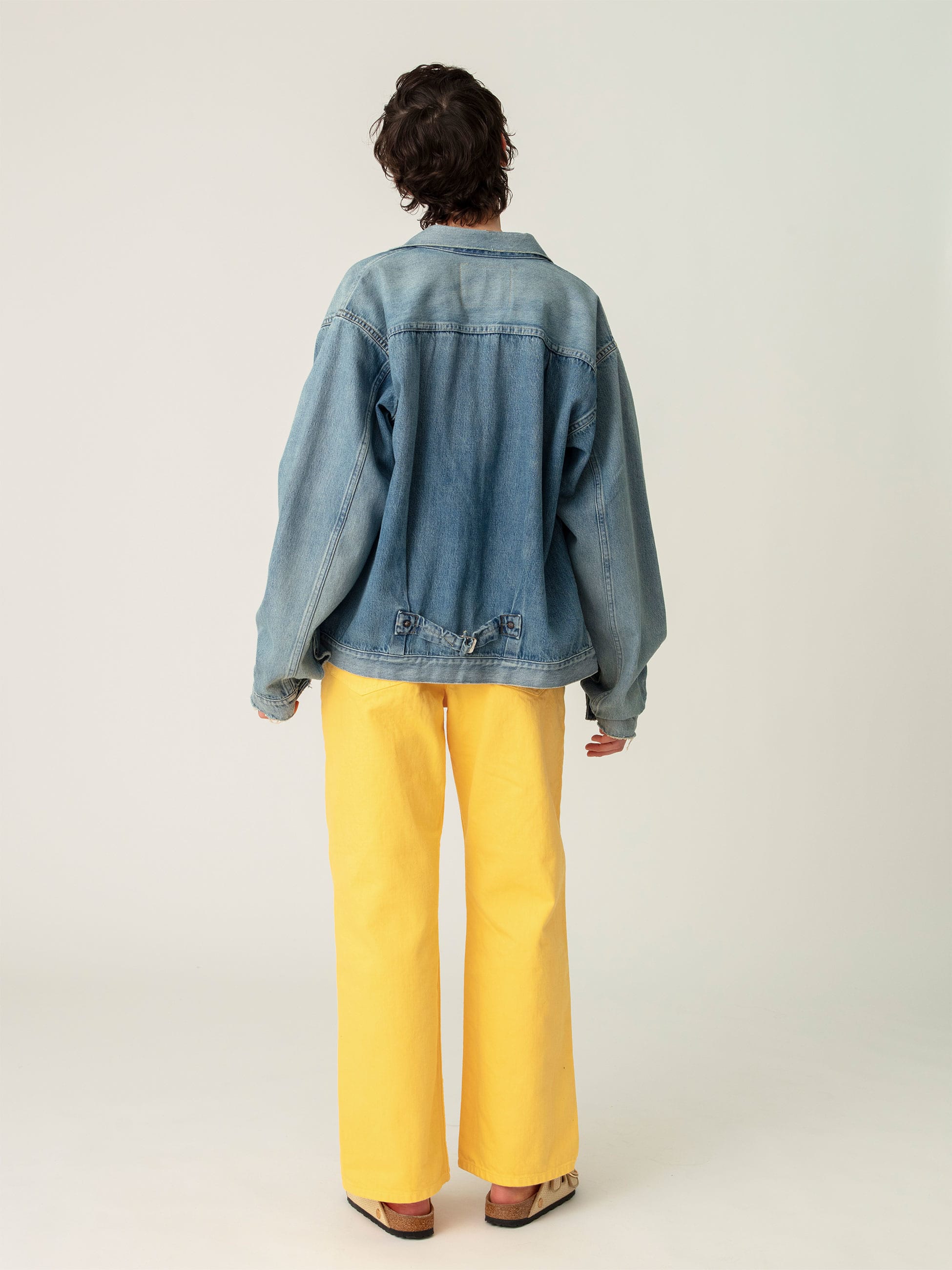 RH VintageからRHC ロンハーマン限定のデニムパンツが新登場。オーガニックコットンのカツラギを、製品染めと丁寧な柔軟仕上げで仕立てました。ハッピーでカラフルな色づかいは、装いそのものが気分を高めてくれます。シルエットは、生地のたまりを股上にほのかに残しつつ、現代的な美しさが出るよう細やかに補正。動きに合わせて立体的に表情が生まれる、こだわりのフィットです。脚のラインを綺麗に見せてくれるバランスに仕上げています。