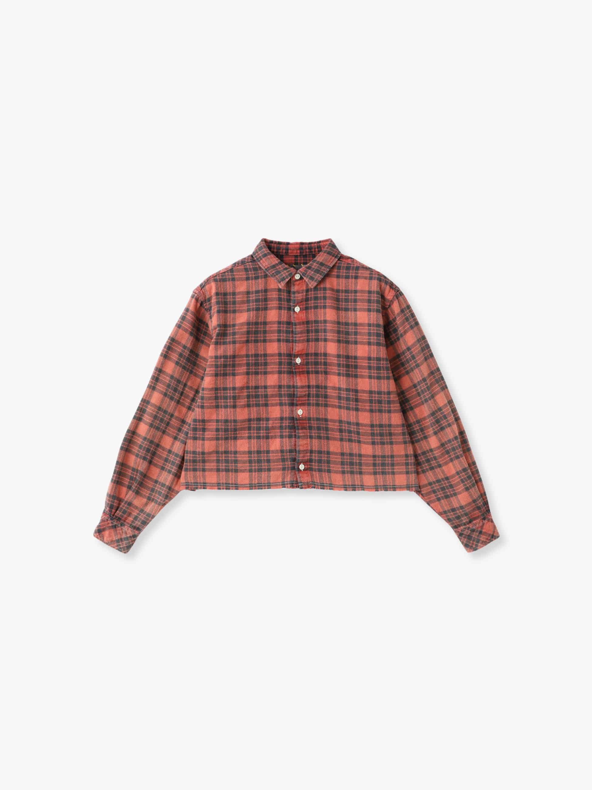 フランネルのチェックシャツは、あえてフェード加工を施すことで、経年の風合いを表現しています。ショート丈が軽やかで、ハイウエストのボトムともバランス良く着ていただけます。カラフルな3色展開で、腰に巻くなどのアレンジで、コーディネートのアクセントとしても活躍します。