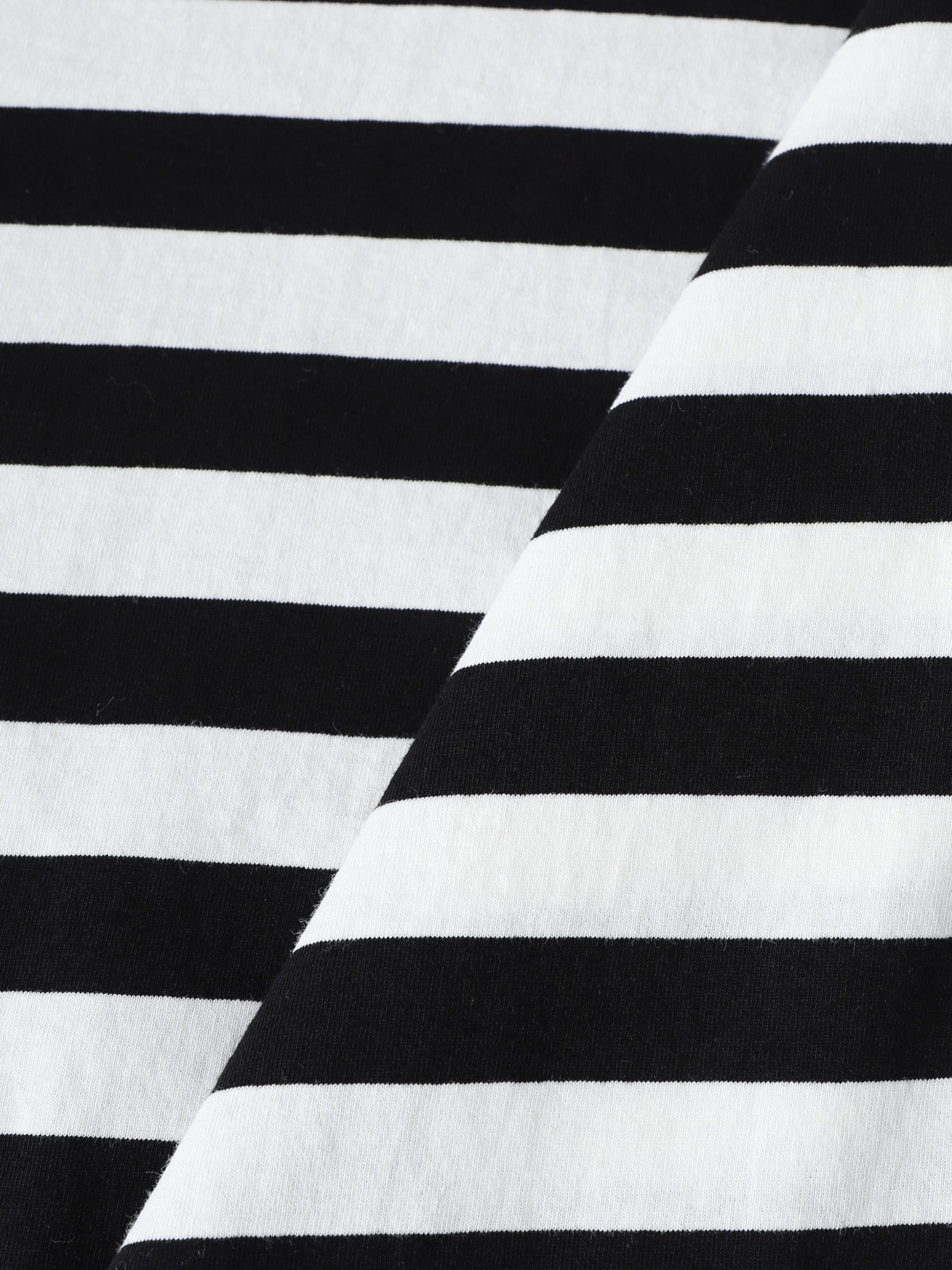 - オーガニックコットンを100%使用した天竺素材のロングスリーブティーは、太めのピッチが目を惹くボーダー柄で、1枚でも着映えするのはもちろん、ジャケットなど羽織のインナーとしても活躍する、万能アイテムです。バックスタイルの切り替えデザインがユニークなアクセントです。