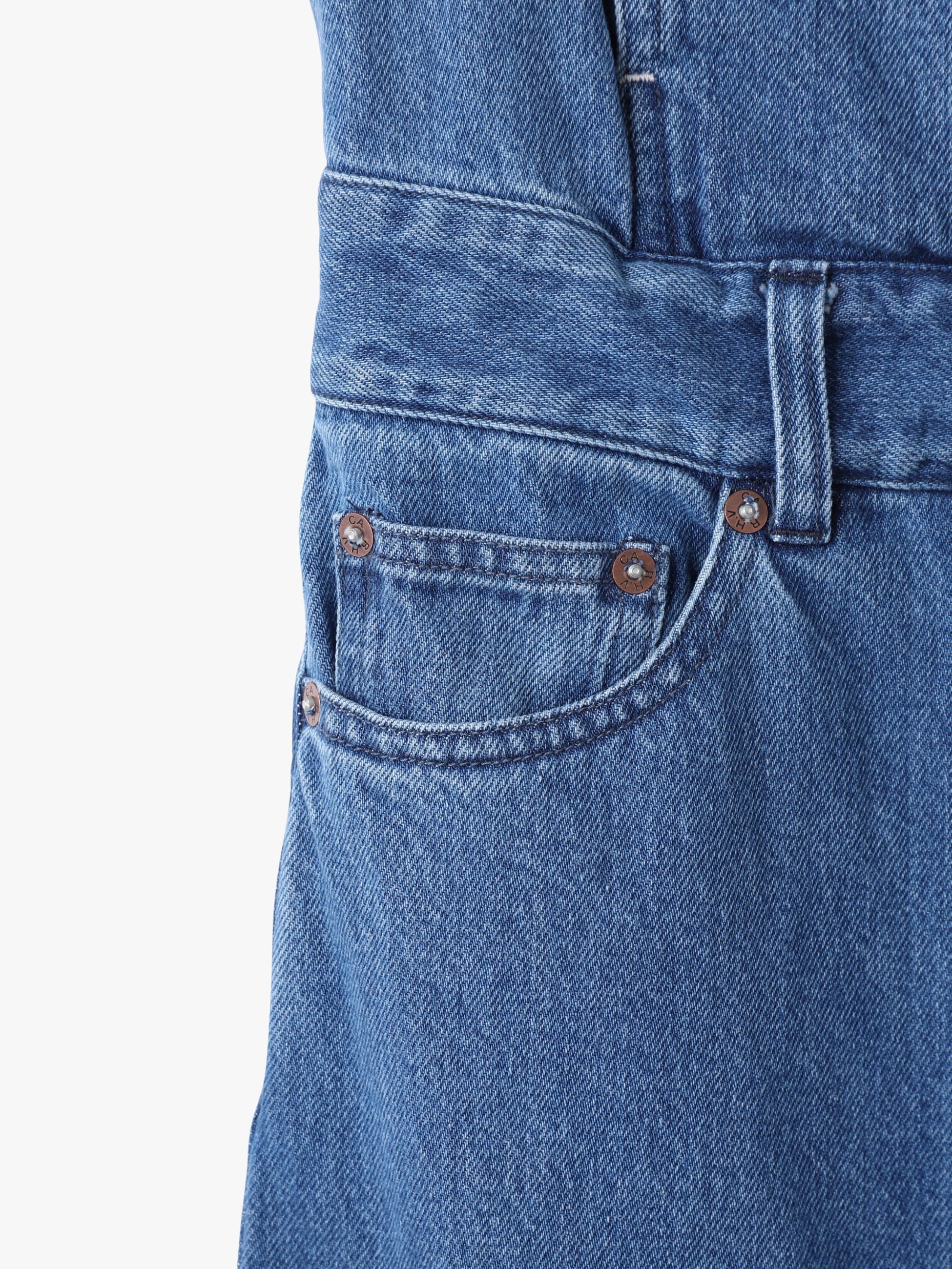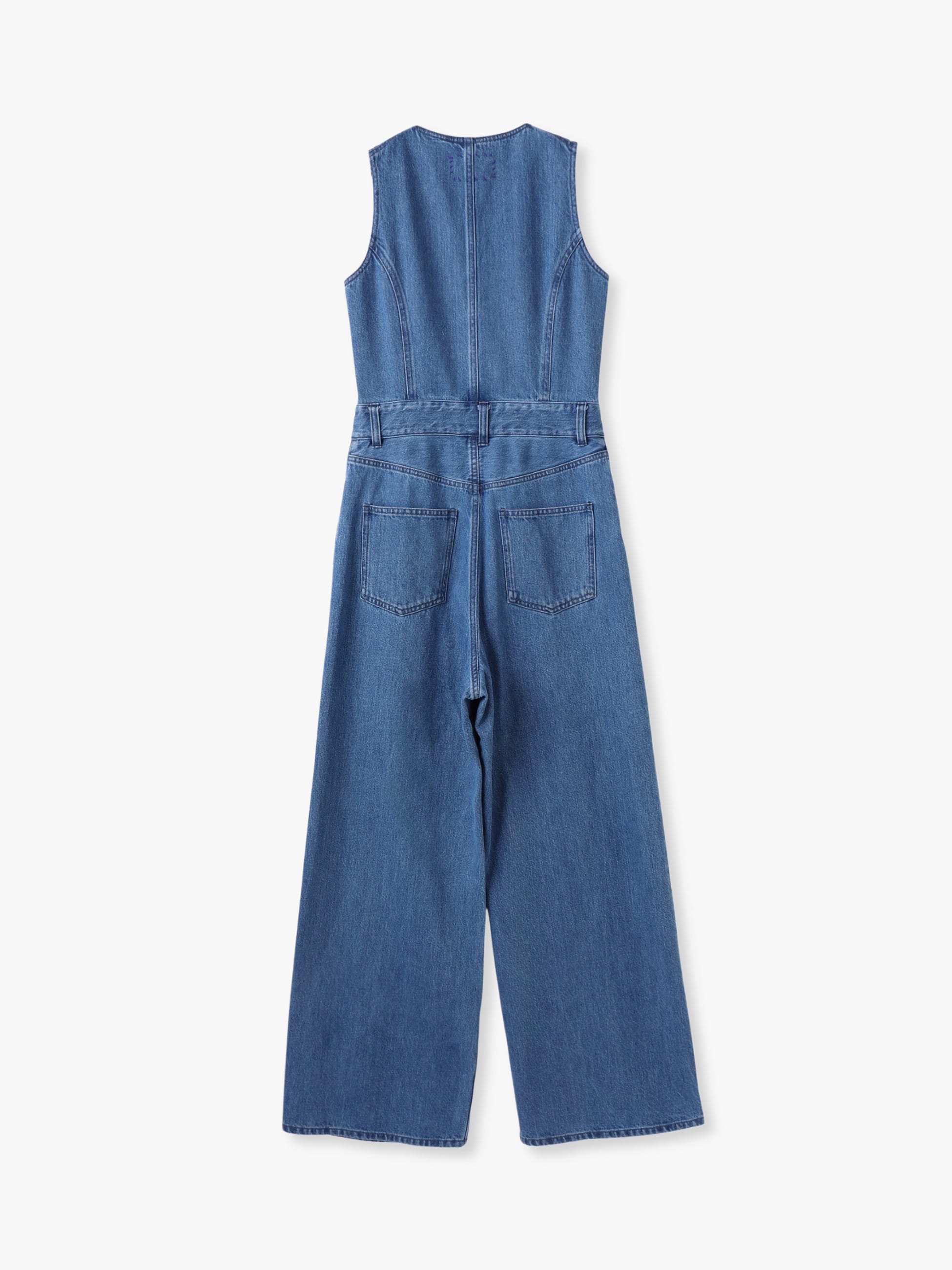- オーガニックコットンを使用したデニムオールインワンは、胸元やアームホールから下着が響きにくいようパターンにこだわり、1枚で着てもスタイリングが決まります。Vネックラインがデコルテ周りを上品に演出し、カットソーや薄手のニットなどをインナーに合わせたレイヤードスタイルも素敵です。季節を問わず様々なスタイリングをお楽しみいただけます。