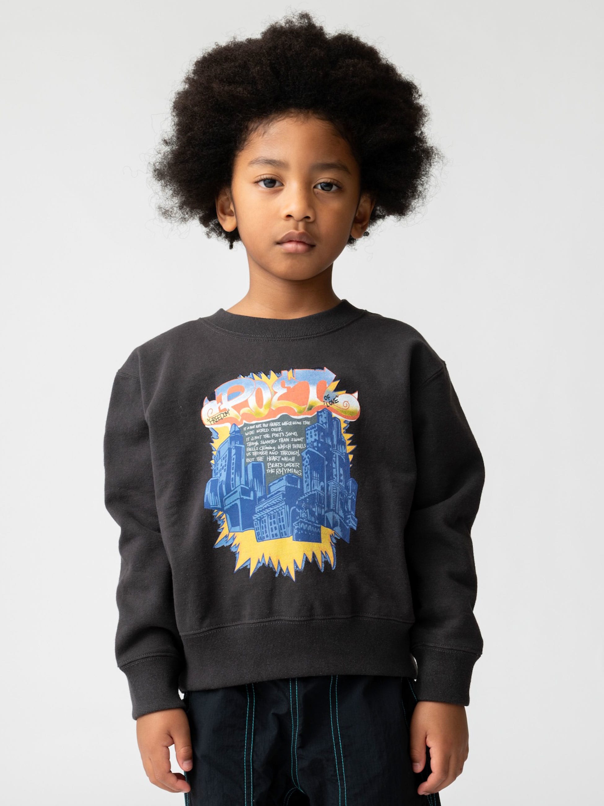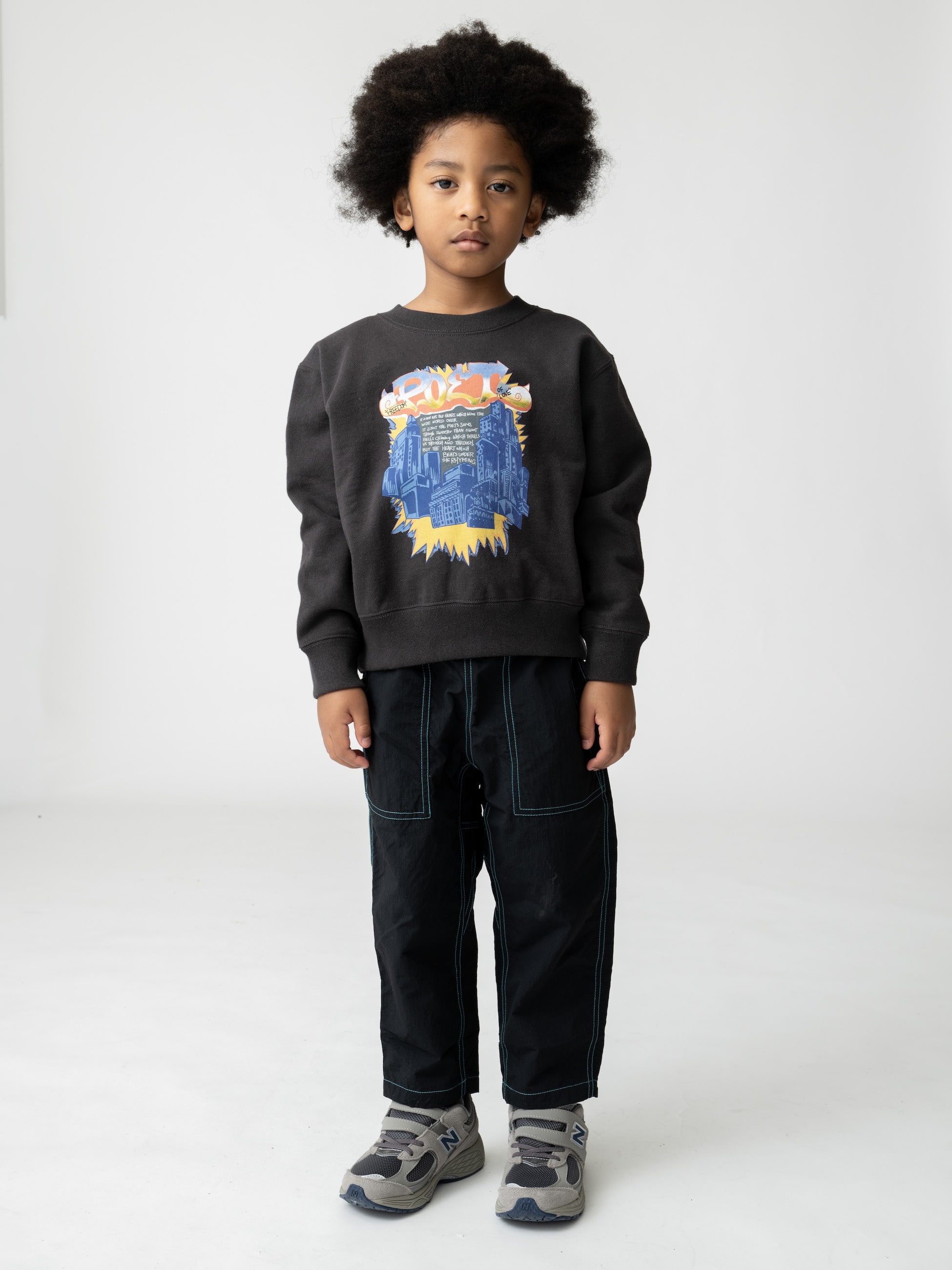 90年代のスケートカルチャーからインスパイアを受け、グラフィックを施したスウェットシャツは一枚で映えるアイテムです。シンプルなボトムスとも好相性で、裏起毛のため暖かく寒い季節も安心です。