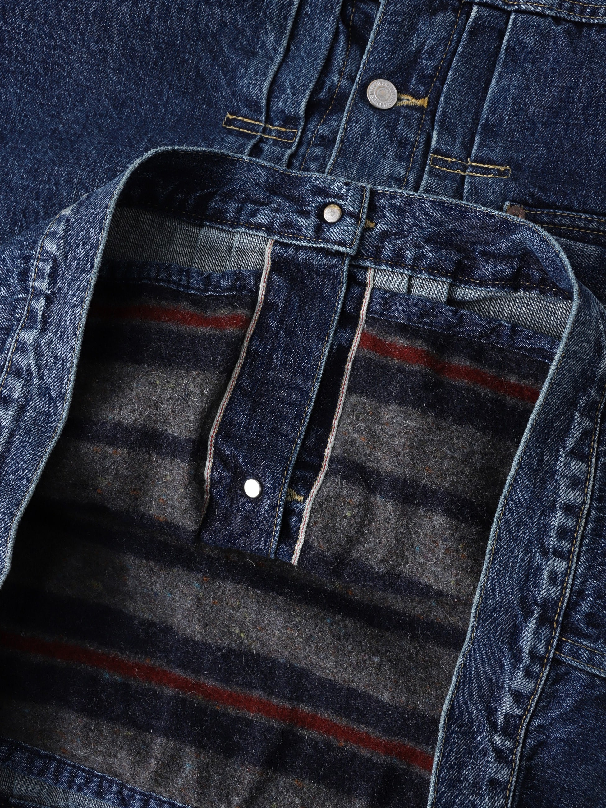 - オリジナルで製作されたデニム生地を使用したデニムジャケット。1stモデルをベースにしたクラシカルなディテールと裏地にブランケット素材を配した優れた保温性が特徴です。また、コスリやアタリ加工を施した、ヴィンテージのような風合いも魅力のひとつ。程よくゆったりとしたフィットは、様々なコーディネートに合わせやすく、汎用性の高い一着です。