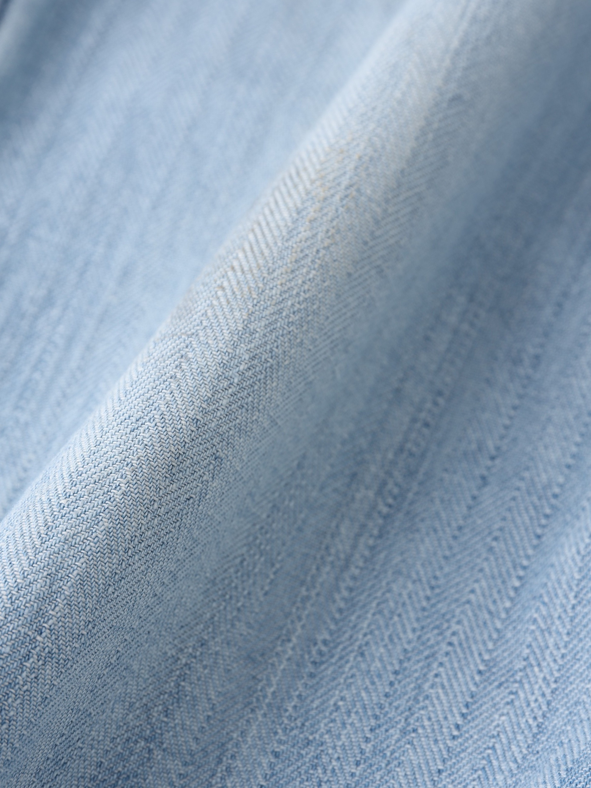 - 右綾と左綾が交互に織られたヘリンボーンデニム生地を使用したペインターパンツ。生地本来の耐久性としなやかな生地感に加え、通常のデニムに比べて褪色しにくく、長く色味を楽しめる生地が特徴です。また、アタリとコスリは、色のコントラストを抑えた、さわやかなカラーリングに仕上げています。ライトオンスの生地感とゆったりとしたフィットは、様々な時季で活躍する一着です。