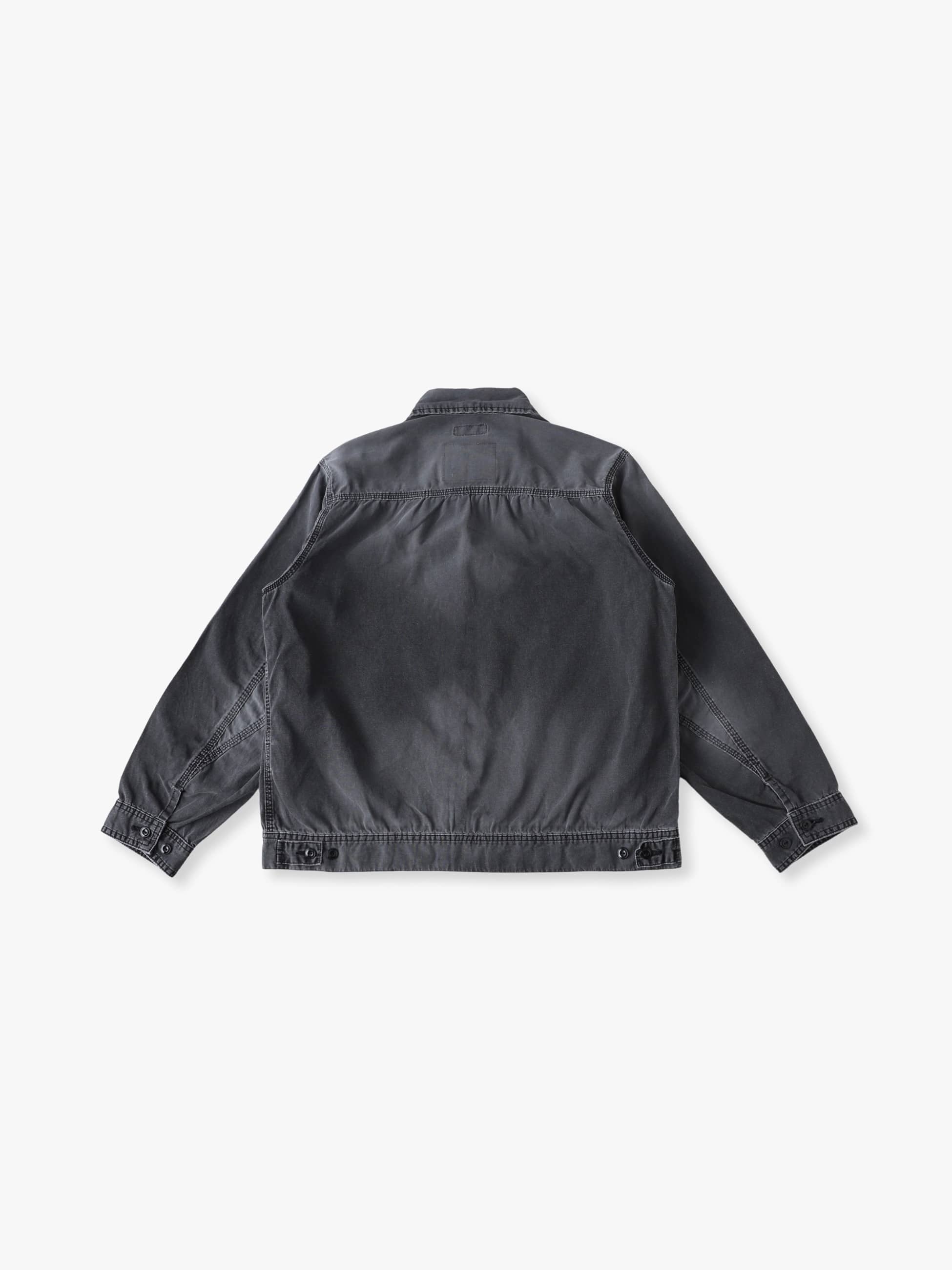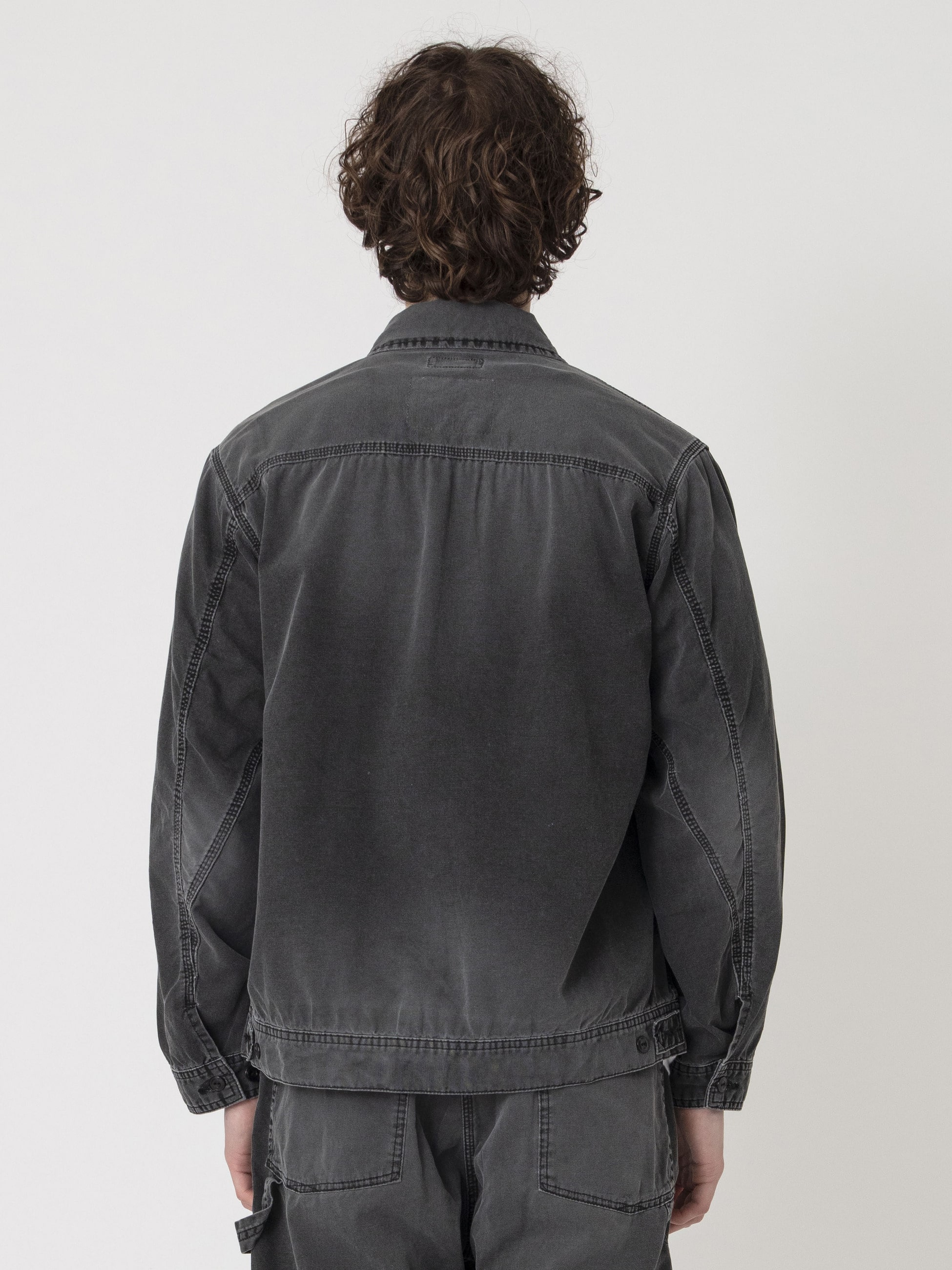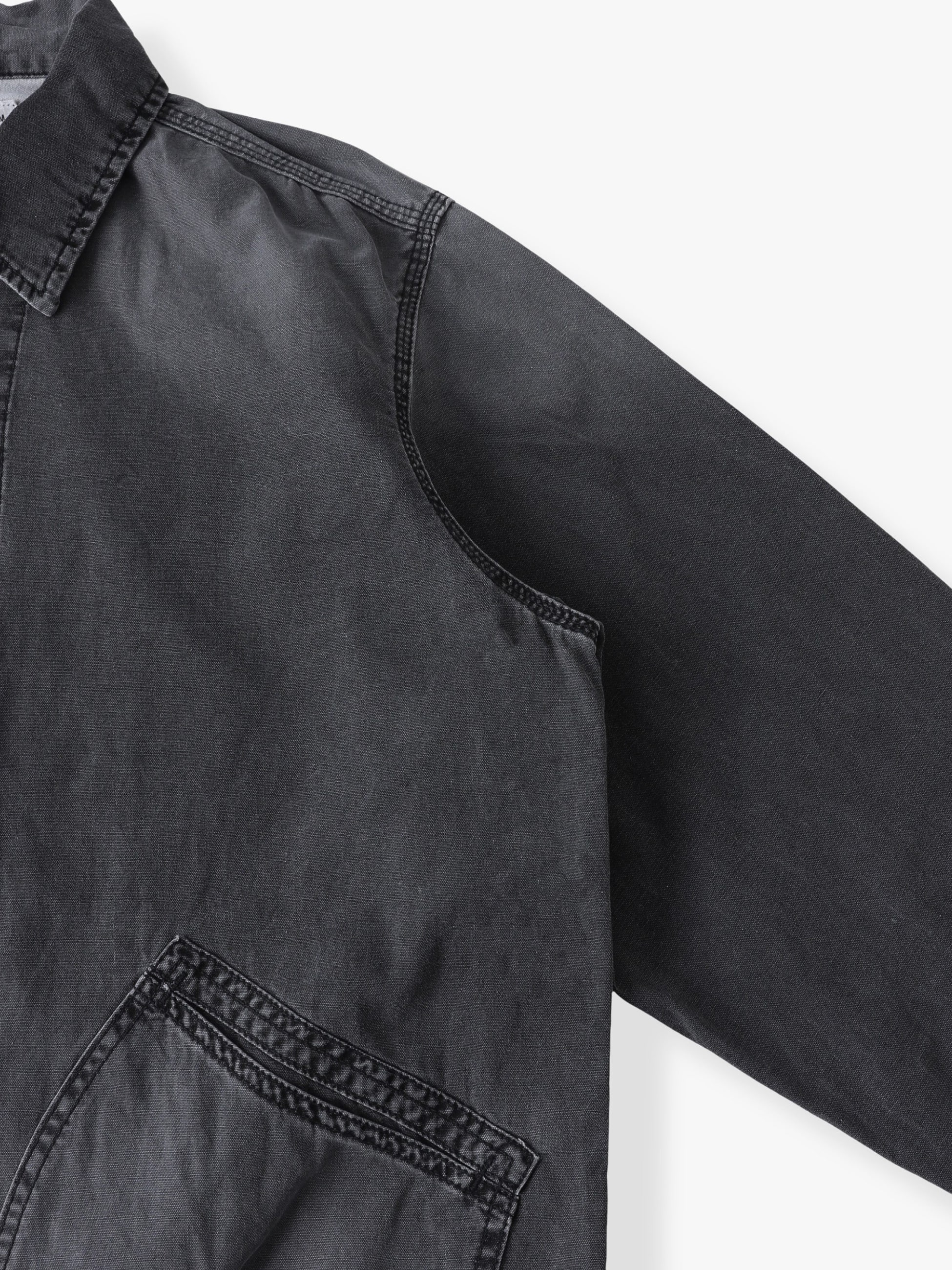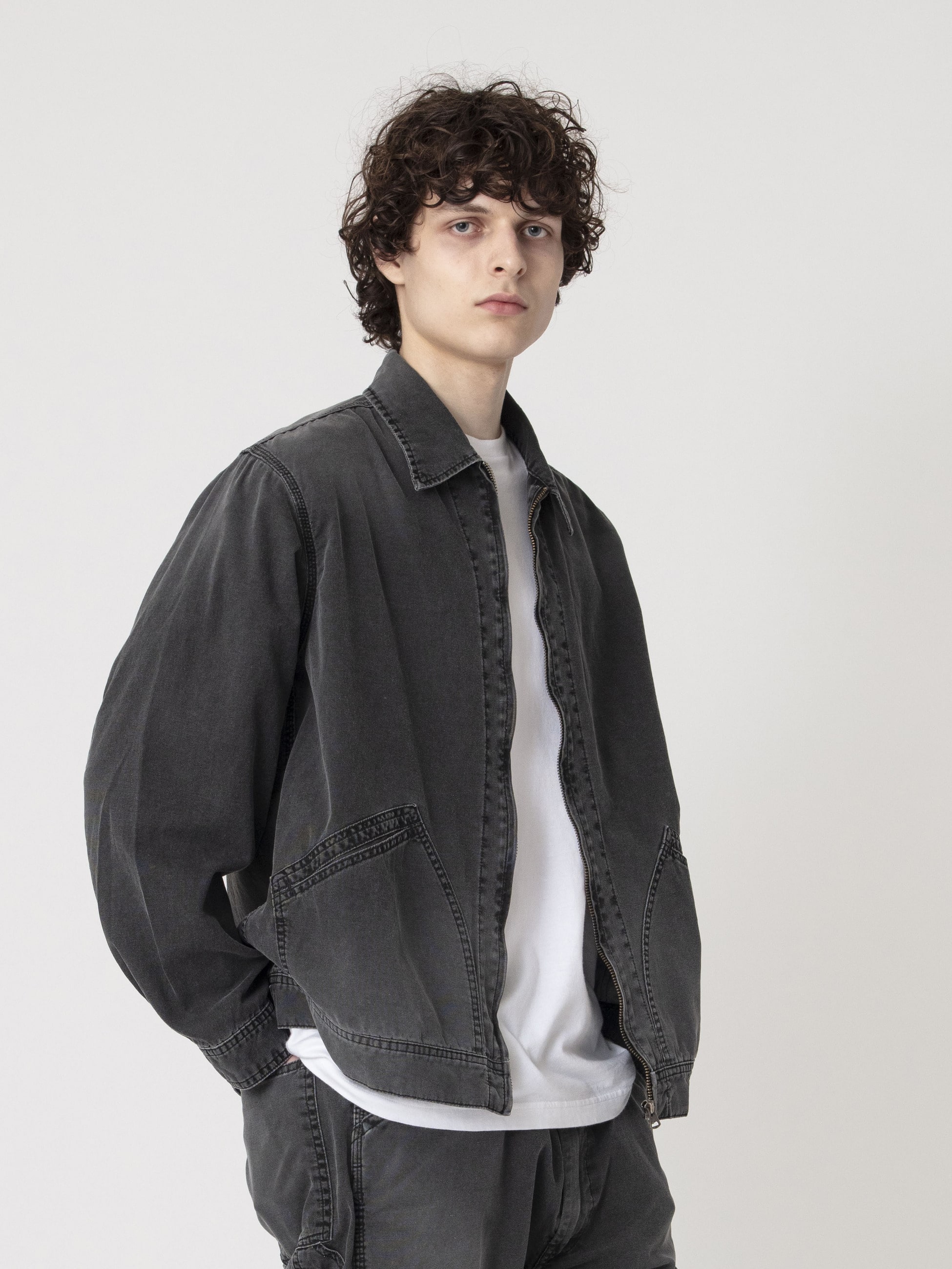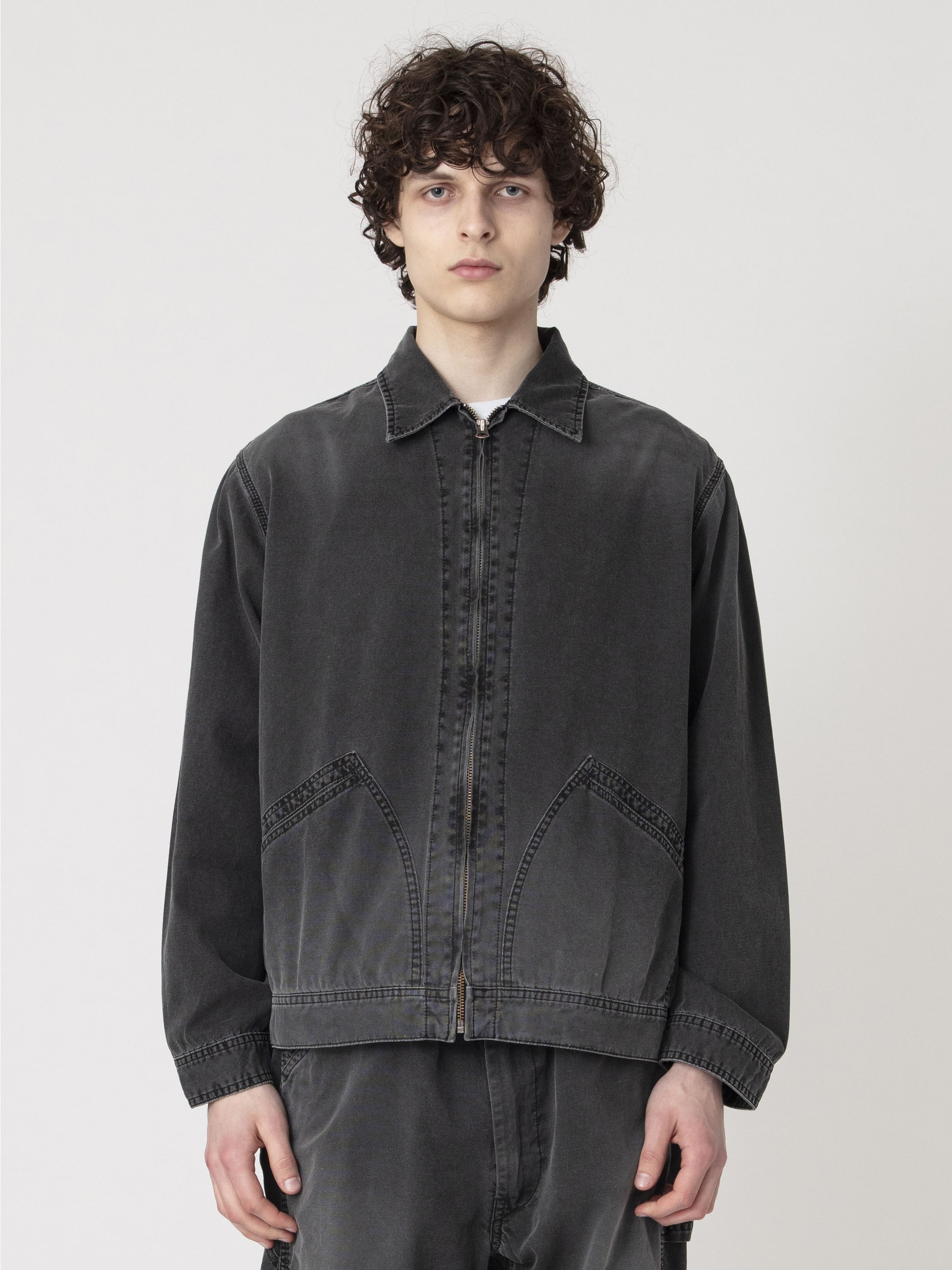- ライトウェイトなダック生地を使用したブルゾンは、ブラックカラーのピグメントダイ加工を施したフェードしたカラーリングが特徴です。また、ウォッシュ加工や適度にコスリ加工を施したヴィンテージのような表情もポイント。軽やかな着心地と程よくゆったりとしたフィットは、様々な時季で活躍する一着です。