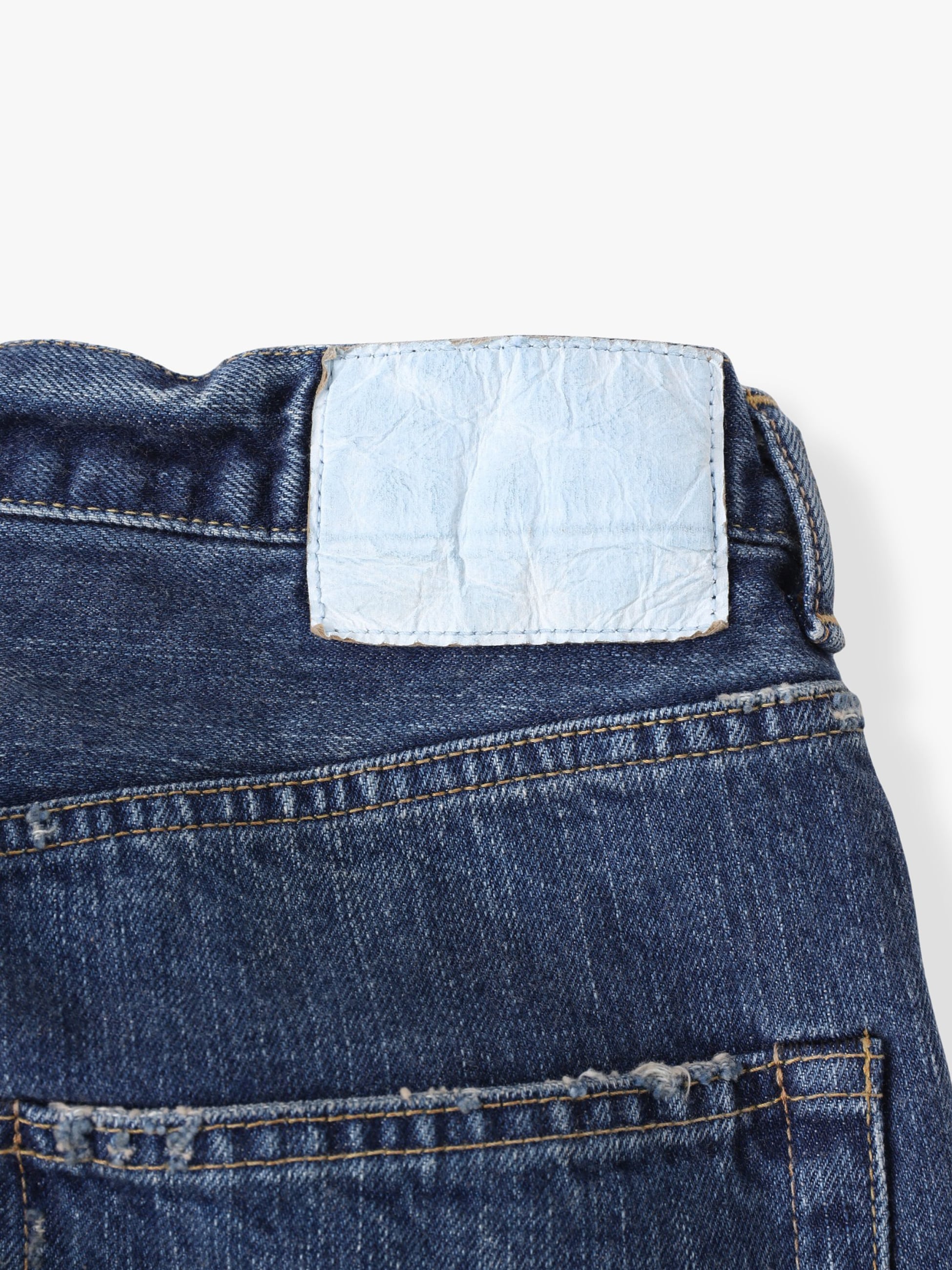 13オンスのデニム生地を使用したストレートフィットデニムパンツ。スキューと呼ばれる斜行防止加工を程よく施した捻じれのある表情や穿き心地の良さが特徴です。また、ムラ感のある経糸を使用し、ラギッドな加工感を際立たせています。様々な時季で活躍する生地感と程よくゆとりのあるストレートフィットは、汎用性の高い一着です。