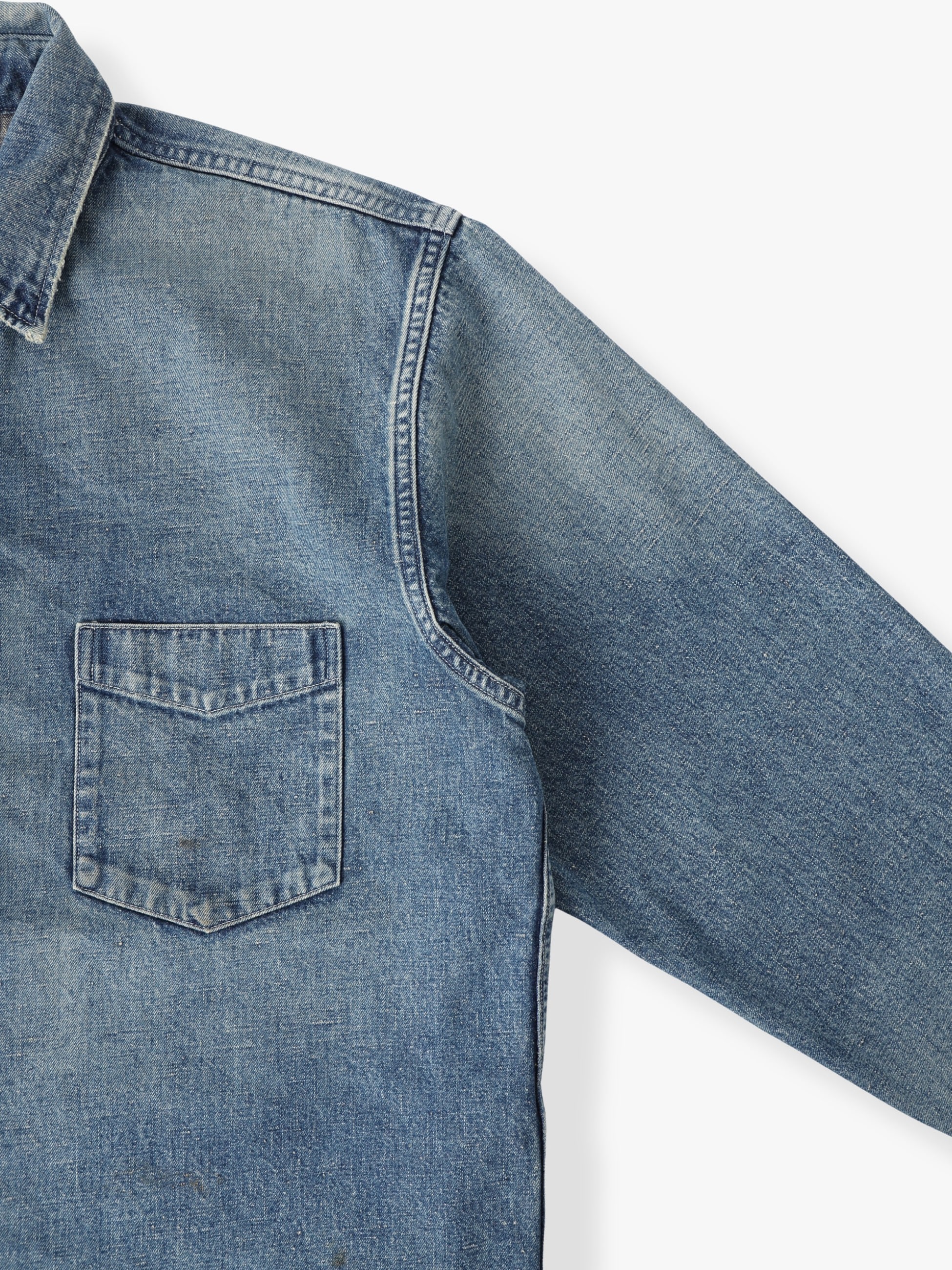 - 8オンスのデニム生地を使用したシャツは、あたりの付きづらい細部まで施したダート加工によるヴィンテージのような風合いが特徴です。また、優れた耐久性と経年変化を楽しめる生地も魅力のひとつ。程よく肉感のある生地とゆったりとしたフィットは、様々な時季で活躍する一着です。