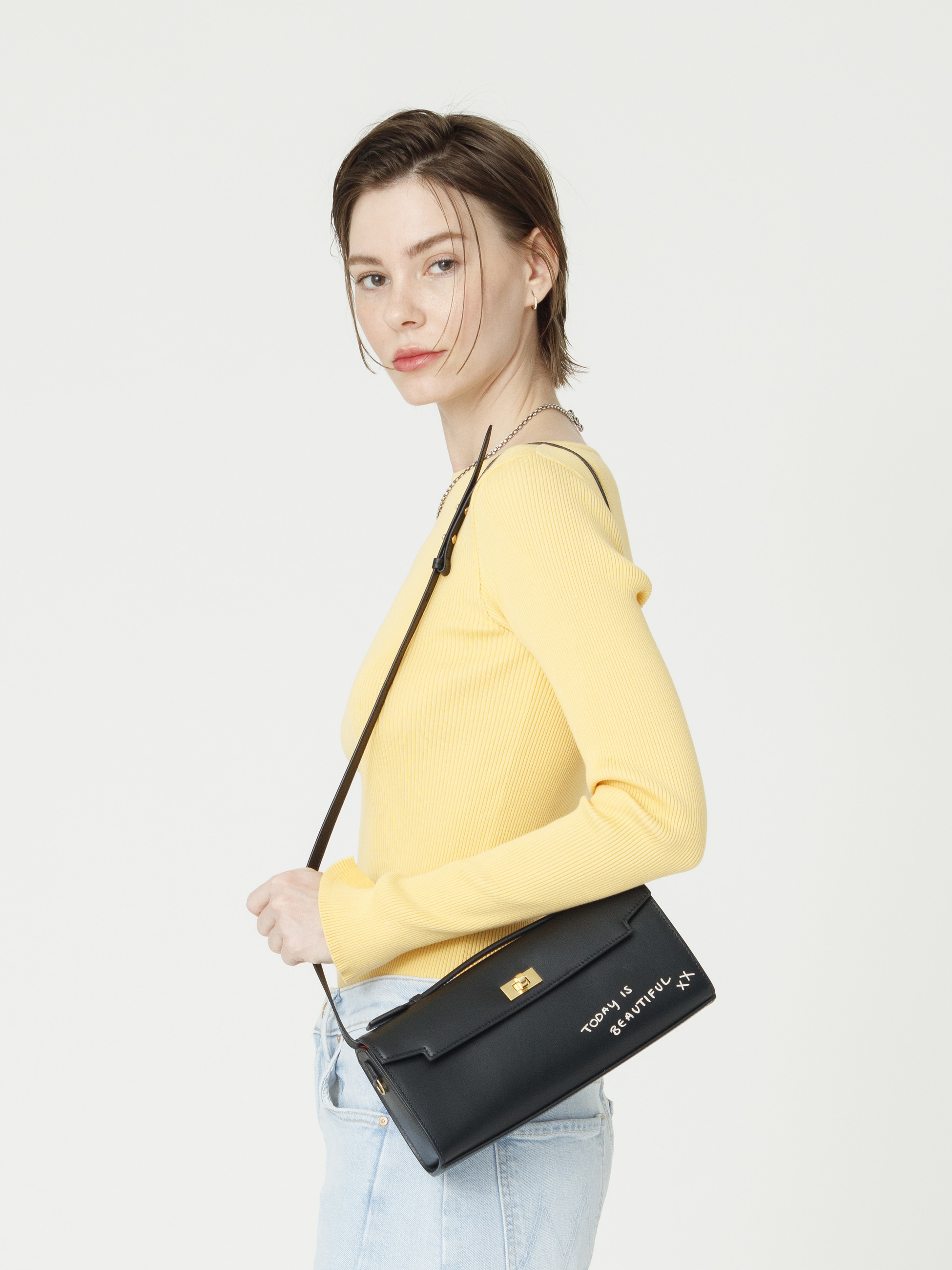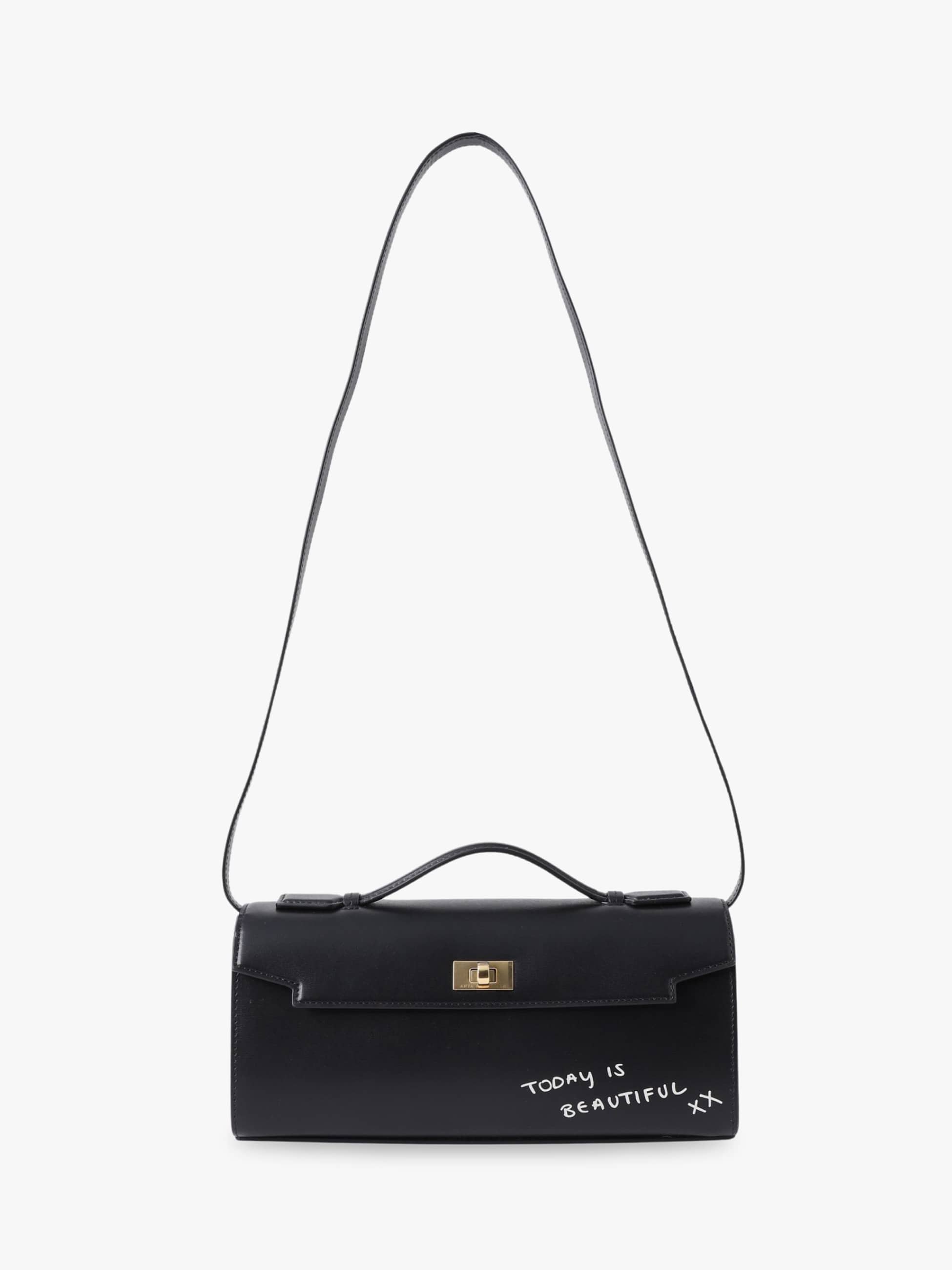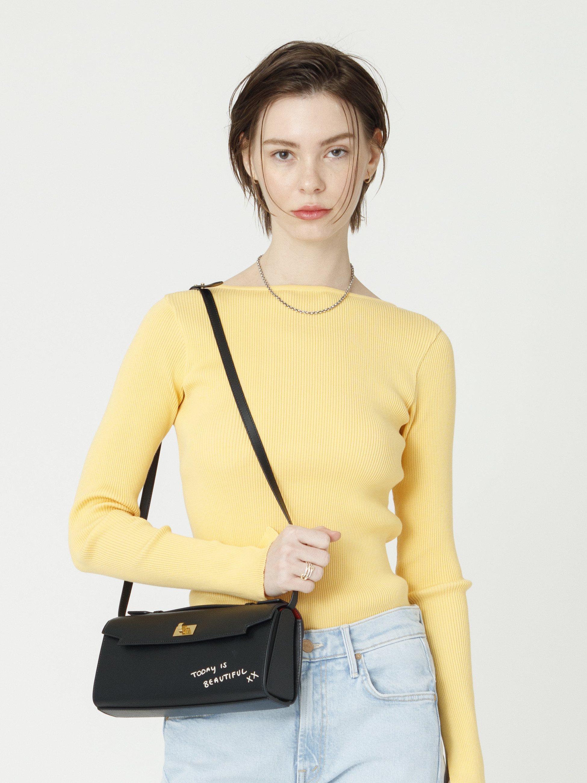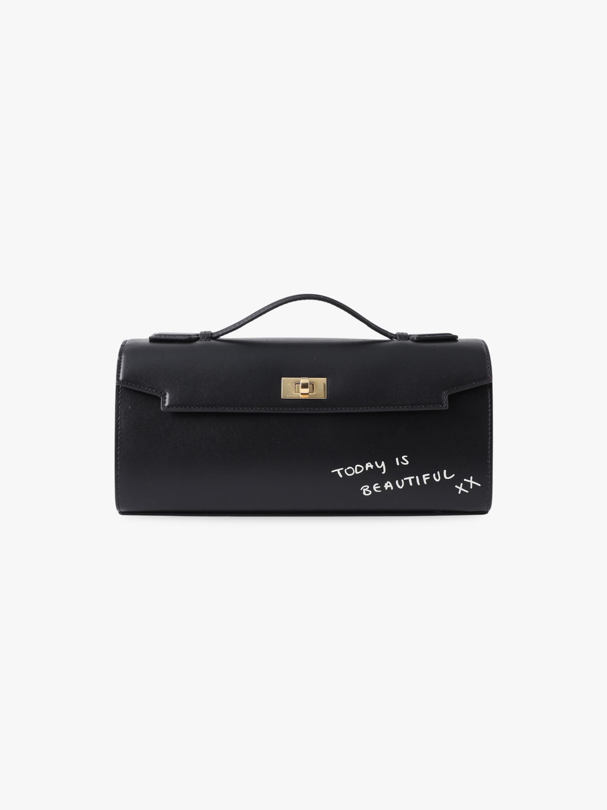 モティマーシリーズの新作「Mortimer Clutch」より、ロンハーマンが大切にしている言葉のひとつ、“TODAY IS BEAUTIFUL(今日が素晴らしい一日でありますように)” のメッセージを添えたスペシャルな別注モデルが登場です。手書きのような温もりある字体で表現されたメッセージは、“いつでも前向きな気持ちになれますように”という想いを込めています。スマートなサイズ感ながらも、スマートフォンが収まるポケットやリップスティック用のコンパートメント、さらに「Mirror」と刻印された鏡用ポケットには、ゴールドトーンに輝くミラーも備えられています。トップハンドルでクラッチとして、また付属のストラップで肩から掛けてと、2WAYでお使いいただけます。他にはない特別なアイテムを是非お楽しみください。カラー違いのレッドもございます。