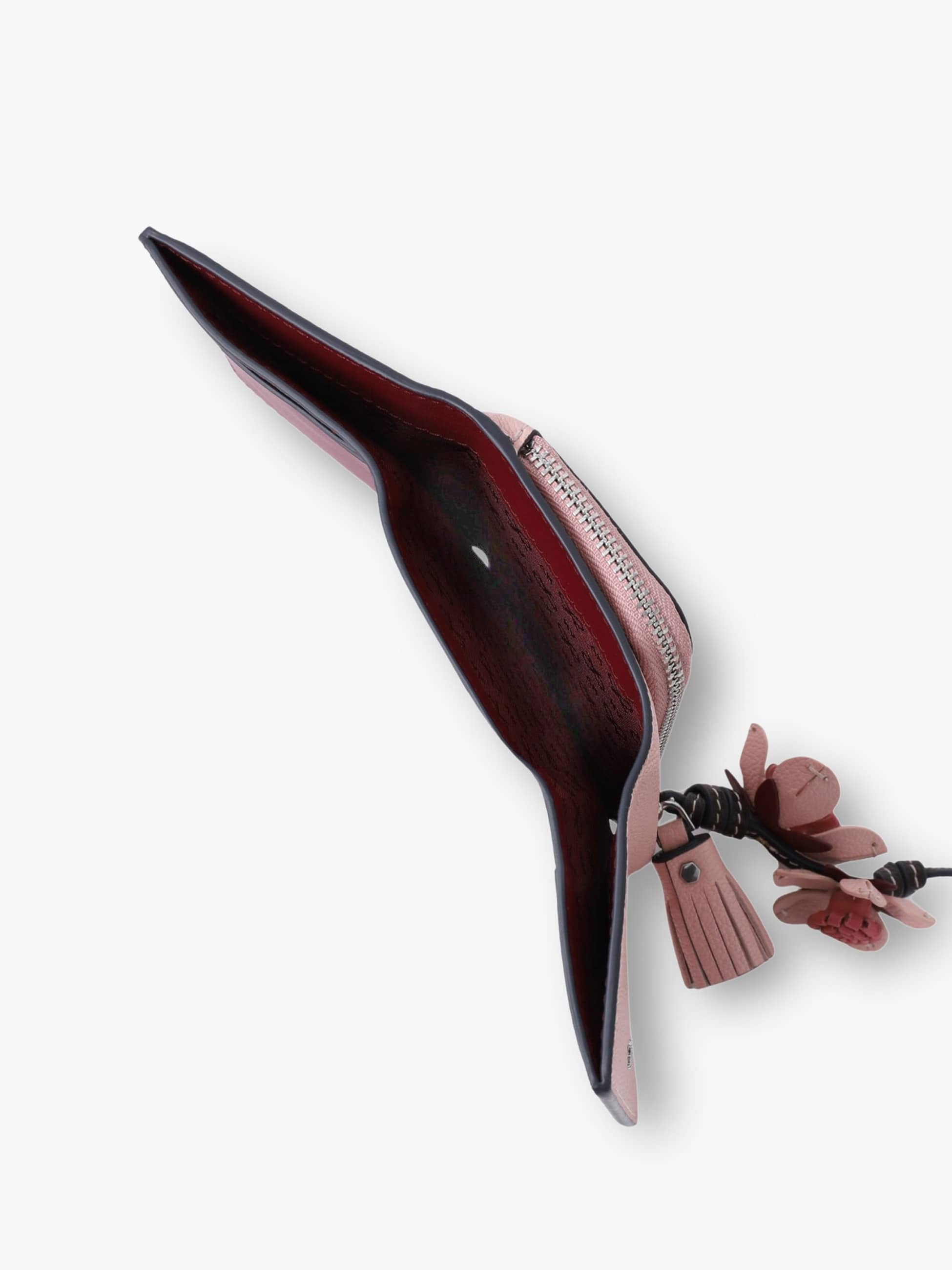 ピンクの美しい色合いに、桜モチーフのチャームを添えた可憐なデザインが華やかな“Sakura”シリーズが、オンラインストア限定で登場です。三つ折りの「Mini Trifold Wallet」は、外側は上品なピンク、内側はボルドーのバイカラーで、開けるたびに心ときめく配色。コンパクトなサイズ感で、小銭、カード、お札もしっかりと収納でき、小さなバッグやポケットに入れて持ち運べるところも嬉しいポイントです。