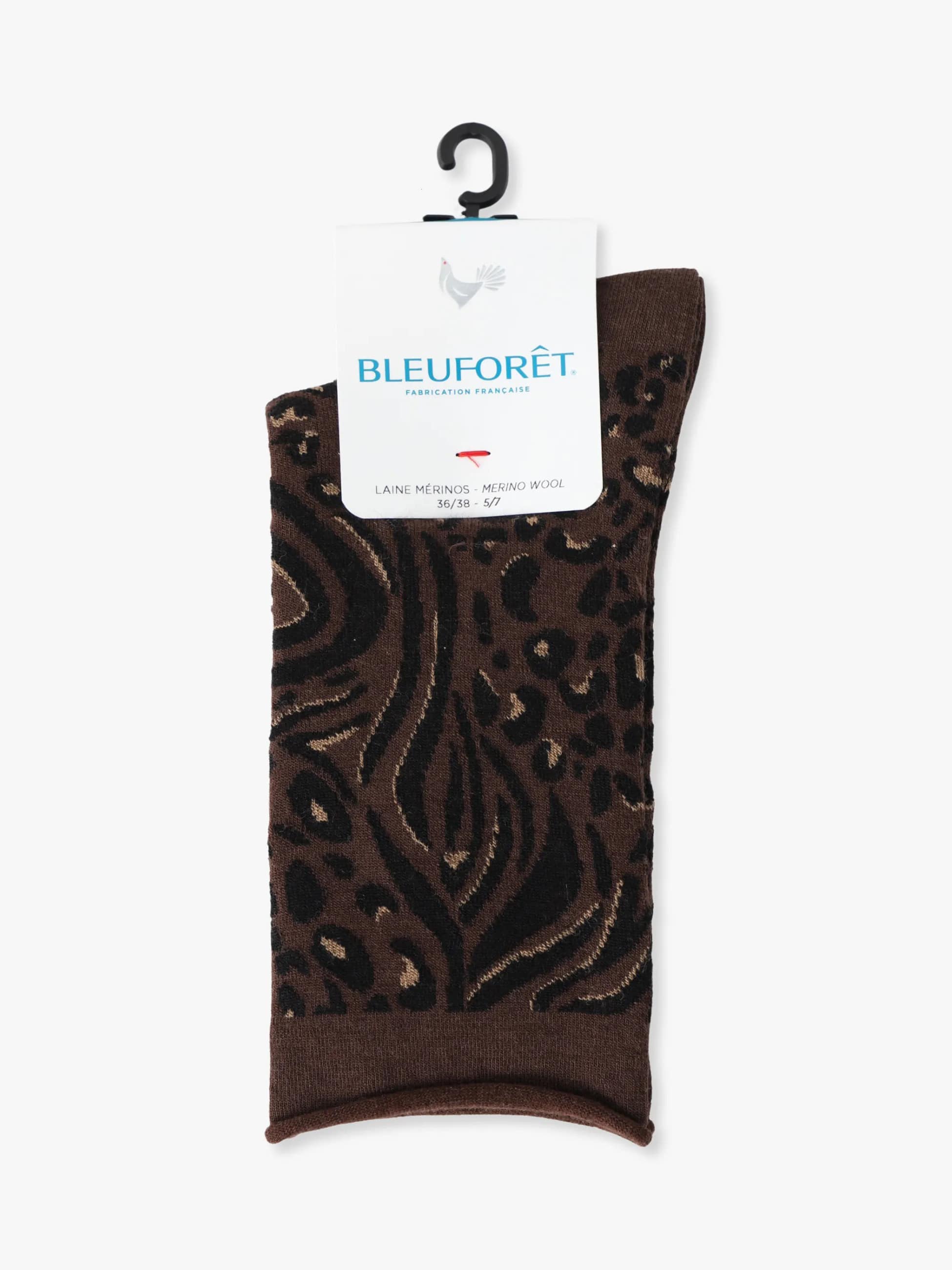 - ウールとコットン素材を使用したレオパード柄のソックスは、コーディネートのアクセントとして、肌寒い日も温かく快適です。ファインウールのなめらかな肌ざわりで、履き心地のよさも魅力的な一足です。その他のBLEU FORETのアイテムもございます。
