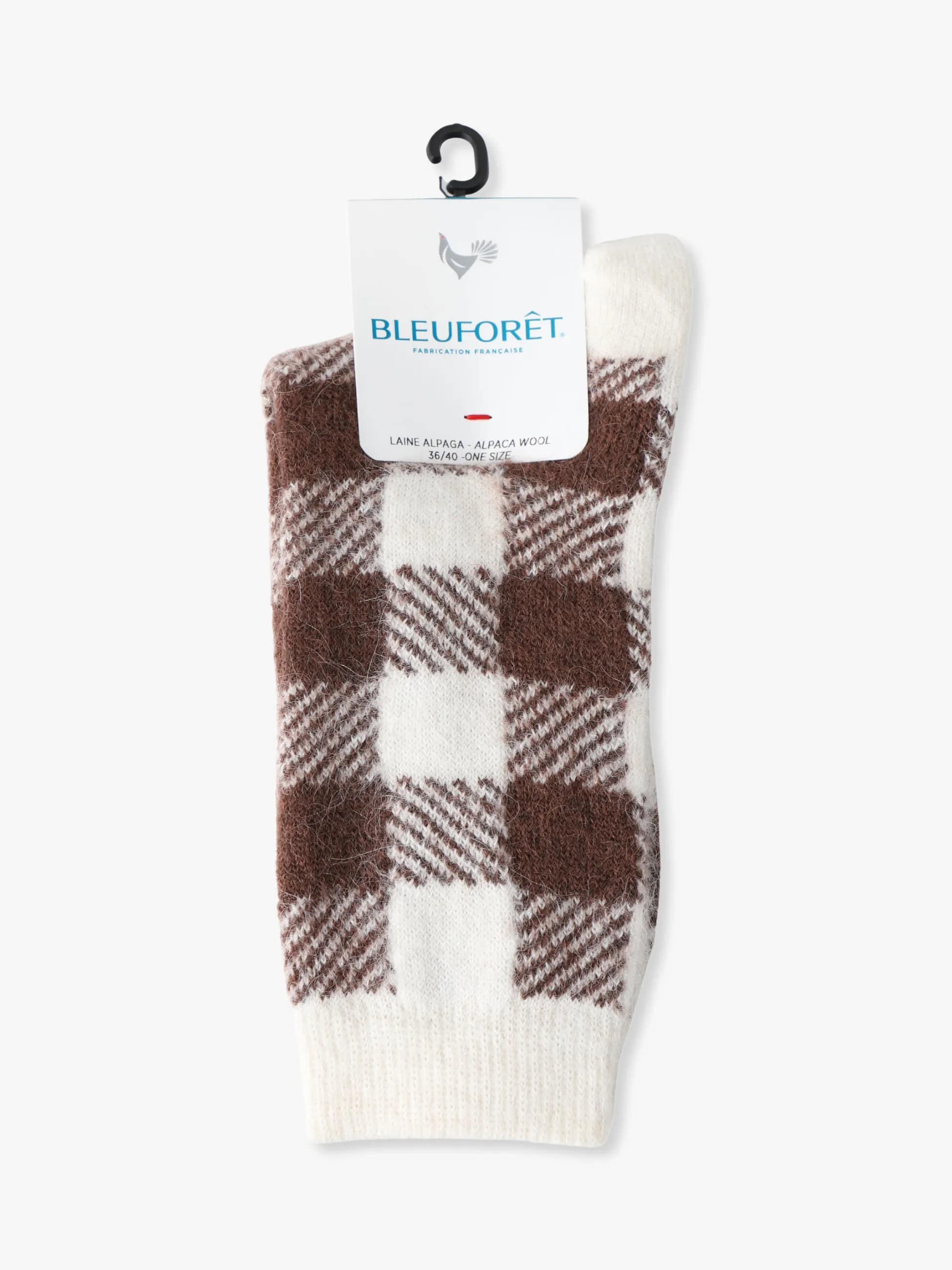 アルパカ混のソックスは、なめらかな肌触りと伸縮性で履き心地が良く、保温性も高いため肌寒い日も温かく快適に過ごせるアイテムです。スタイリングのアクセントになるタータンチェック柄がキャッチーな1足です。その他のBLEU FORETのアイテムもございます。