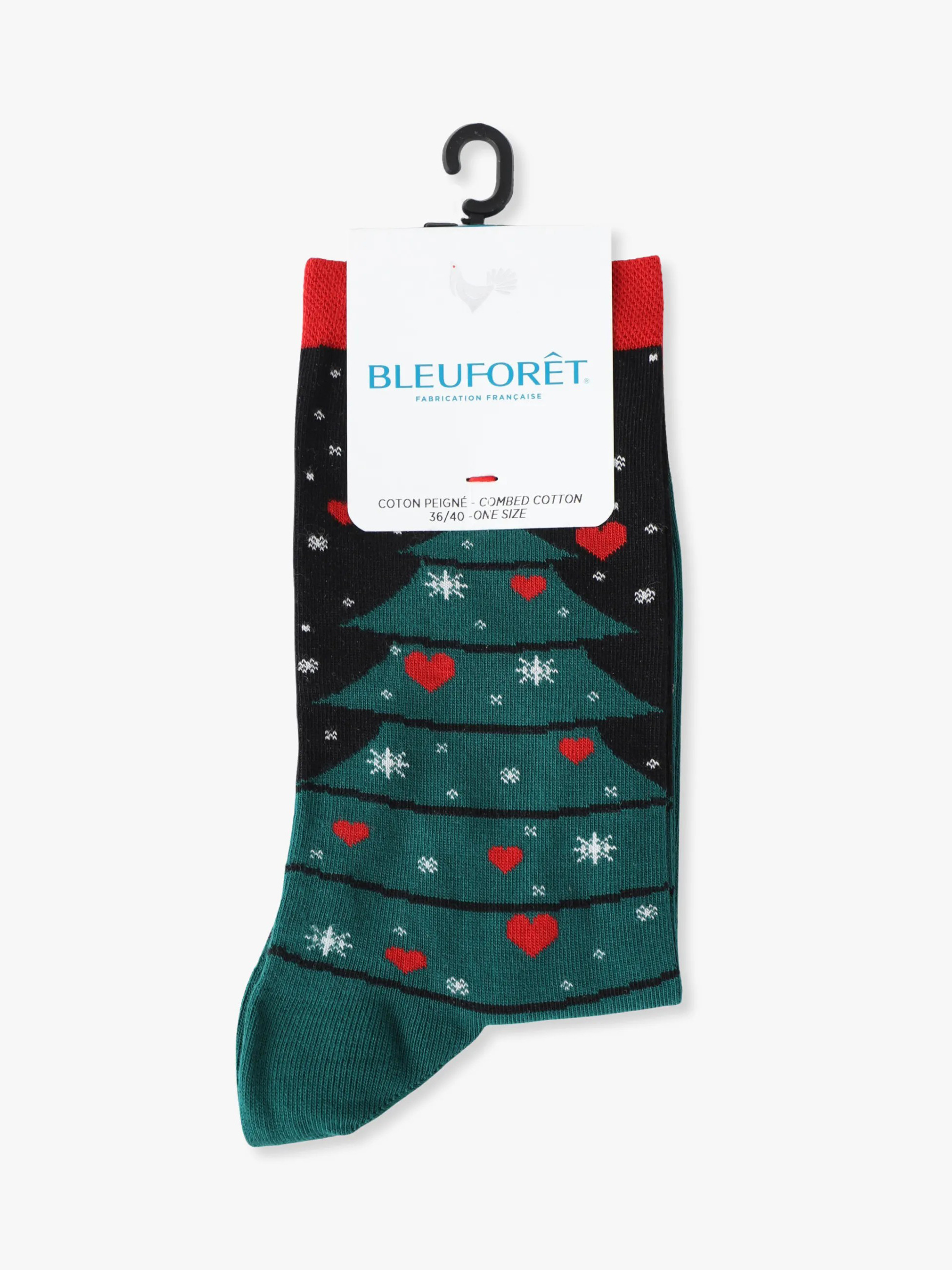 クリスマスツリーモチーフのソックスは、ソフトタッチで履き心地が良く、ユニークなデザインが心をくすぐるアイテムです。パンプスやスニーカーと合わせて、柄をさりげなく見せるスタイリングもおすすめです。