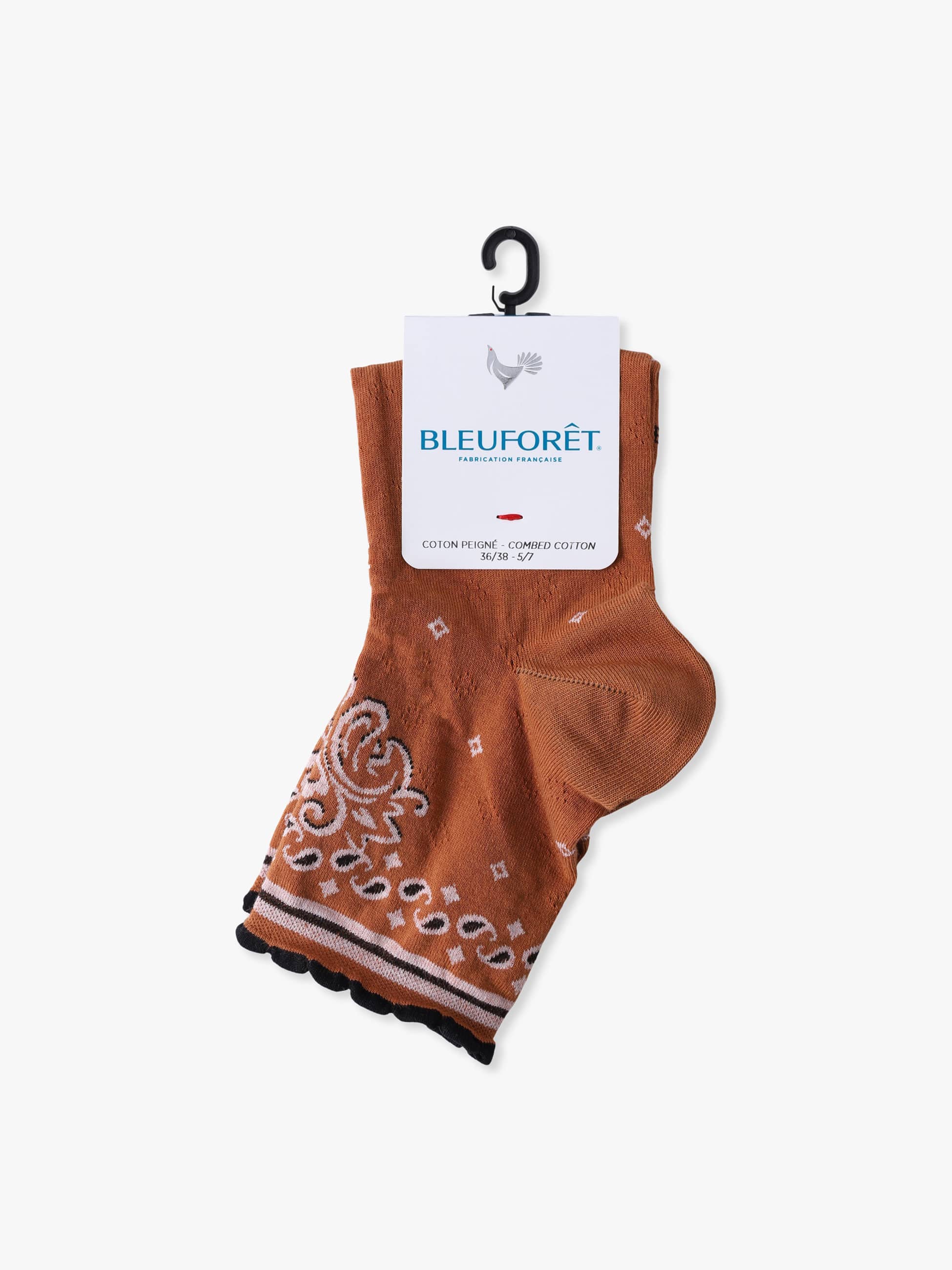 - 柔らかいコットンをたっぷりと使用したアンクル丈のソックスは、締め付けのない快適な履き心地で、シーズンレスに活躍します。遊び心のあるバンダナ柄がシンプルな装いにも映える1足です。その他のBLEU FORETのアイテムもございます。